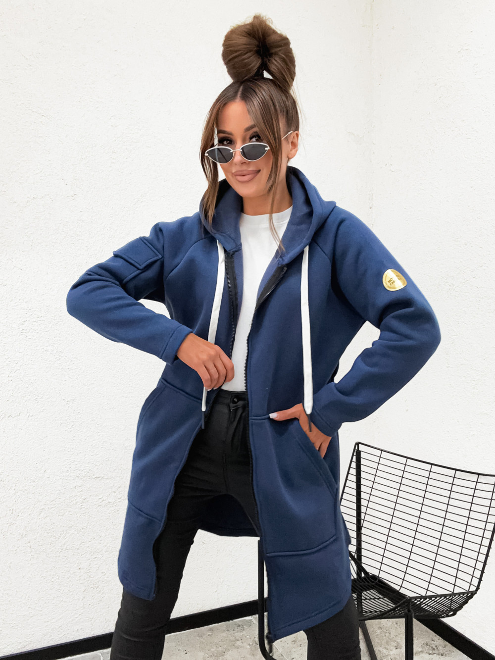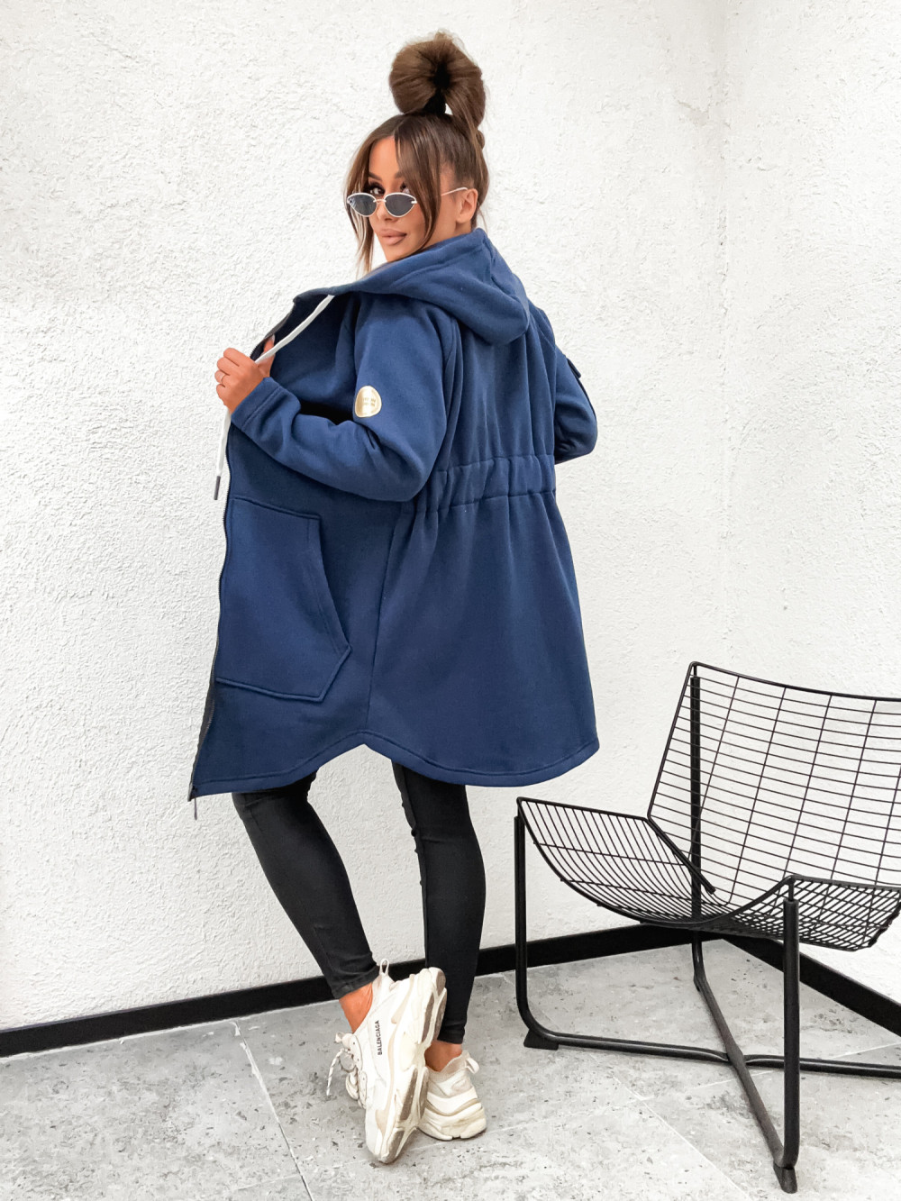 Bluza bawełniana DŁUŻSZA PARKA z kapturem NAVY