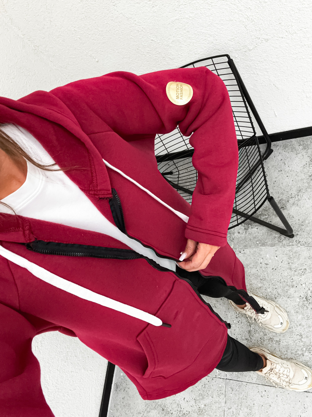 Długa bluza w kolorze bordowym. Spodoba się fankom wygodnych, oversize’owych fasonów, wysokogatunkowych materiałów i jesiennych odcieni. Ten model został uszyty z grubej, oddychającej tkaniny, idealnej na chłodniejsze dni. Do bluzy z kapturem dobierz T-shirt, przylegające legginsy i sneakersy na wyższej podeszwie.