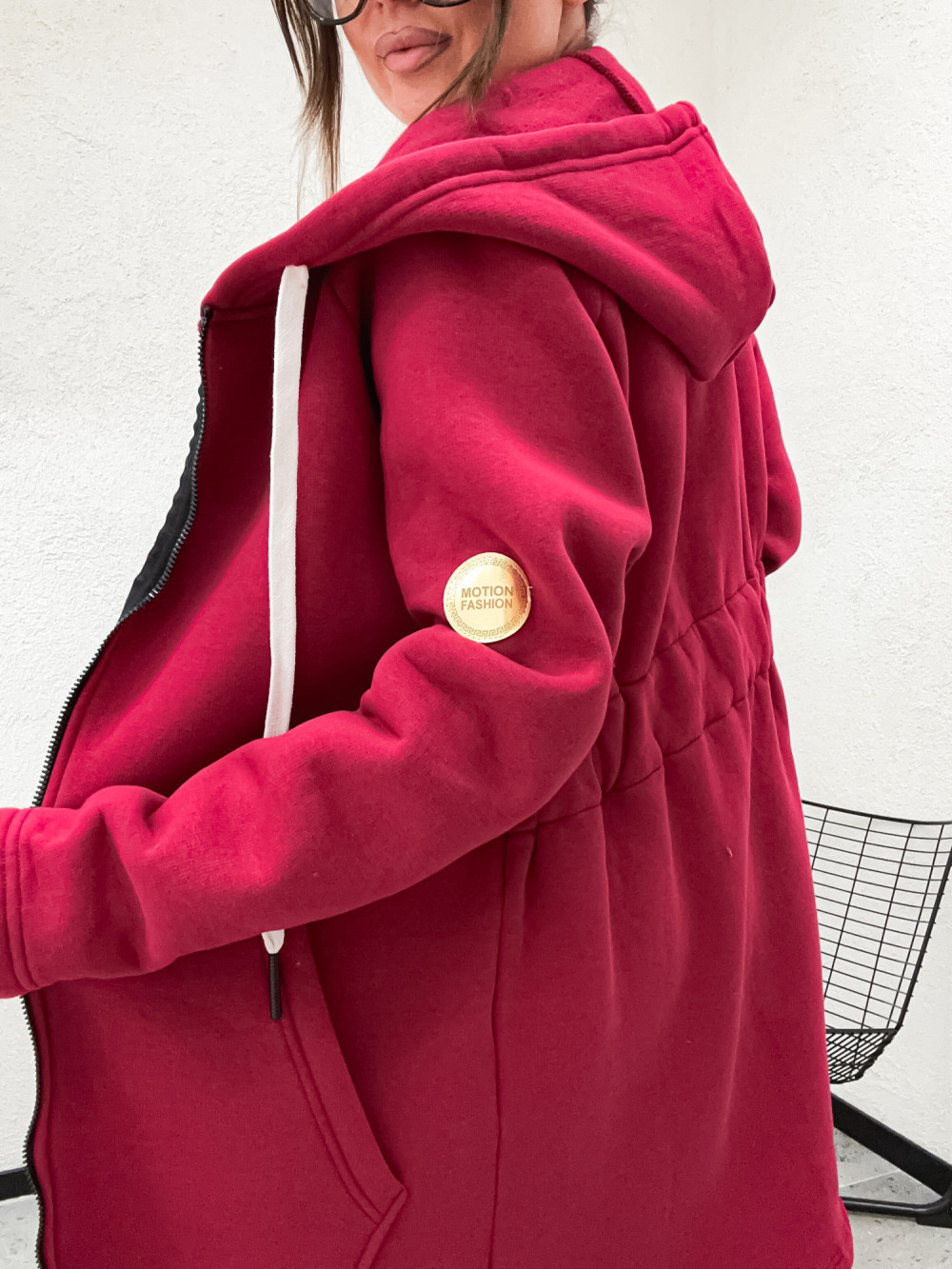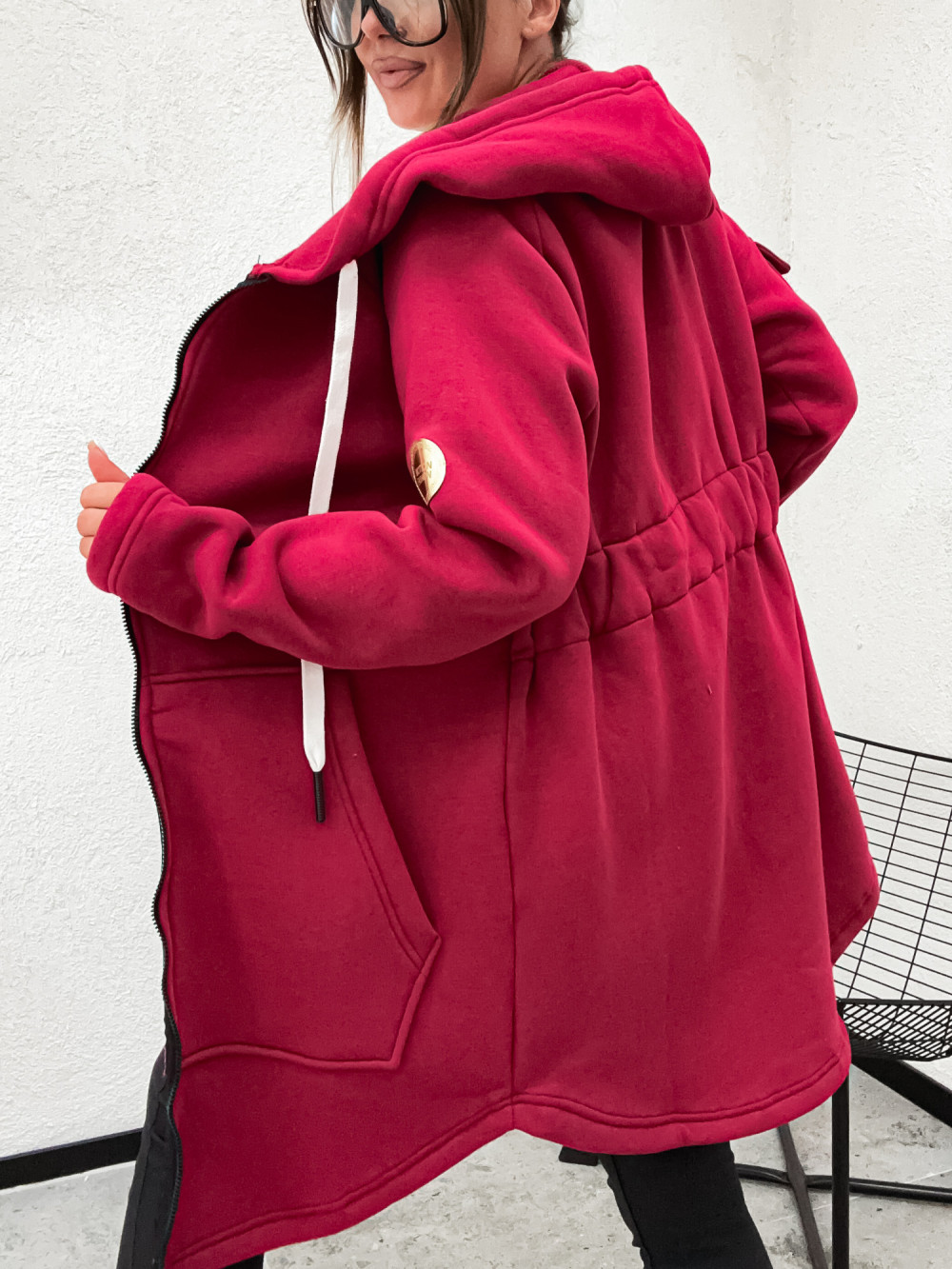 Bluza bawełniana DŁUŻSZA PARKA z kapturem BORDO