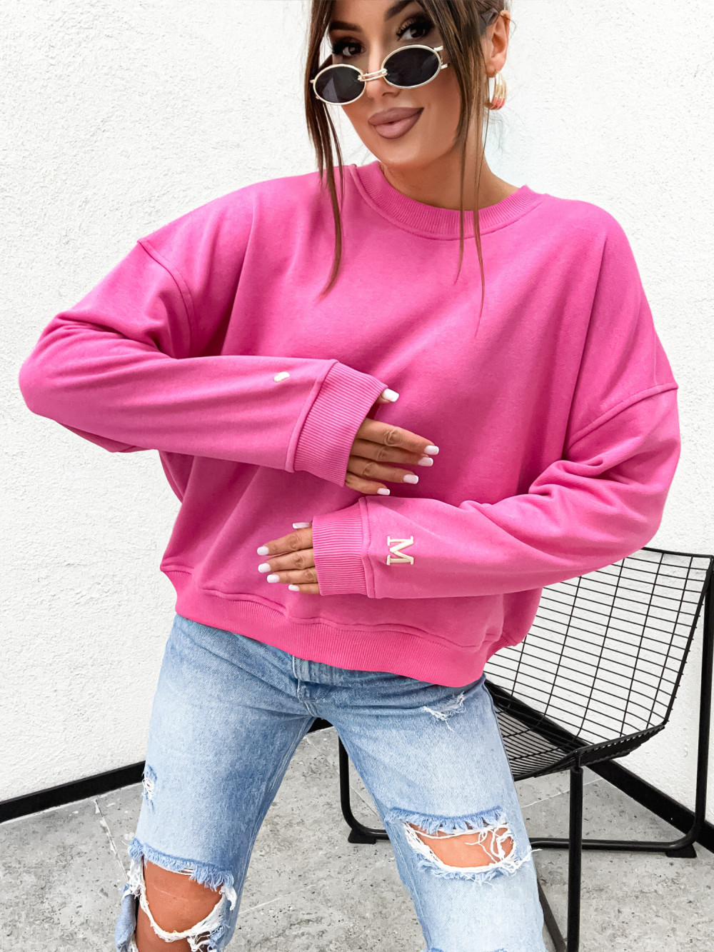 Bluza bawełniana DESIRE MOTTO klasyczna bawełniana PINK