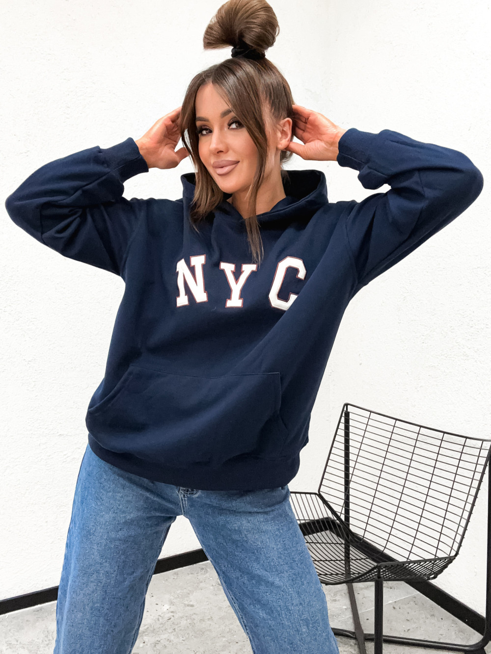 Bluza bawełniana NYC BASIC HOODIE navy