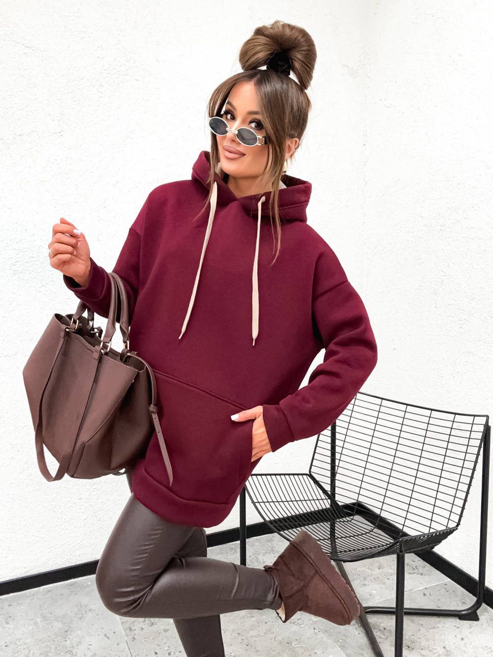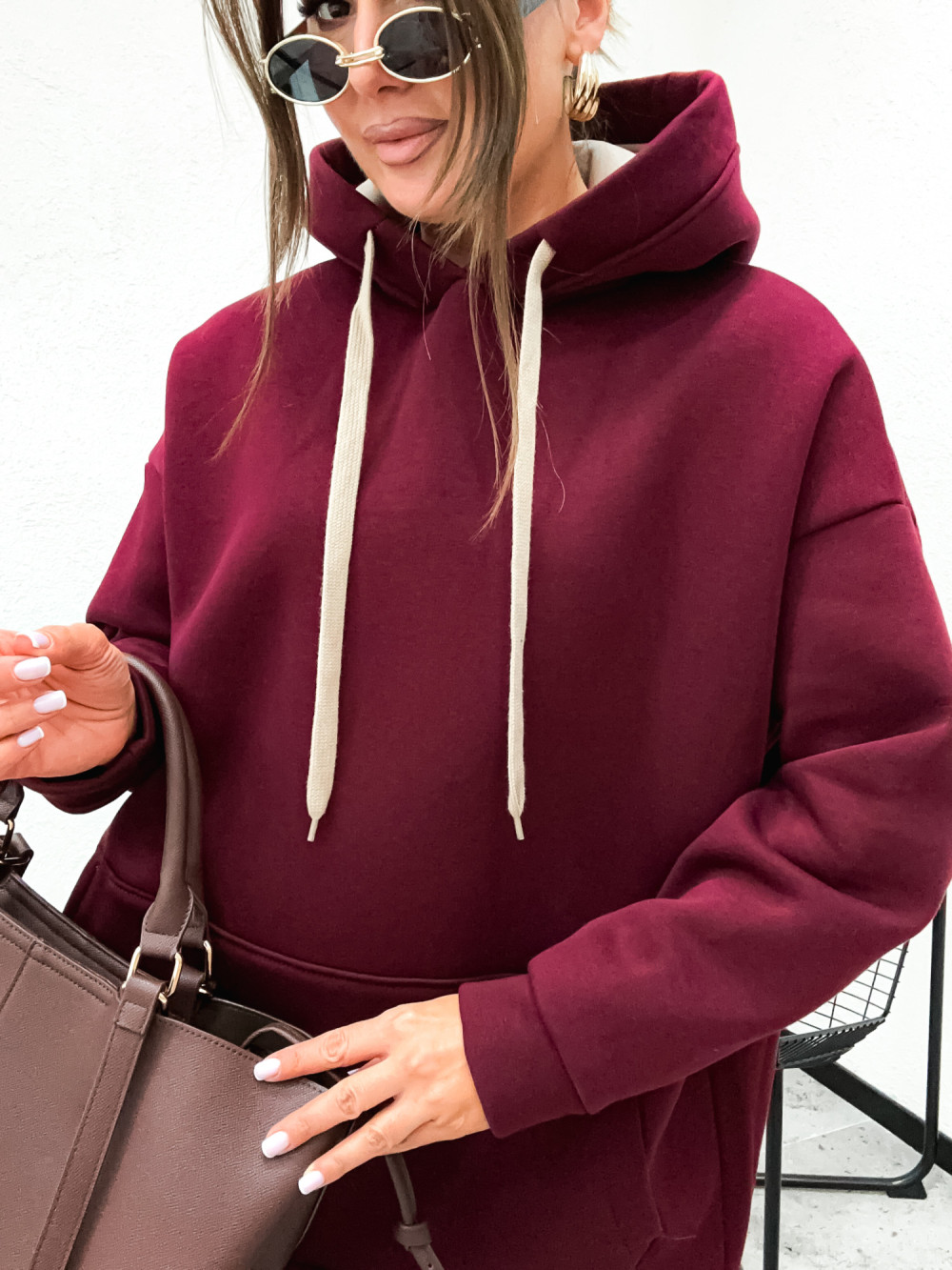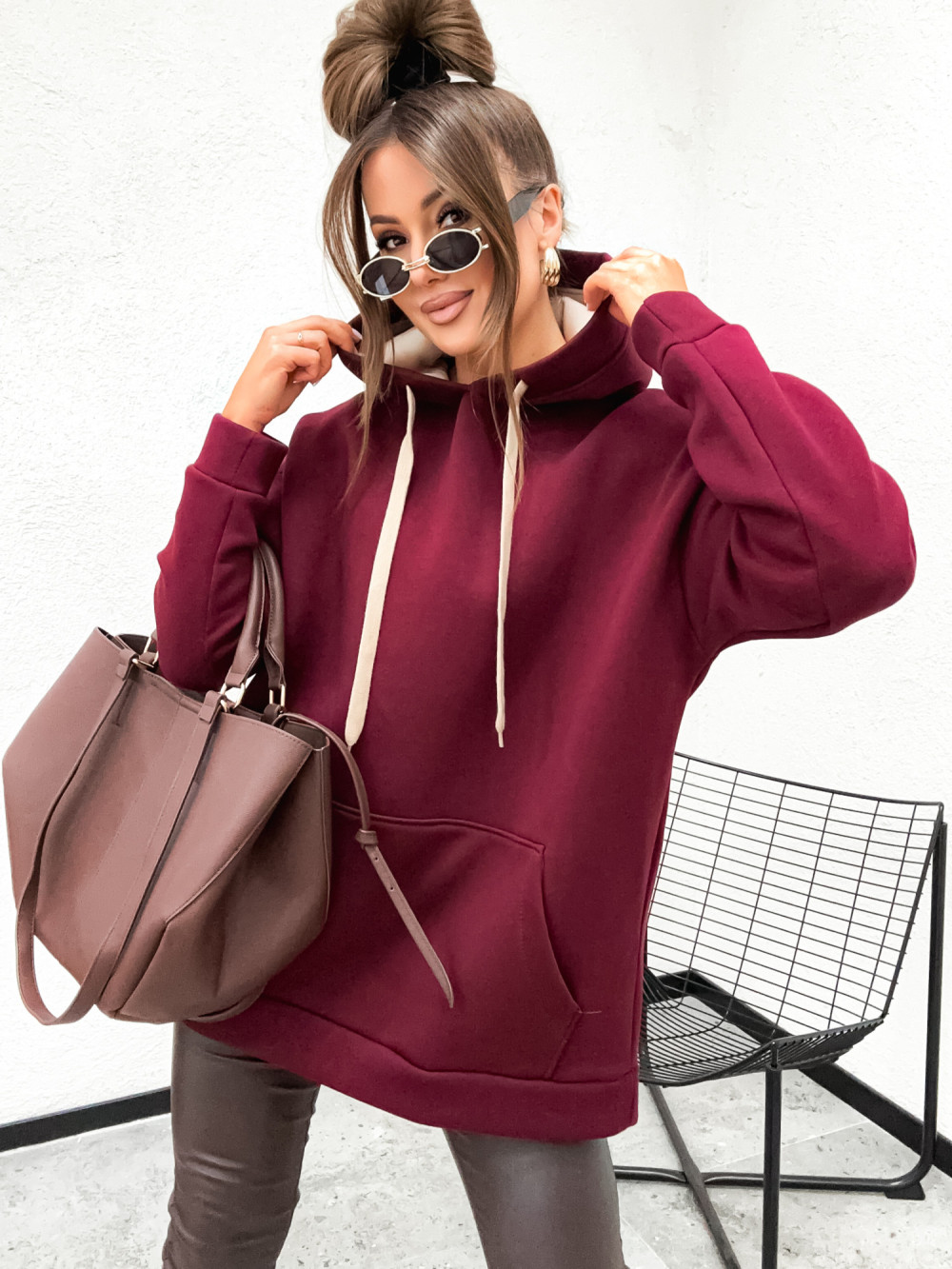 Bluza BAWEŁNIANA DOUBLE COLLOR z kapturem BURGUNDY