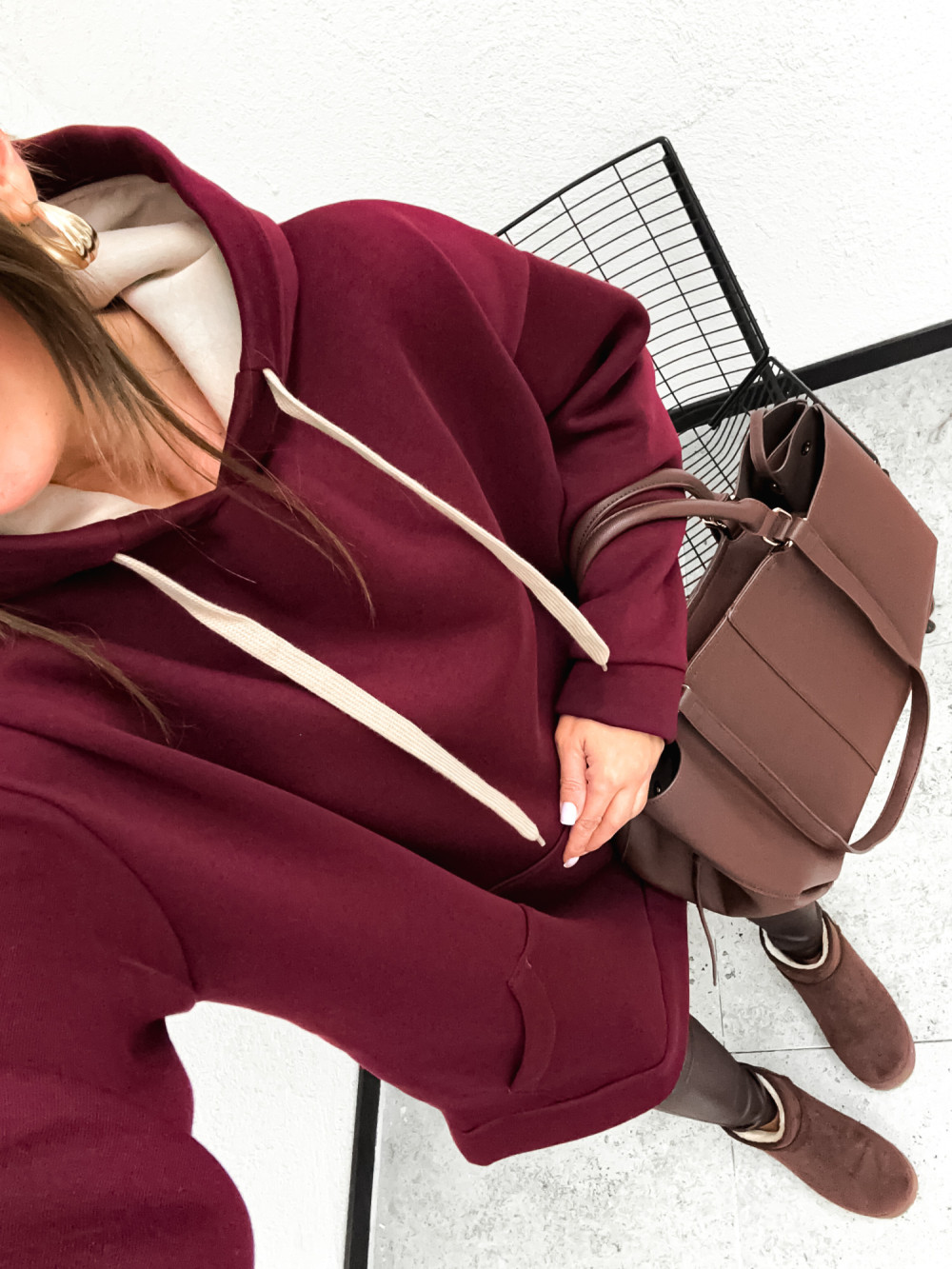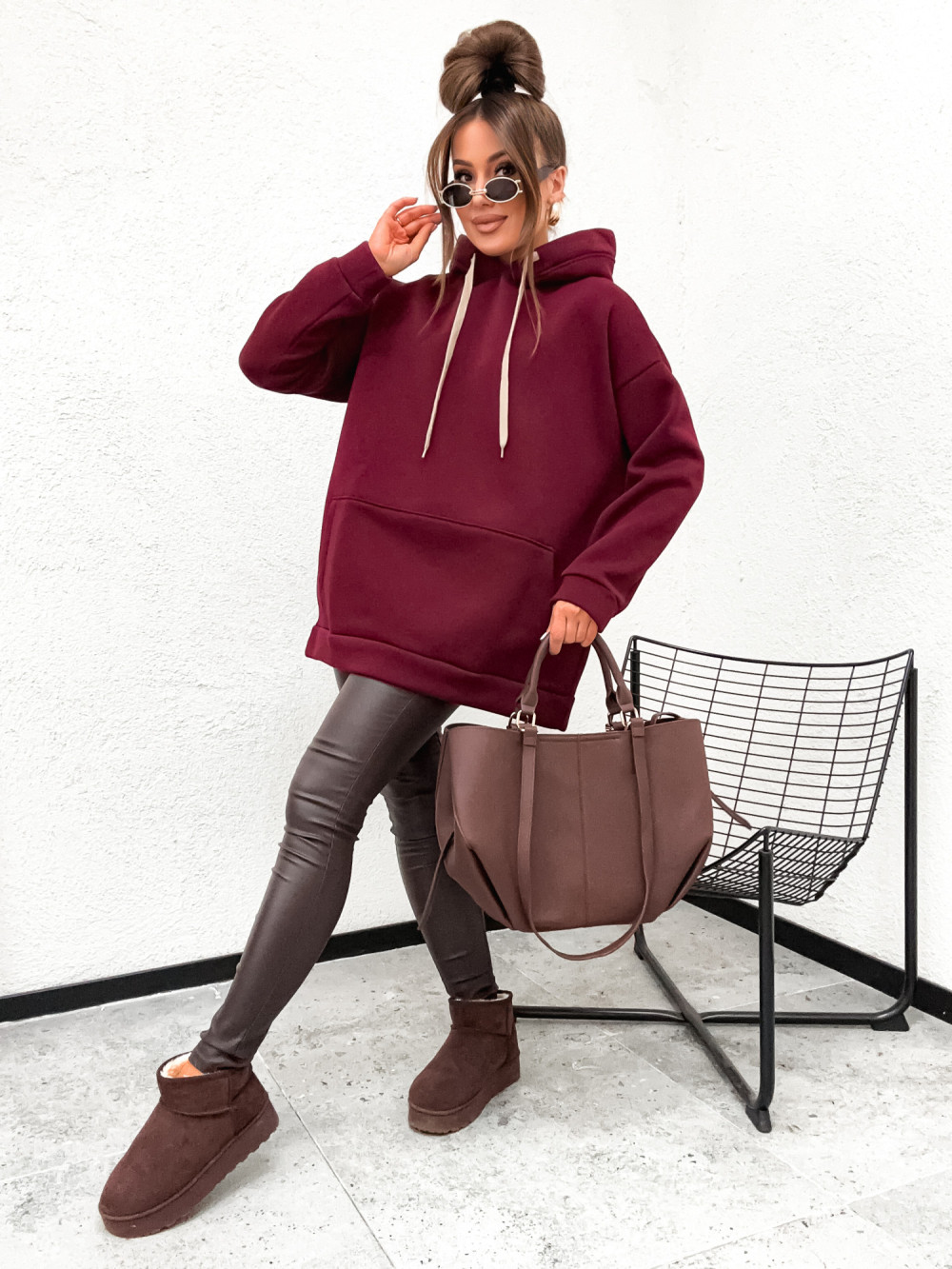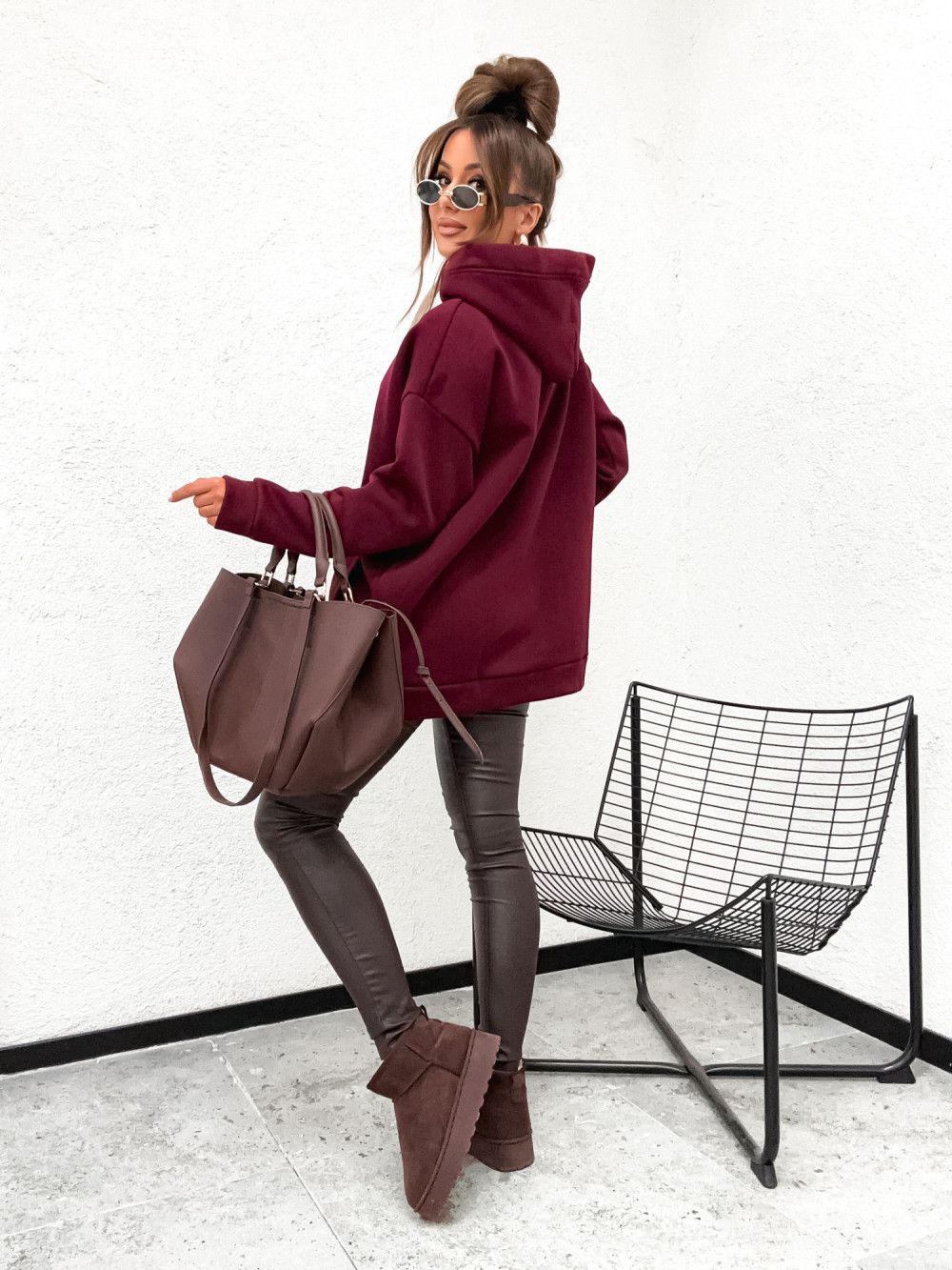 Bluza BAWEŁNIANA DOUBLE COLLOR z kapturem BURGUNDY