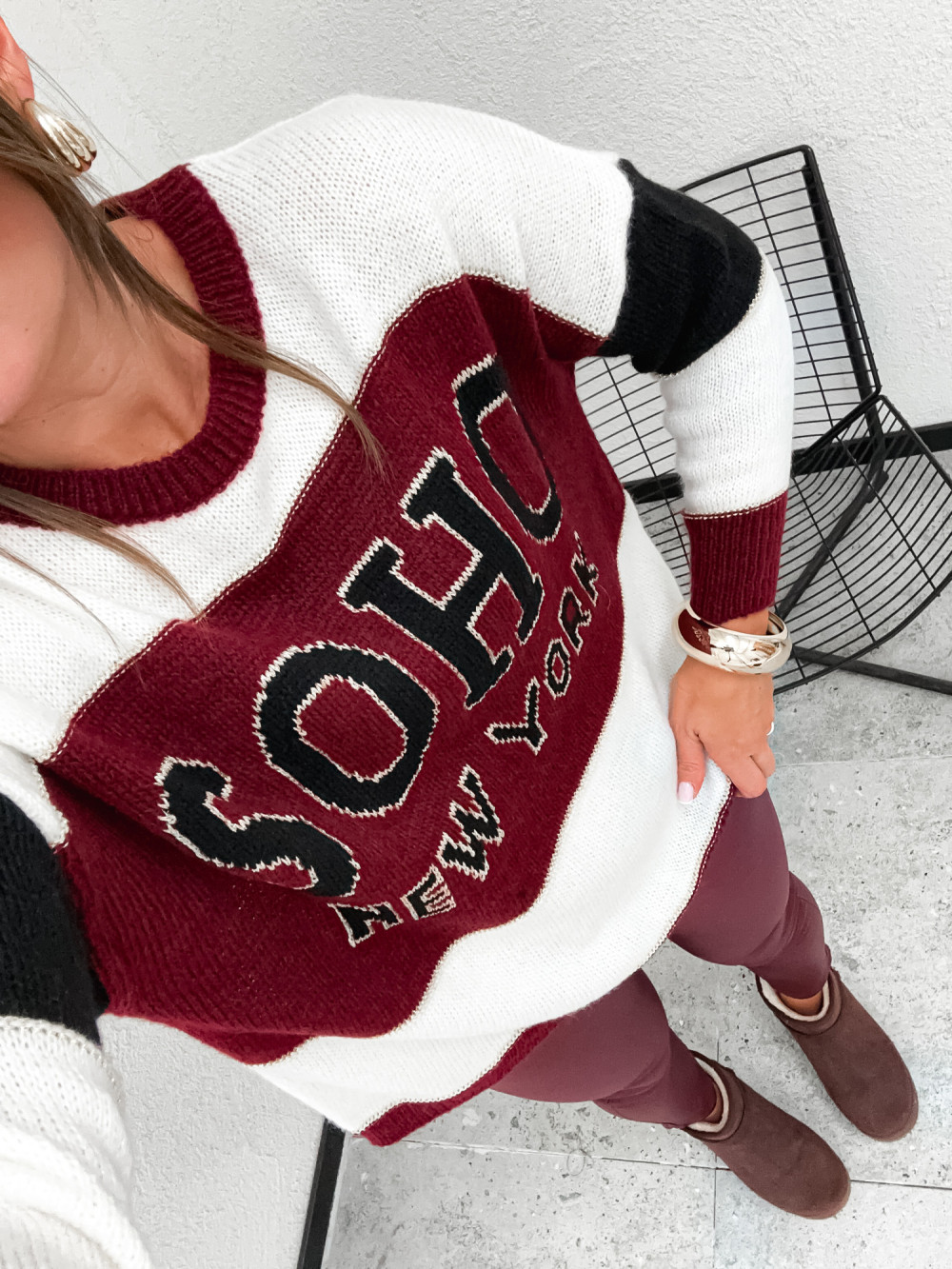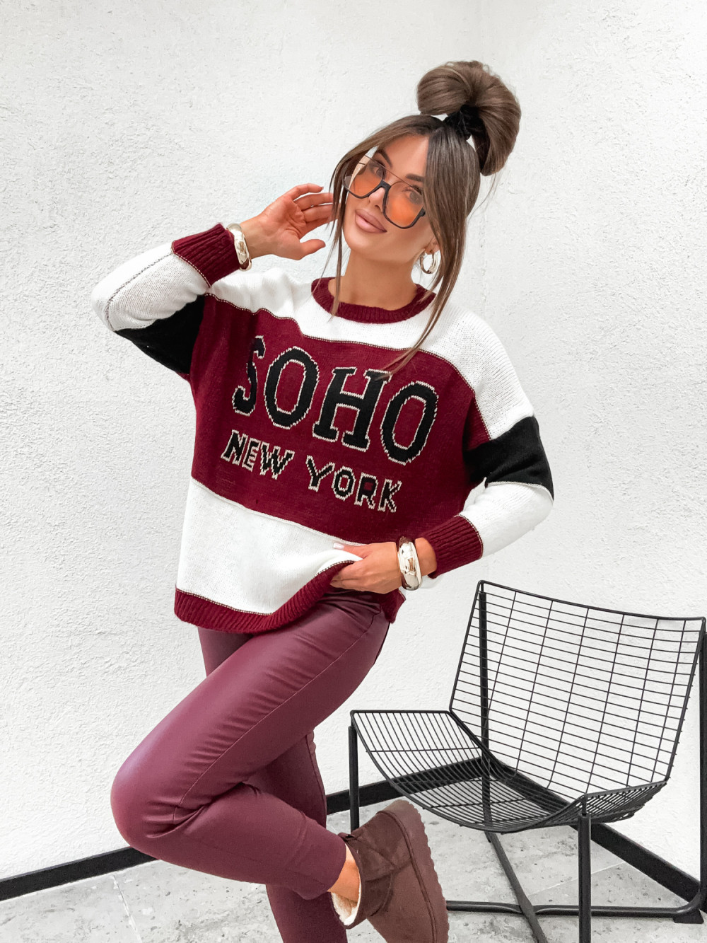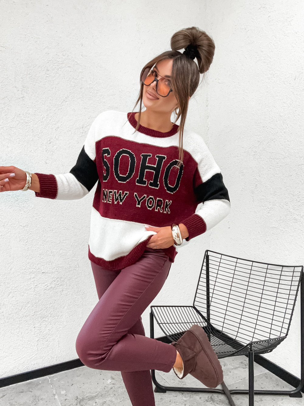 Sweter casual AUTUMN SOHO NEW YORK streetwear BORDO