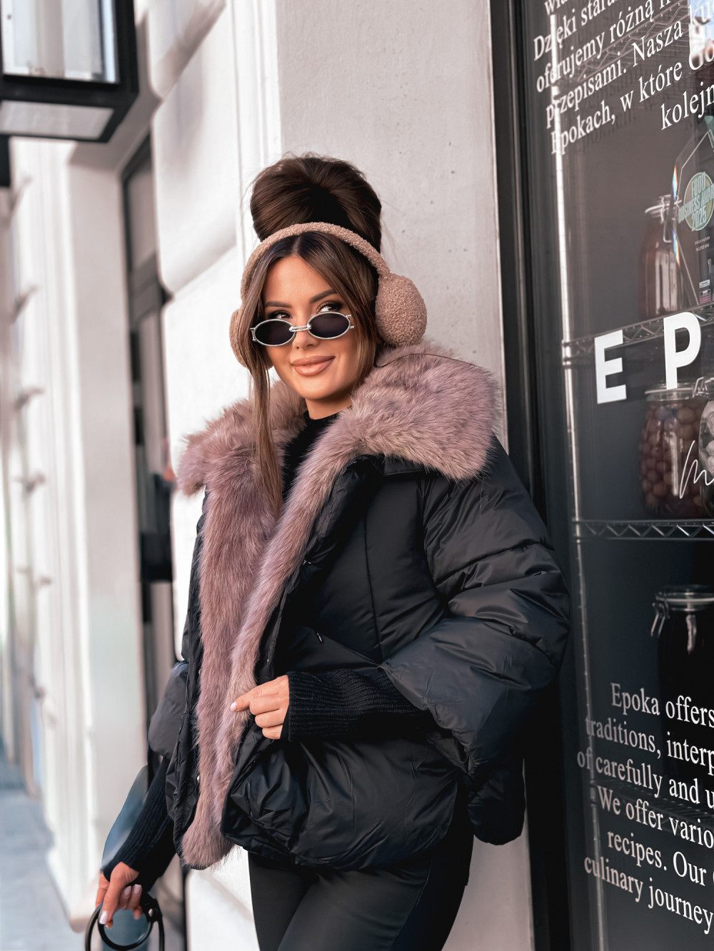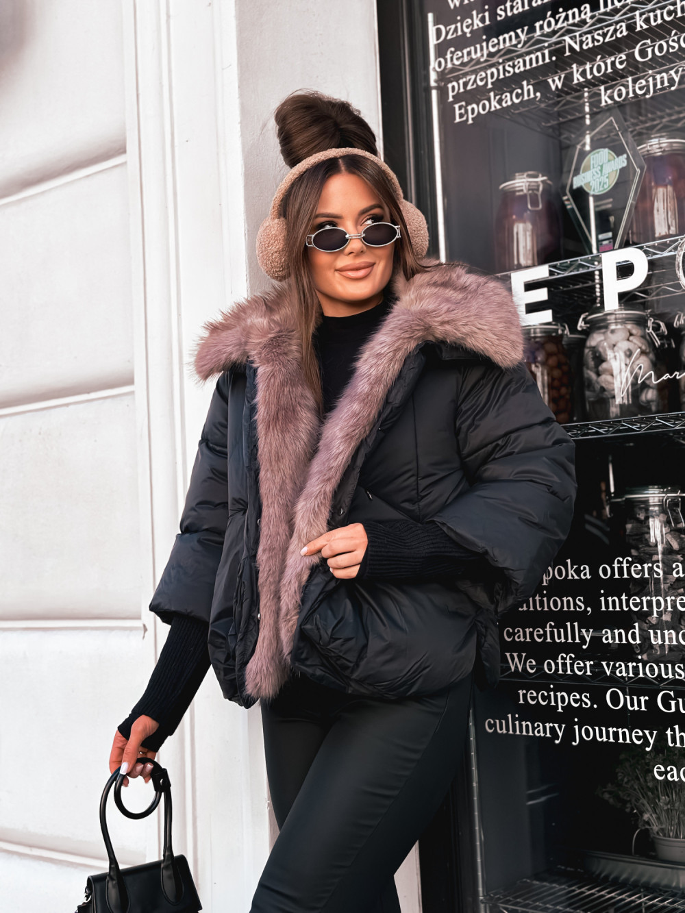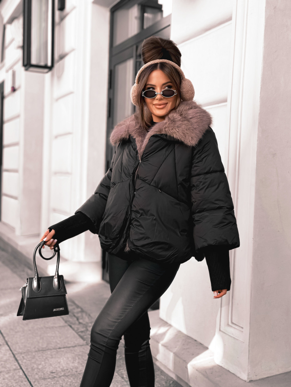 Kurtka WINTER MAZARRA pikowana mega futerko CHOCCO and BLACK