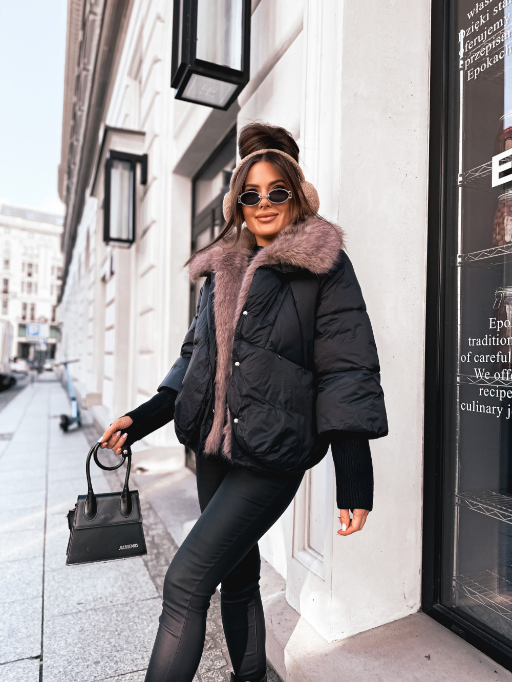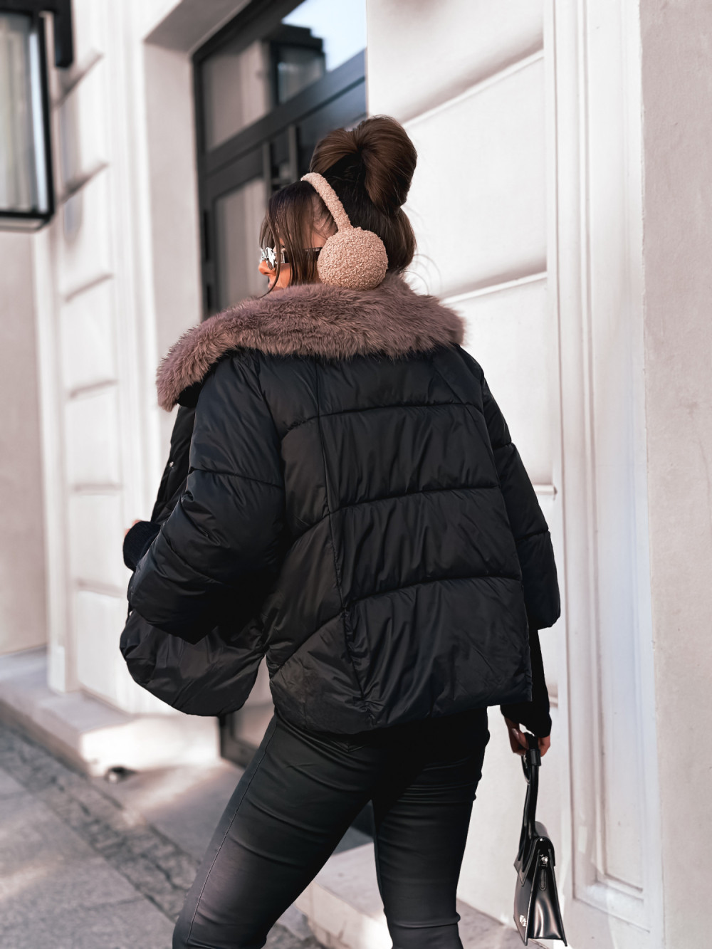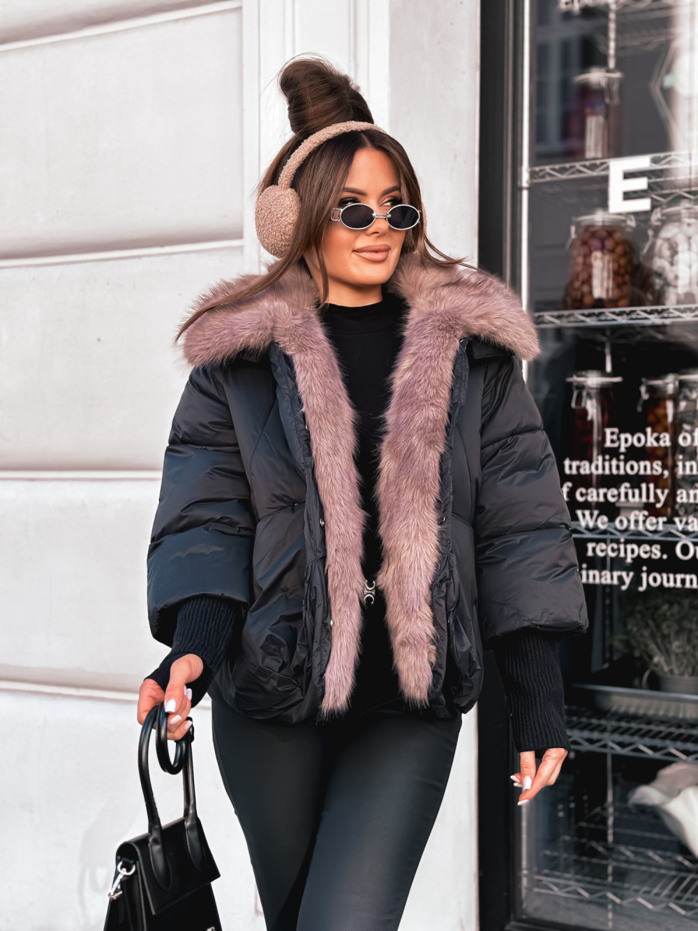 Kurtka WINTER MAZARRA pikowana mega futerko CHOCCO and BLACK
