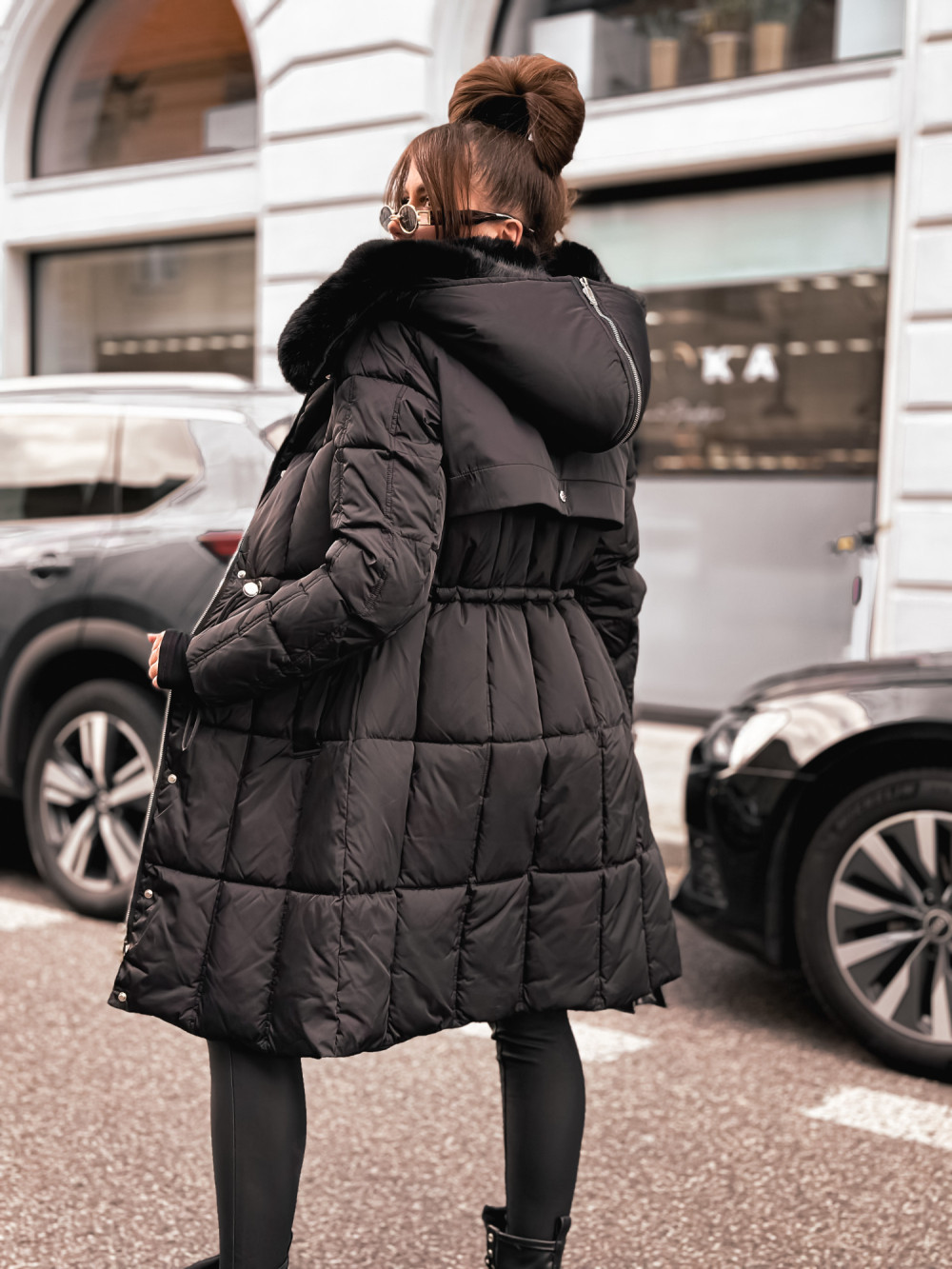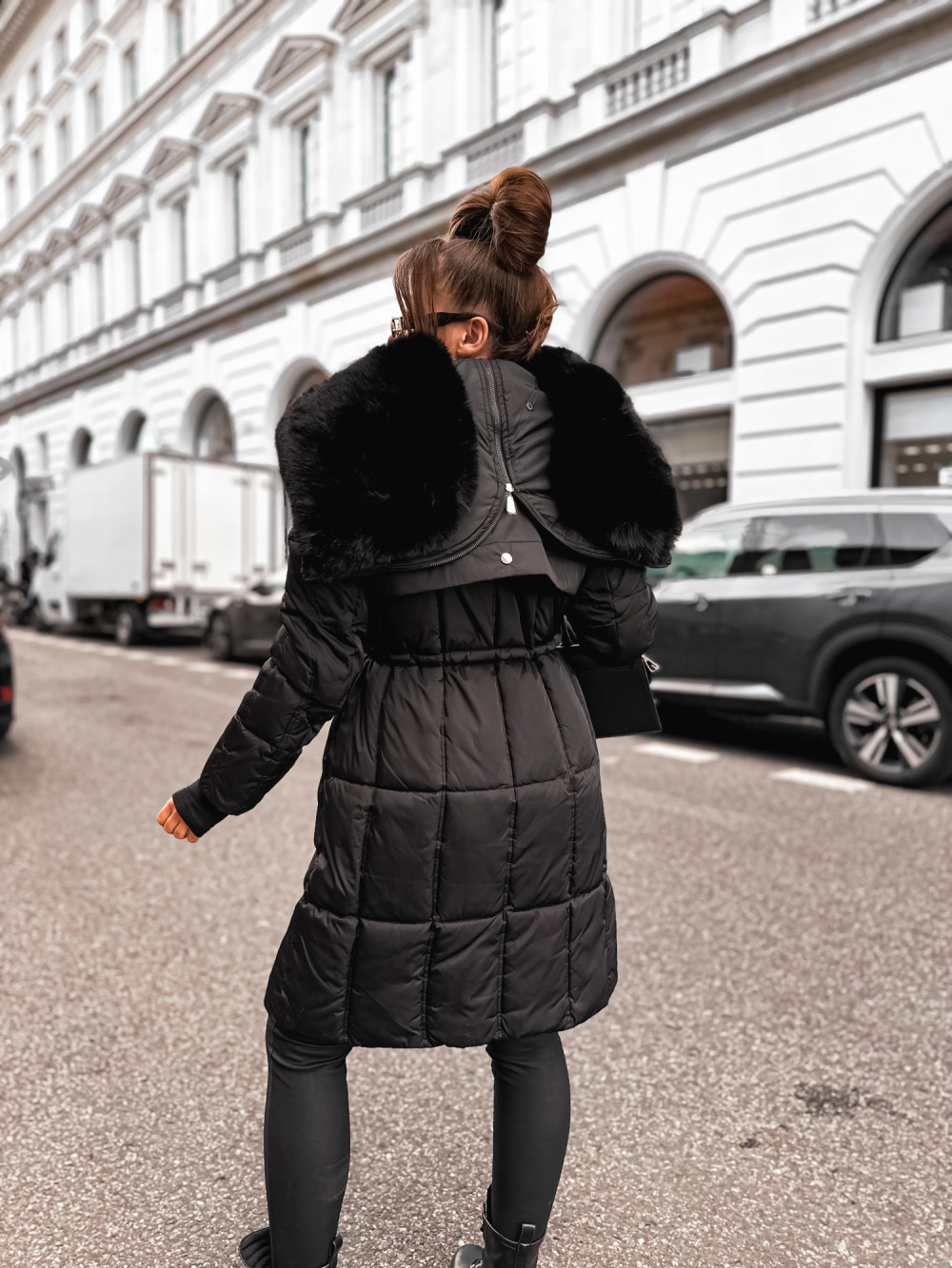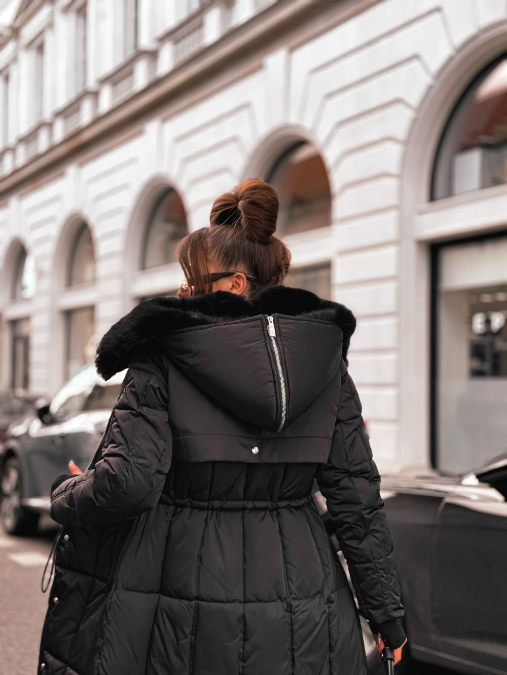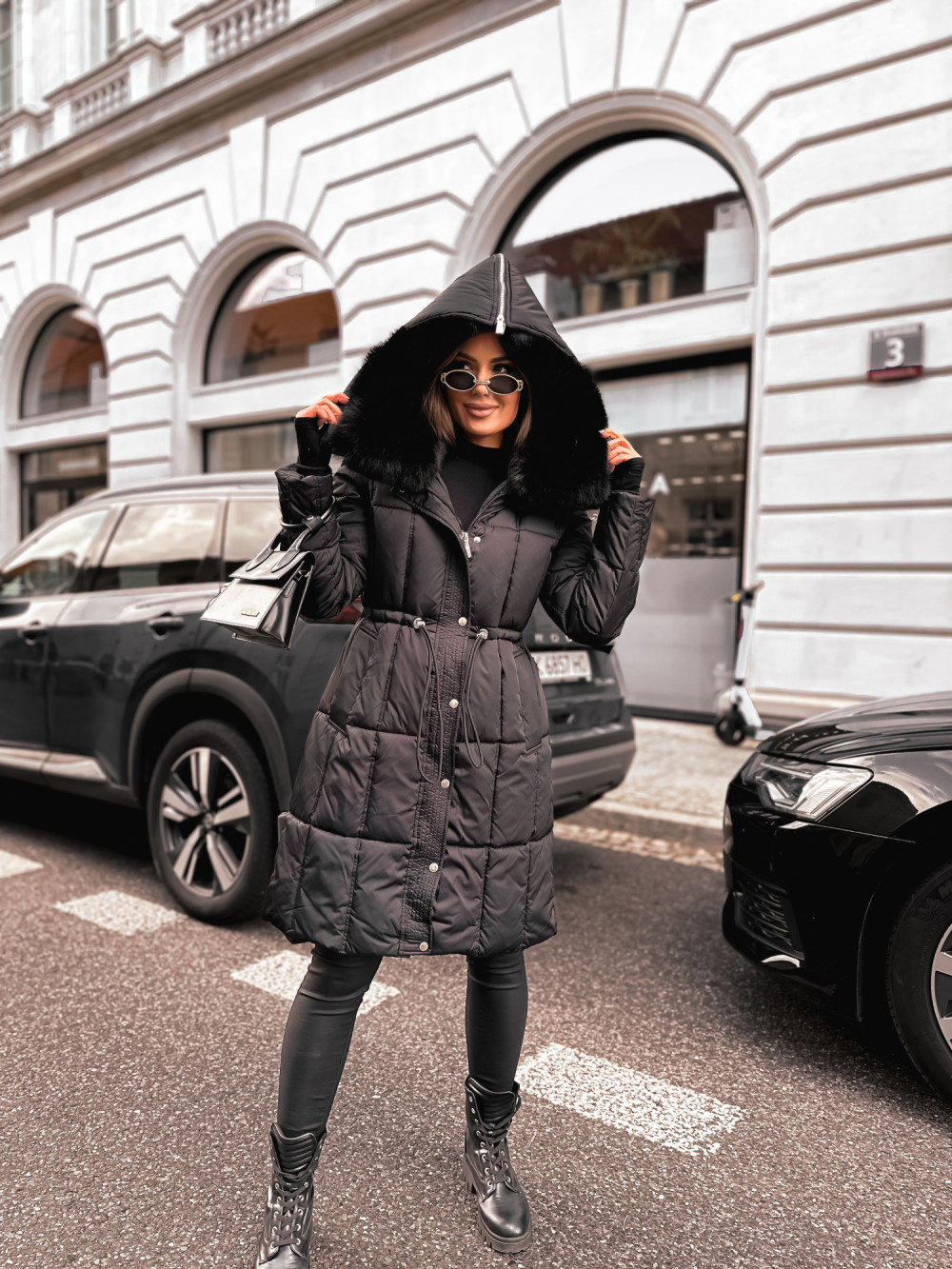Płaszcz pikowany PARKA Z MEGA FUTERKIEM black