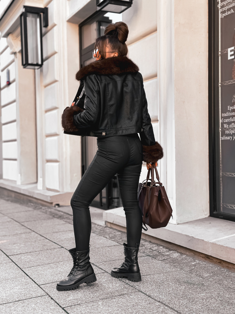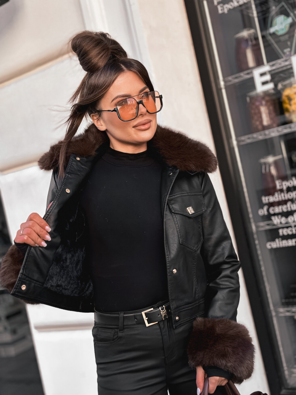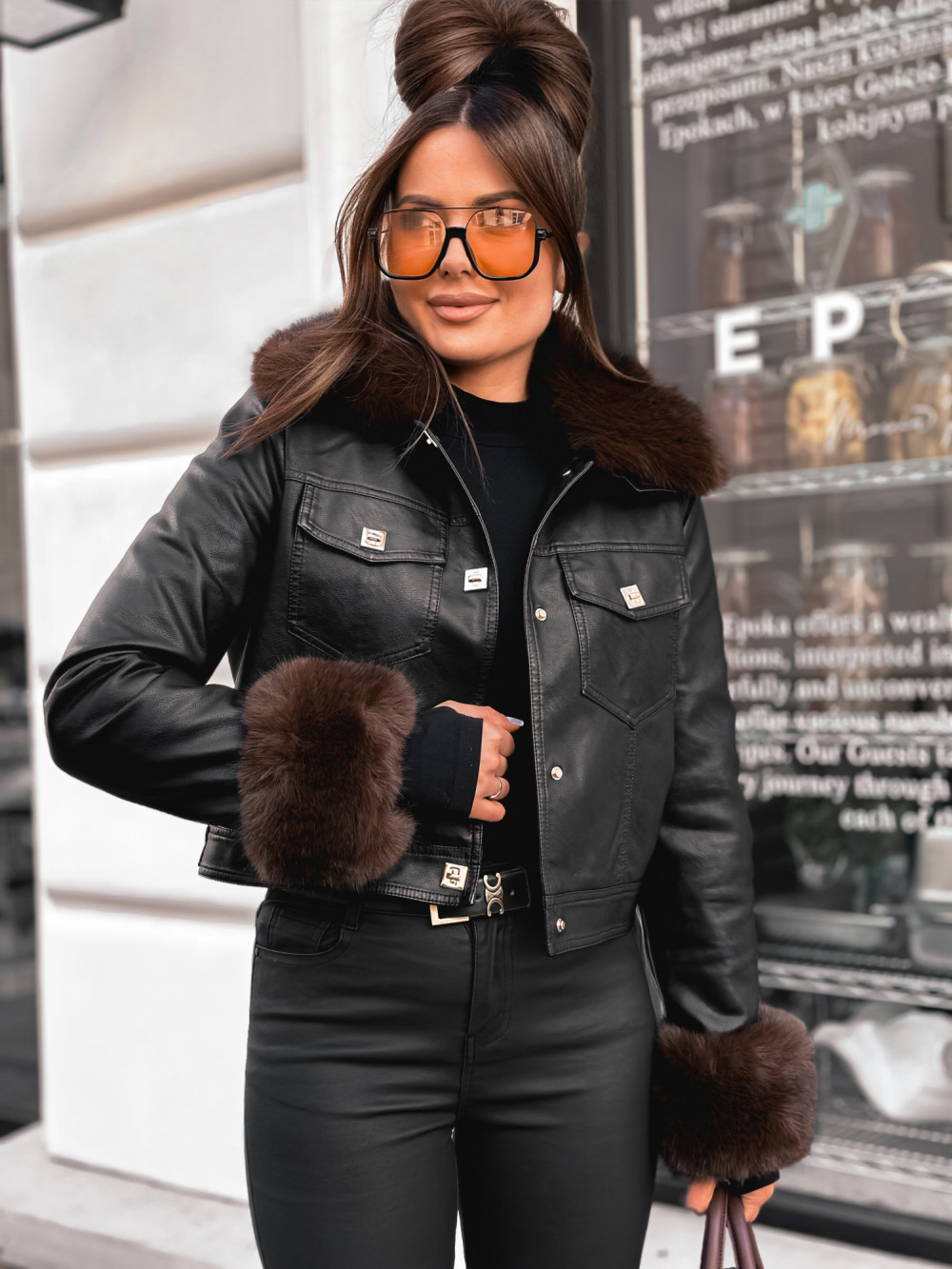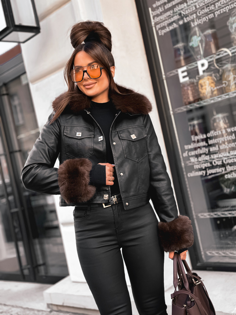 Kurtka skórzana LA PARICINNO kożuszek BLACK and chocco