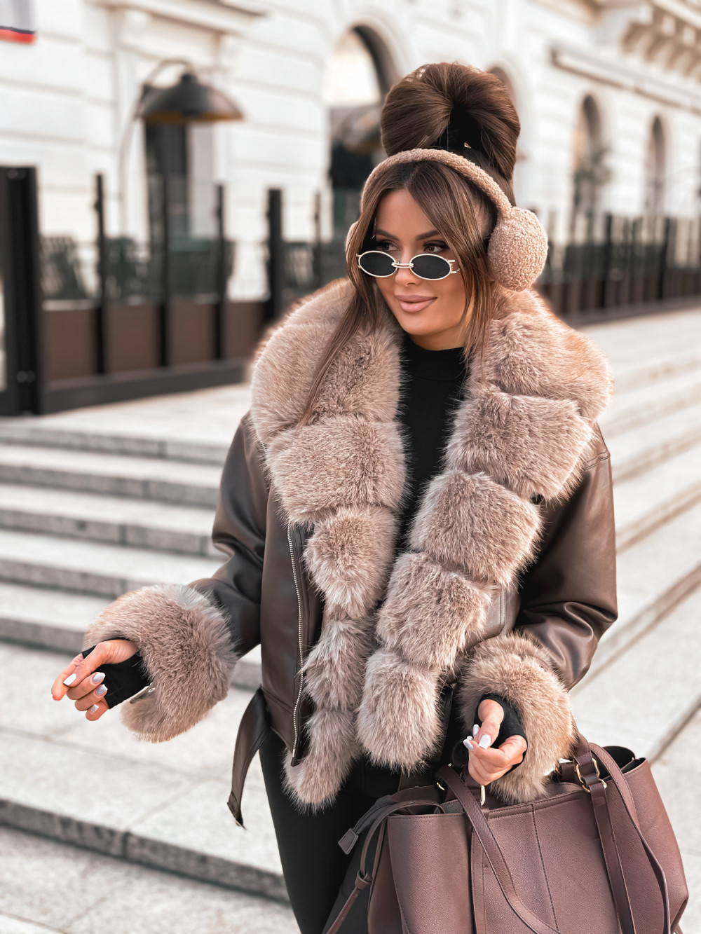 Brązowa kurtka ramoneska z futerkiem w kolorze brązowym to stylowa propozycja na sezon jesienno - zimowy. Modny fason świetnie skomponuje się z jeansami lub spódnicą i kozaczkami. Kurtka ramoneska z kożuszkiem jest nowoczesnym i stylowym okryciem wierzchnim.