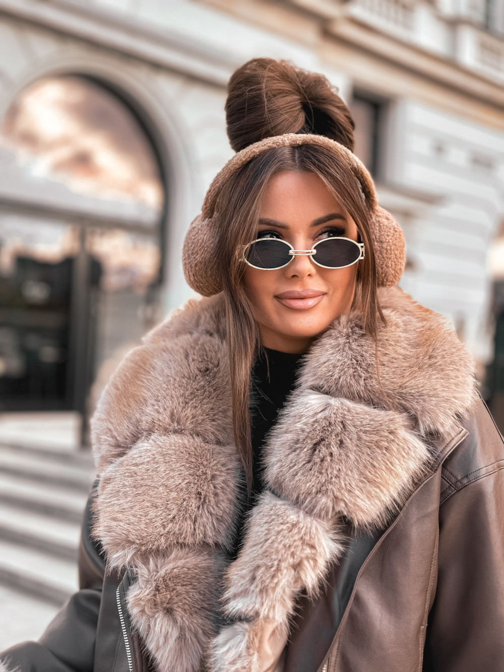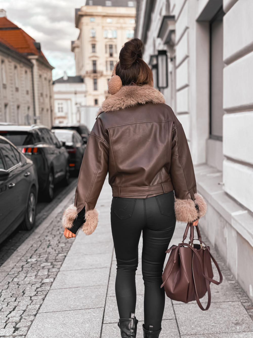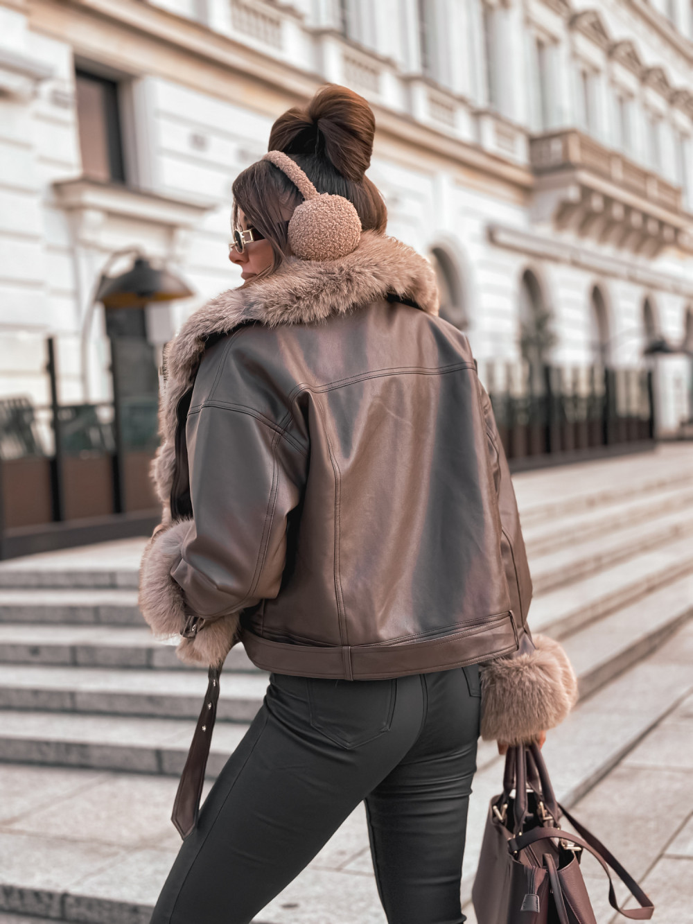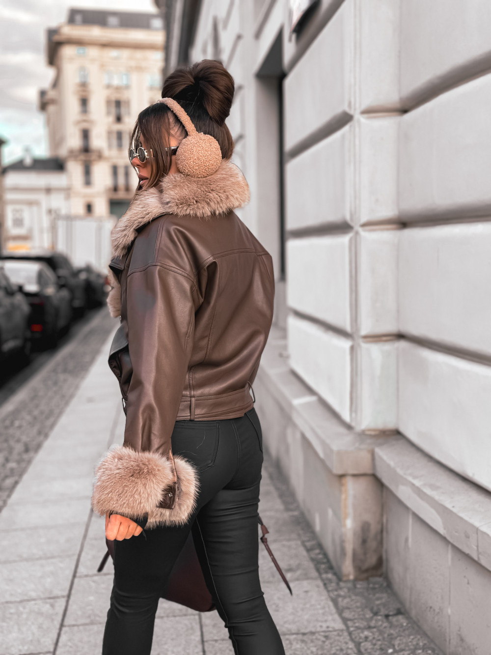 Kurtka ramoneska skóra KOŻUSZEK MEGA FUTERKO chocco brąz