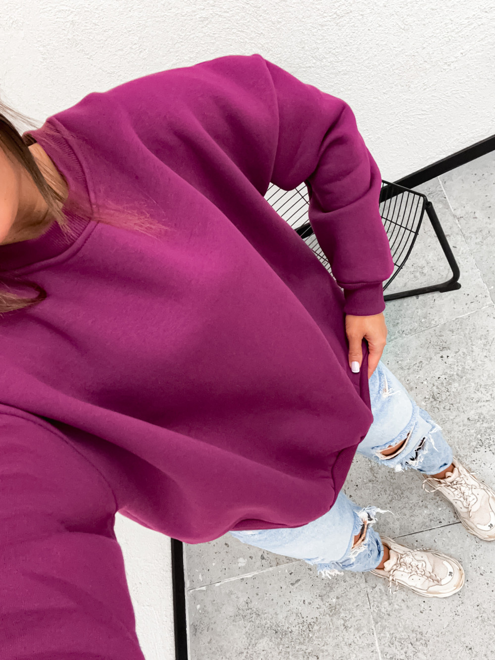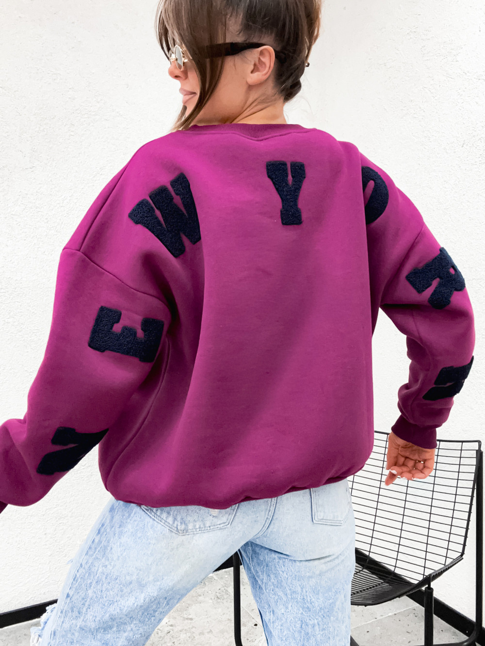Bluza bawełniana BASIC NEW YORK CITY plum magenta