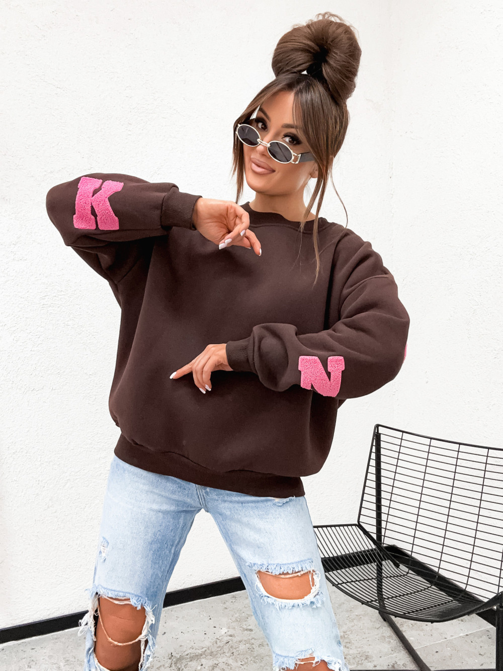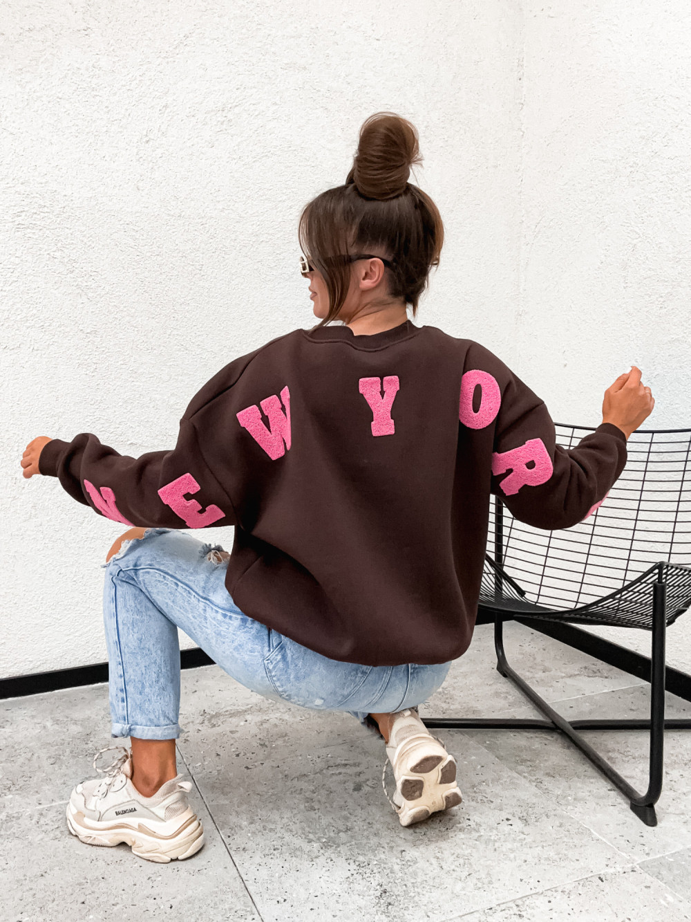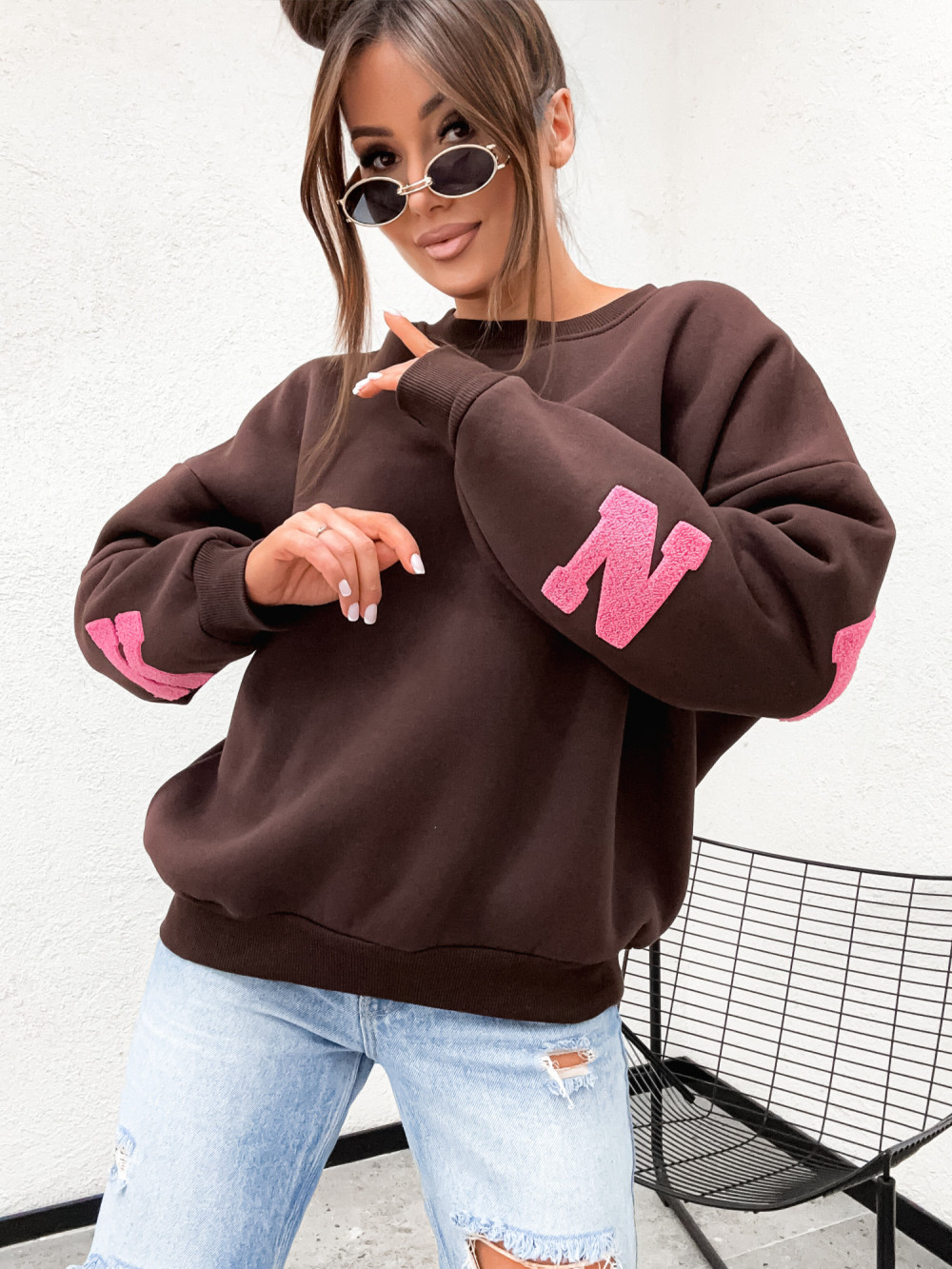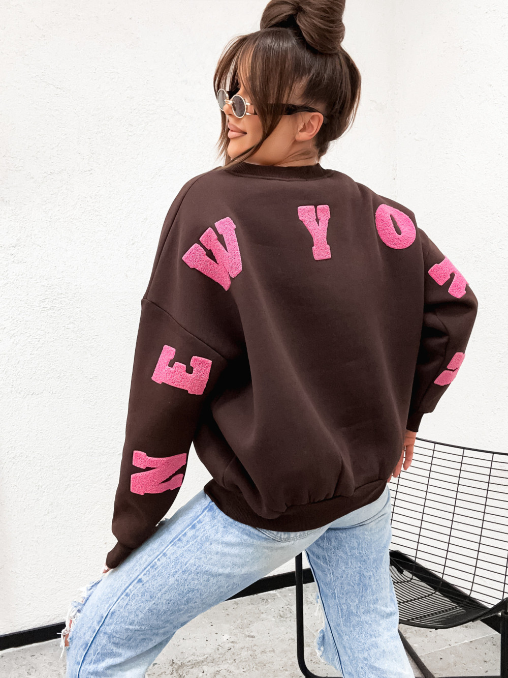 Bluza bawełniana BASIC NEW YORK CITY chocco brąz