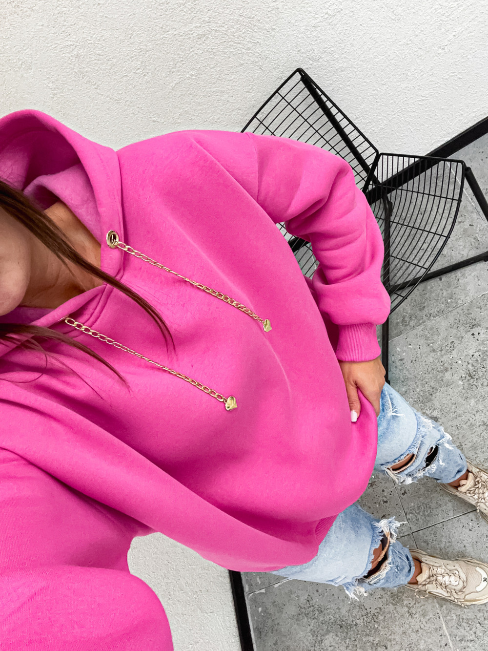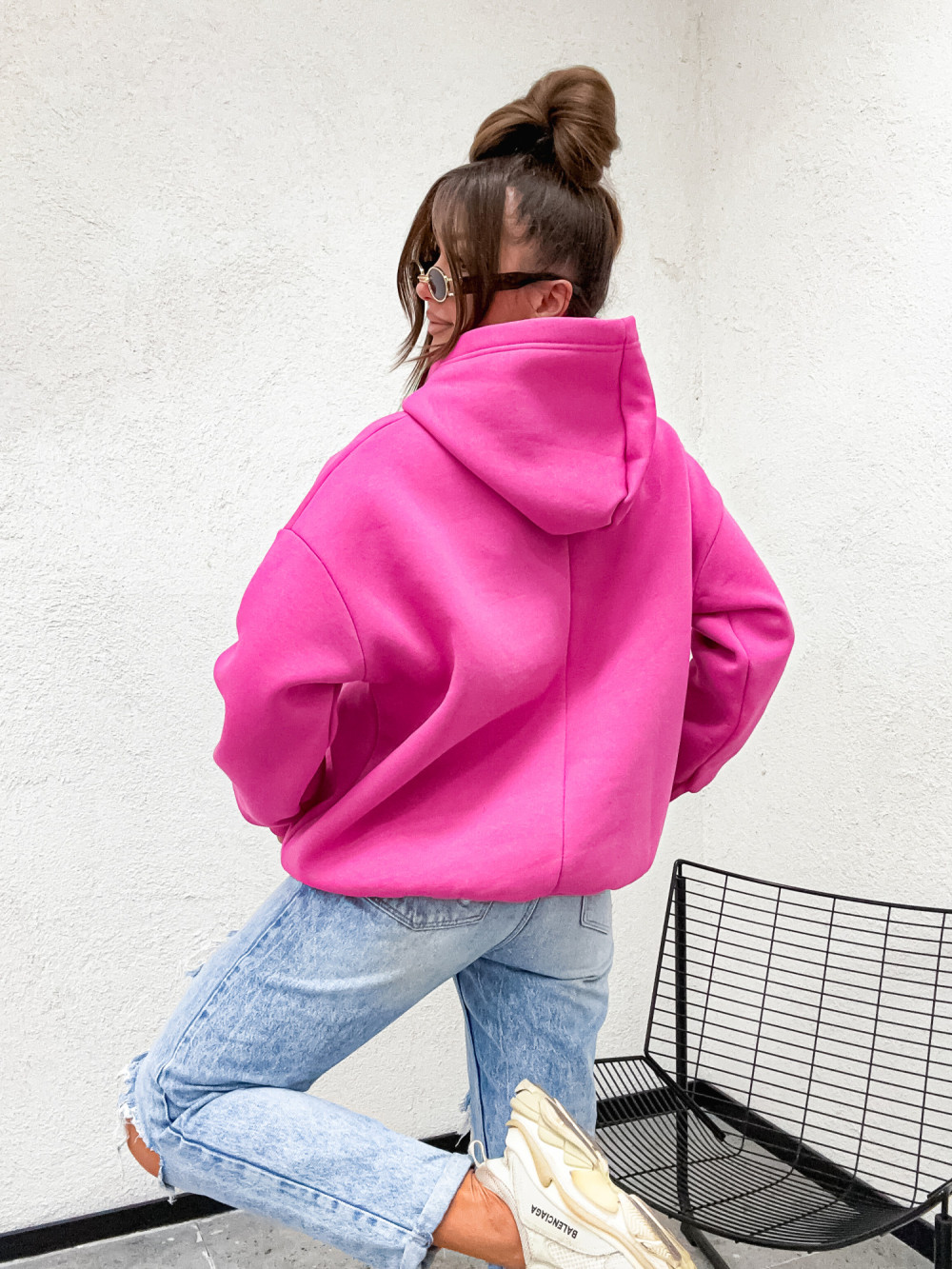 Bluza z kapturem w wyrazistym różowym kolorze świetnie sprawdzi się w stylizacjach na różne okazje. Stylowy fason doskonale dopasowuje się do sylwetki, zapewniając wygodę i swobodę ruchów. Modna bluza z kapturem pasuje do jeansów, jak również do spodni dresowych, tworząc komfortowe zestawienia na chłodniejsze dni.