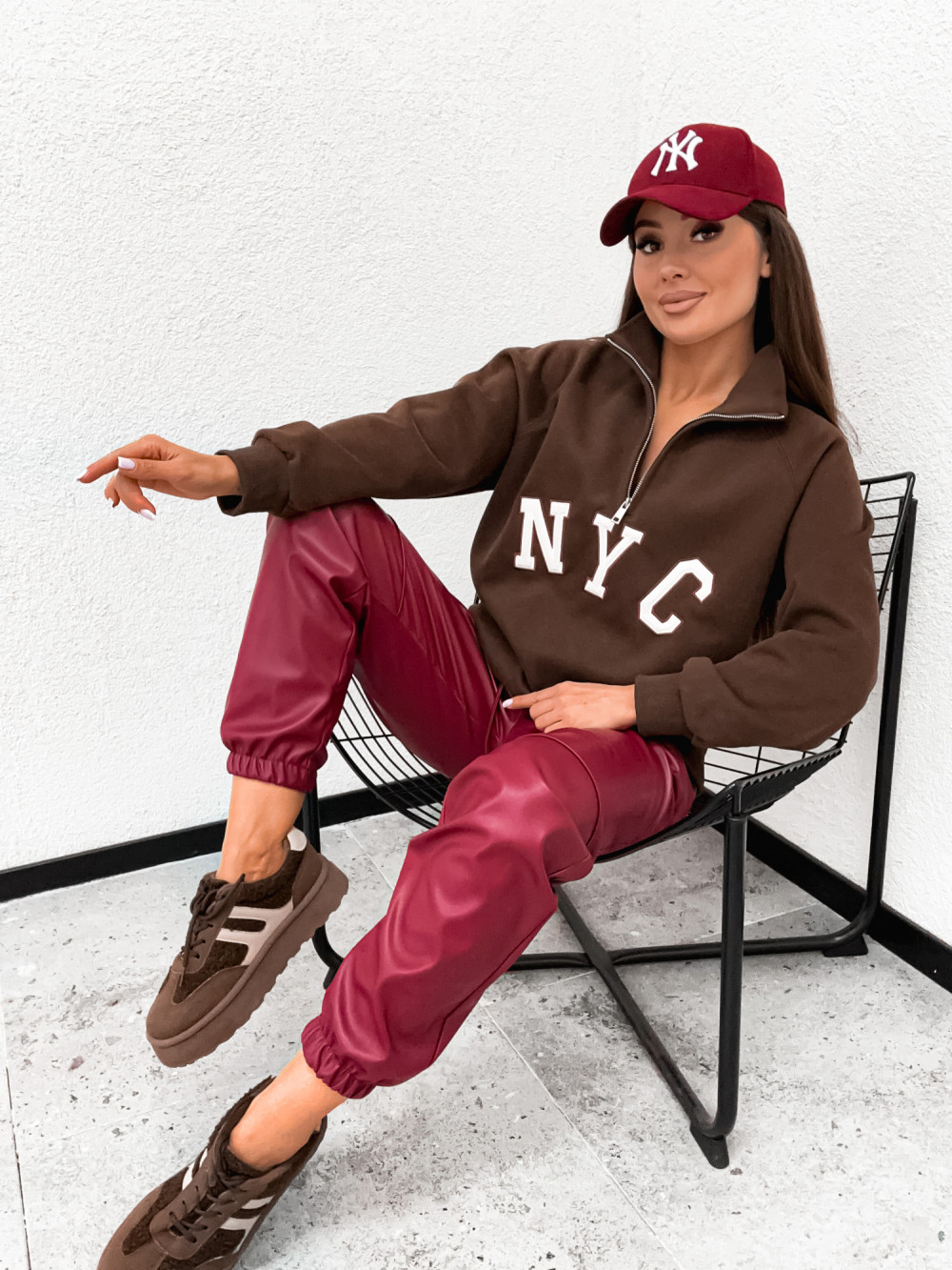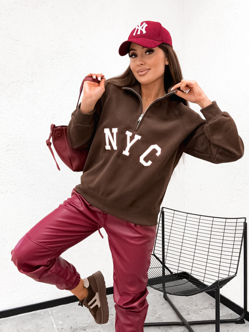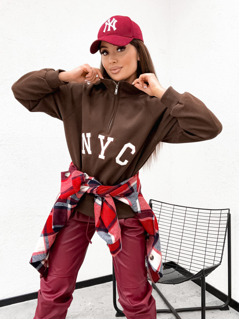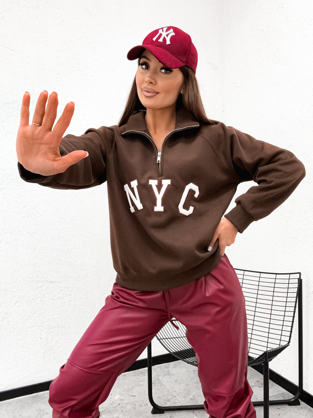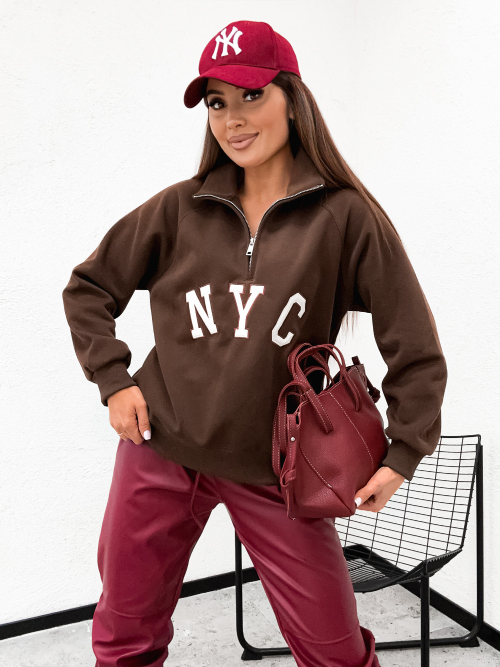 Bluza bawełniana SEMI ZIPPER NYC chocco brąz