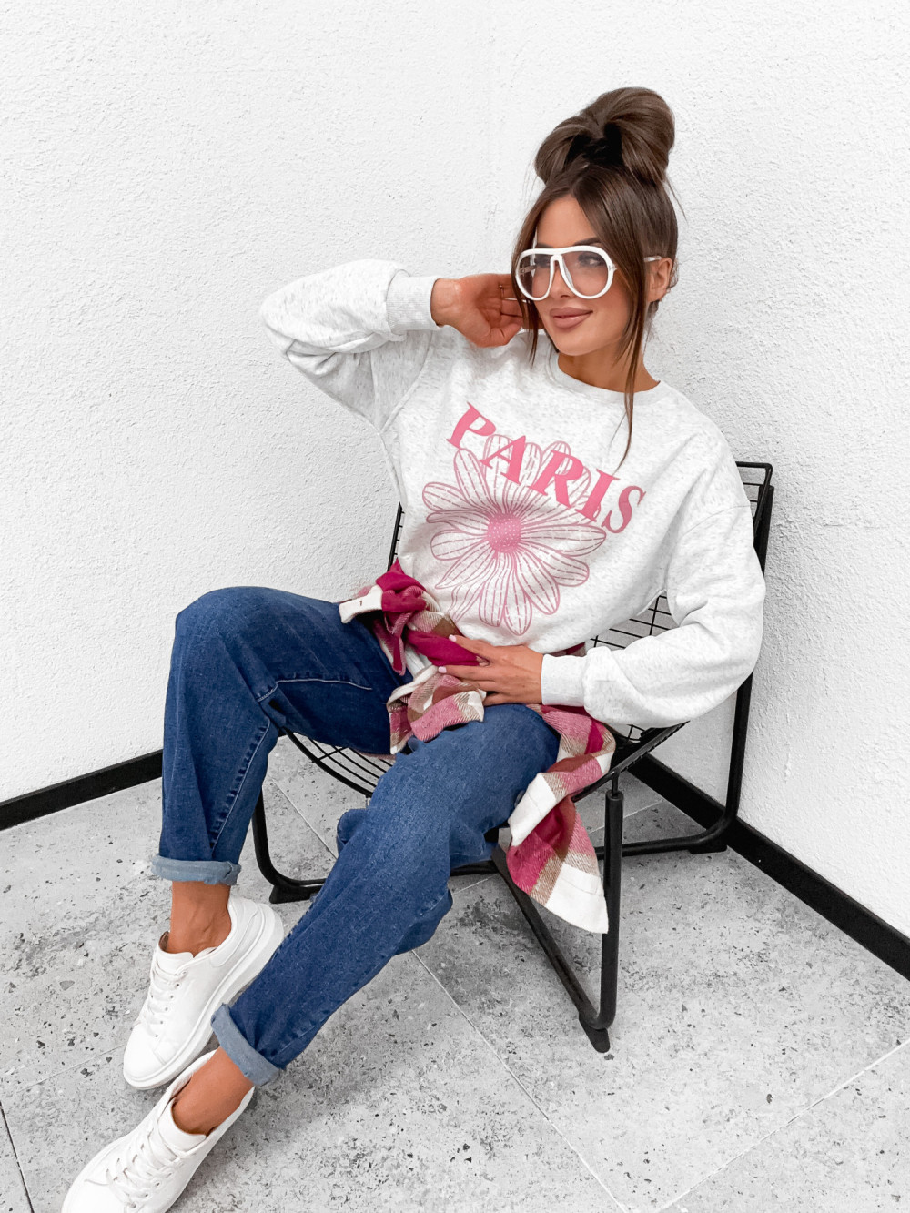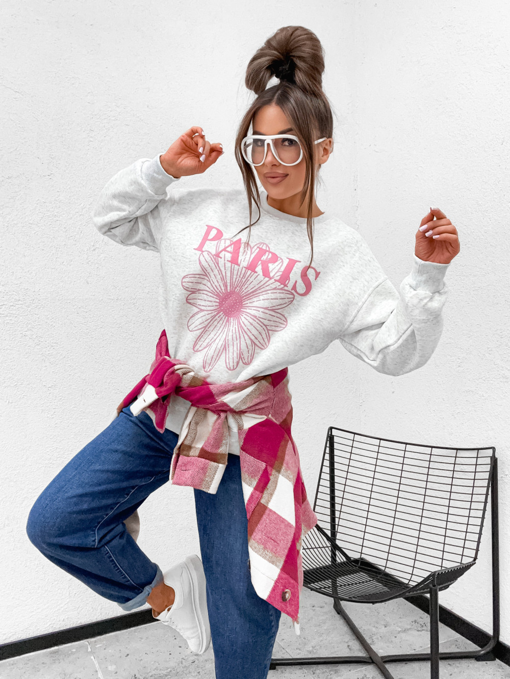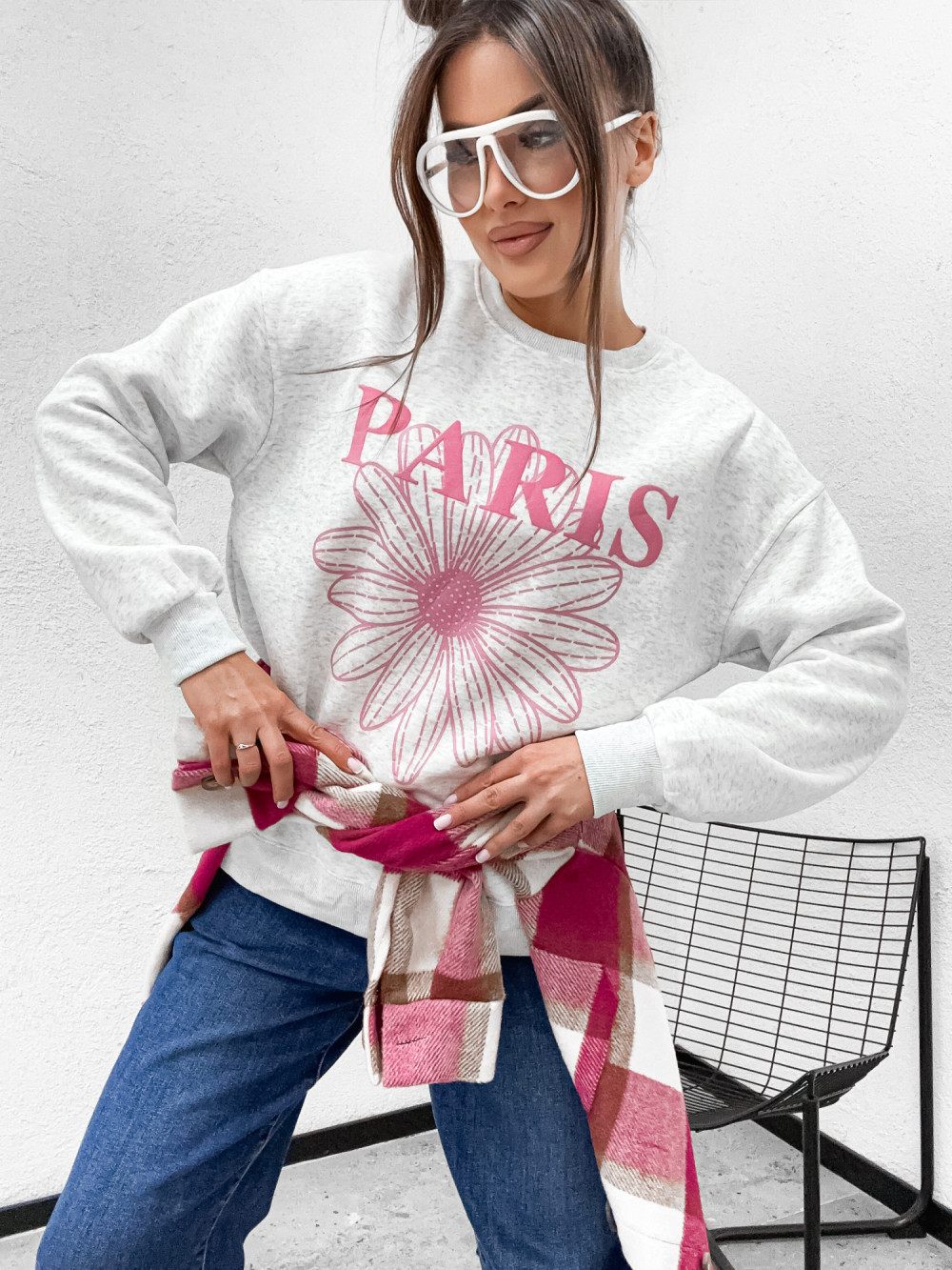 Bluza bawełniana BASIC Flowers Paris MELANŻ and PINK
