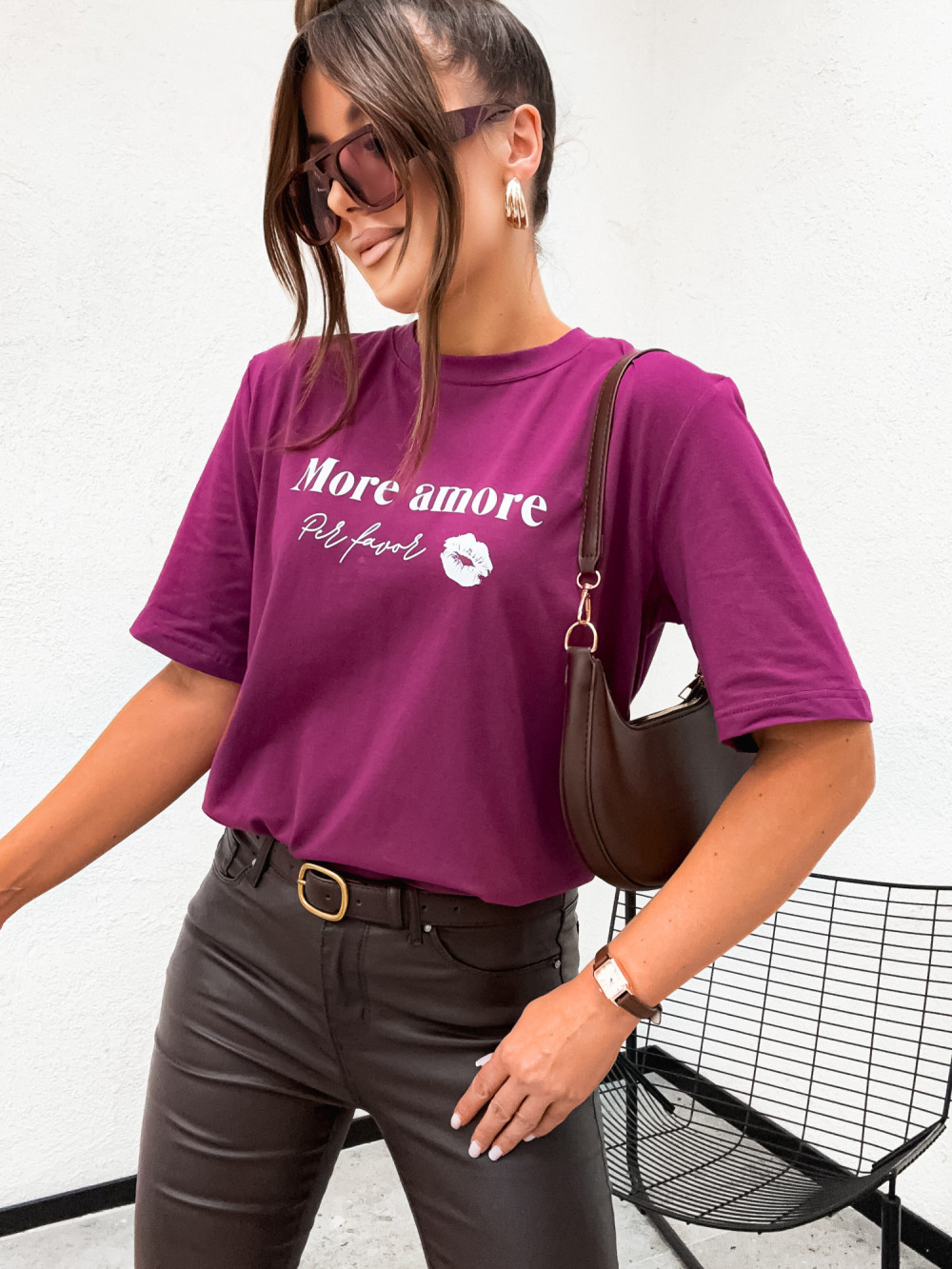 Tshirt BASIC MORE AMOUR per favore PLUM magenta