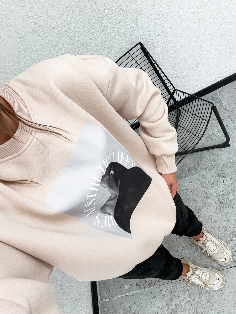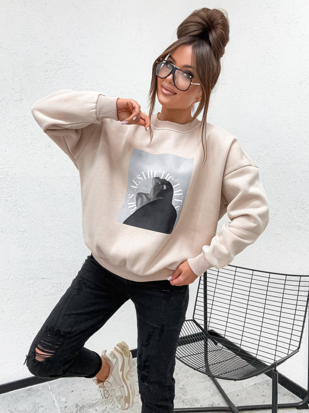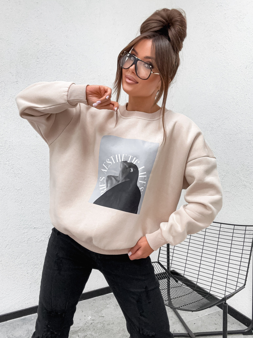 Bluza bawełniana ocieplana WOMEN ARTS nude beige