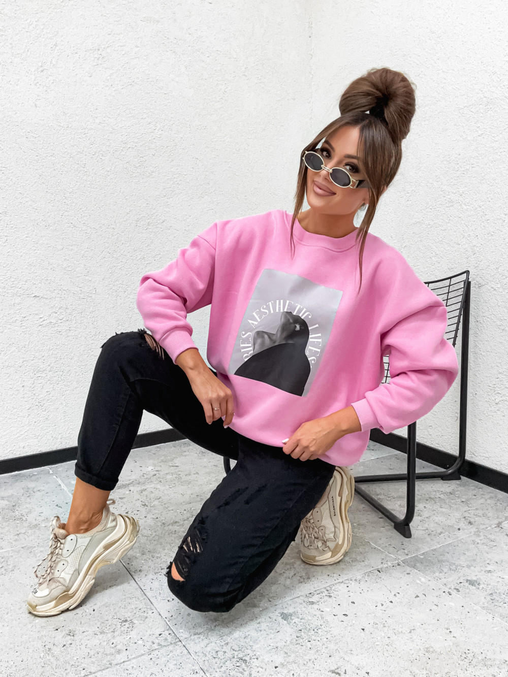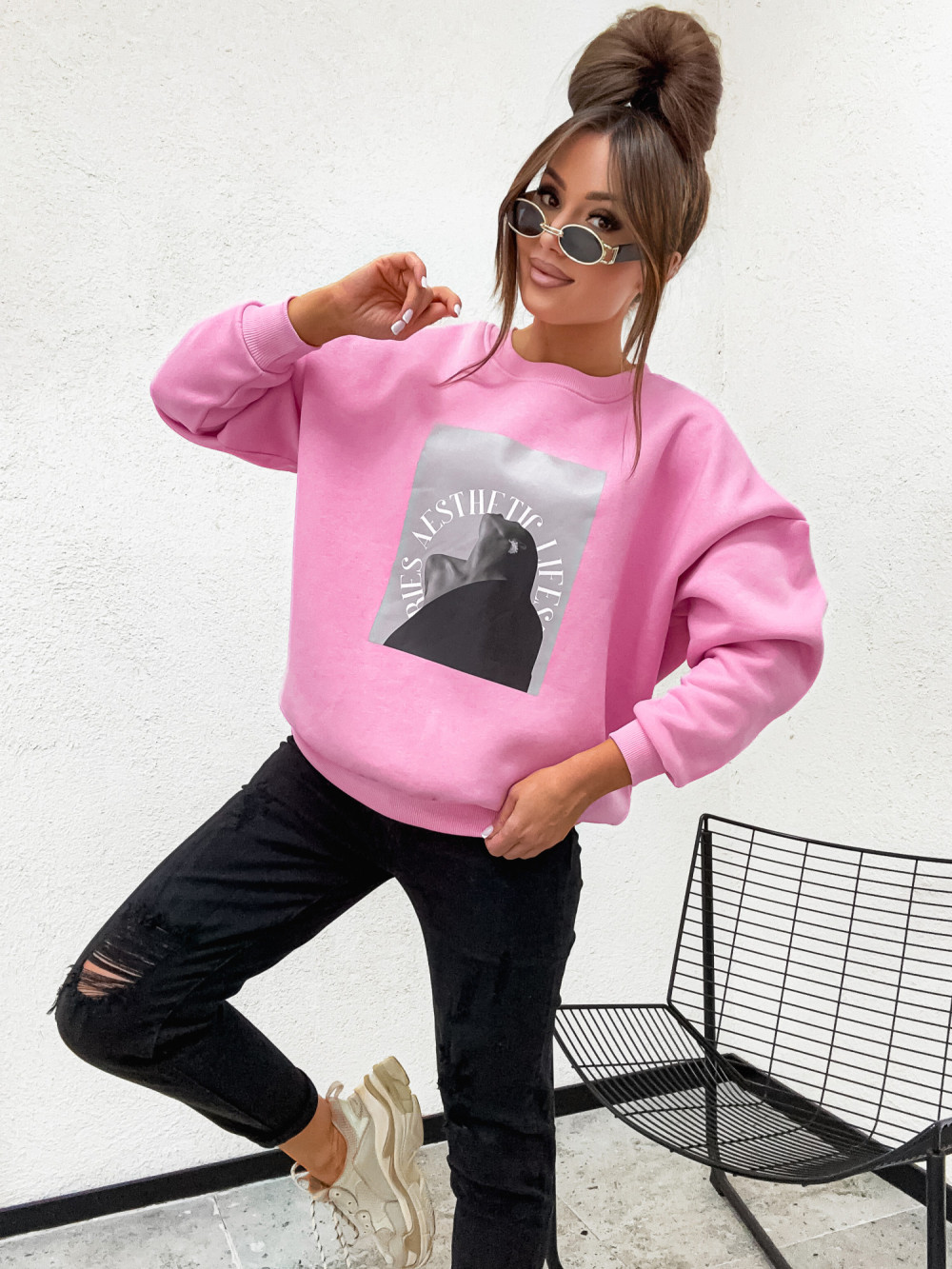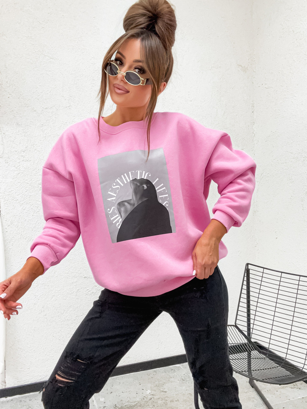 Bluza bawełniana ocieplana WOMEN ARTS candy pink