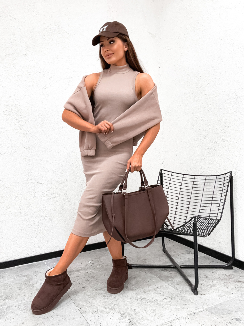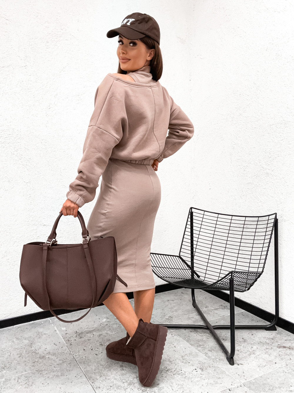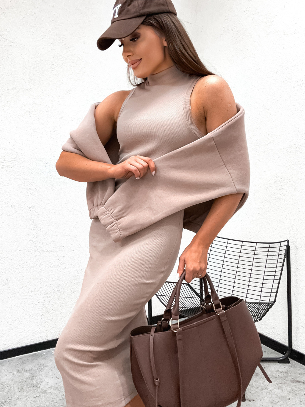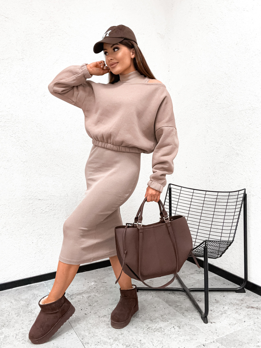 Komplet bawełniany VALERRIA bluza plus sukienka modelująca NUDE
