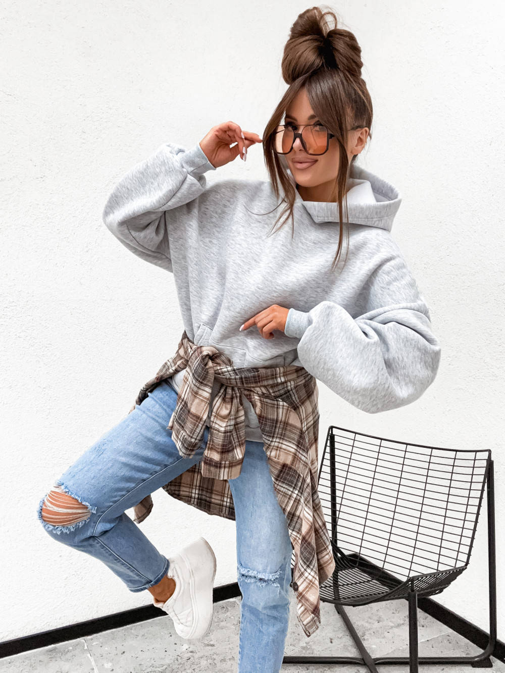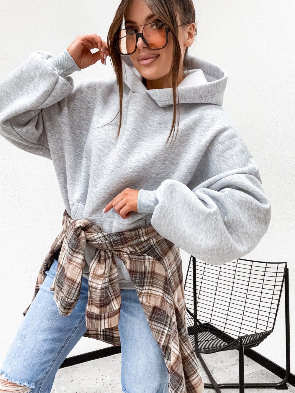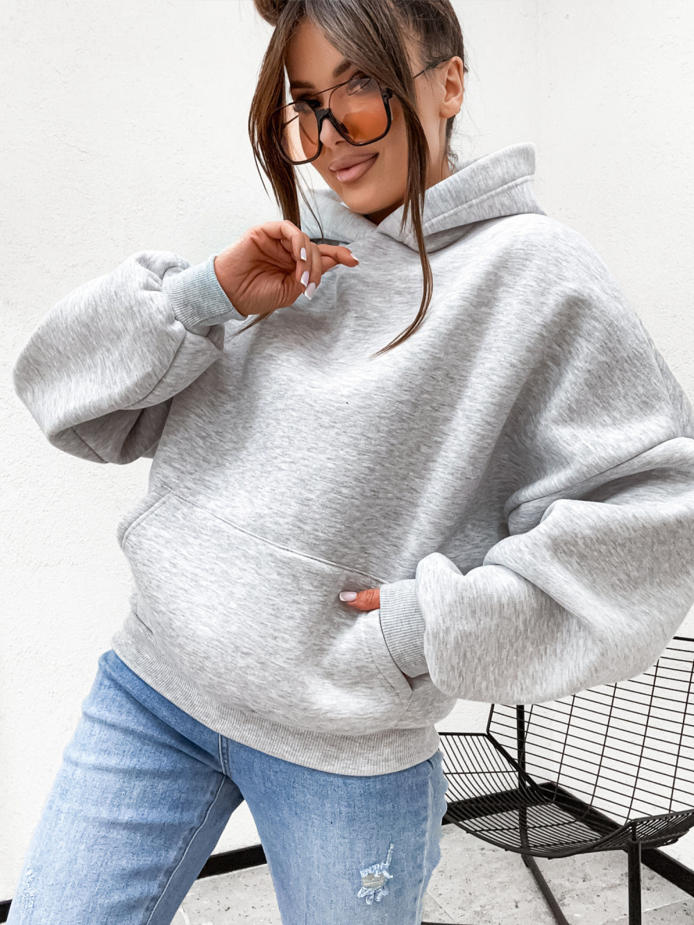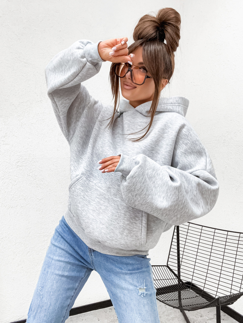 Bluza bawełnian BASIC LOOSE HOODIE classical gray melange