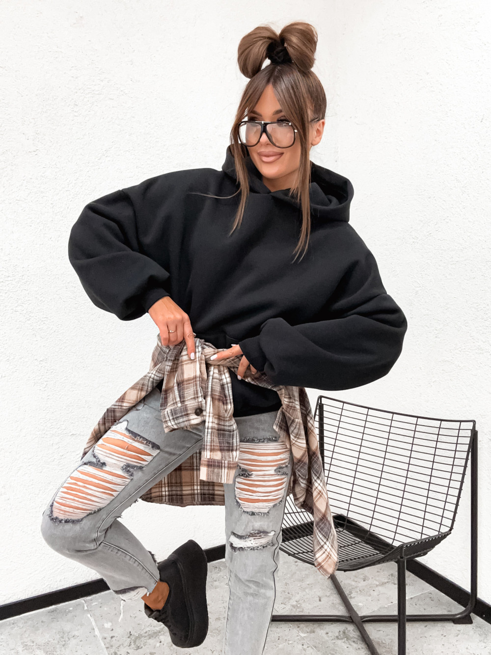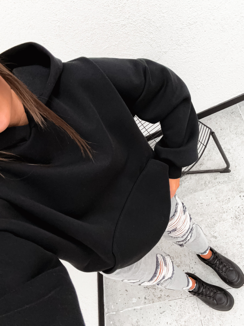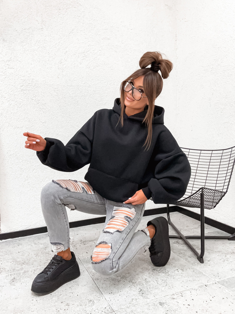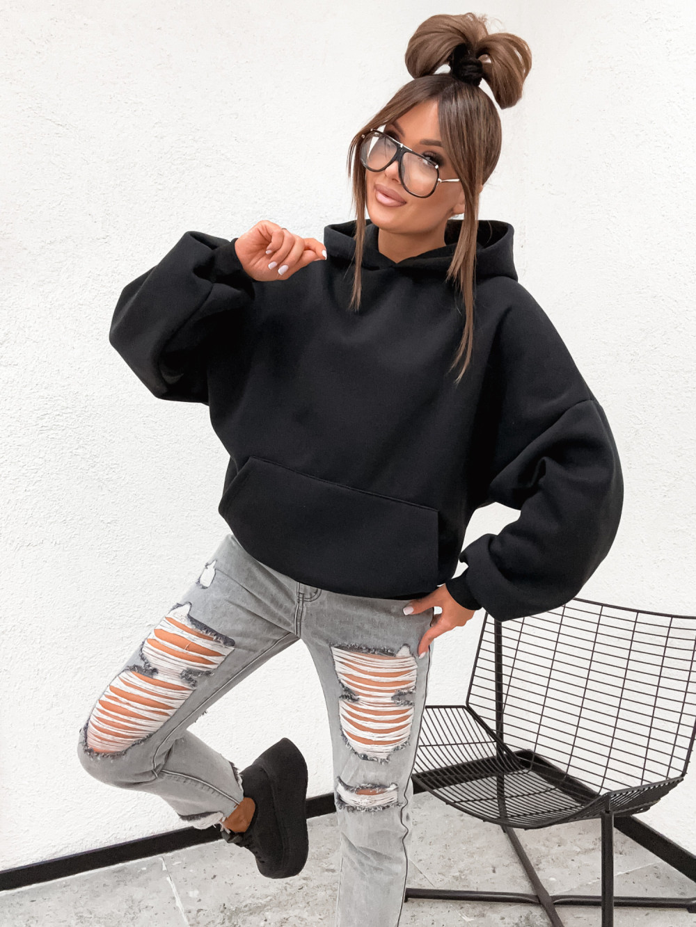 Bluza bawełnian BASIC LOOSE HOODIE classical black