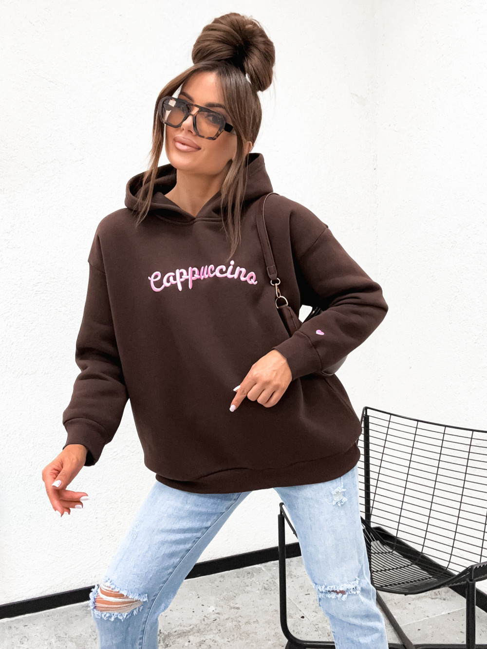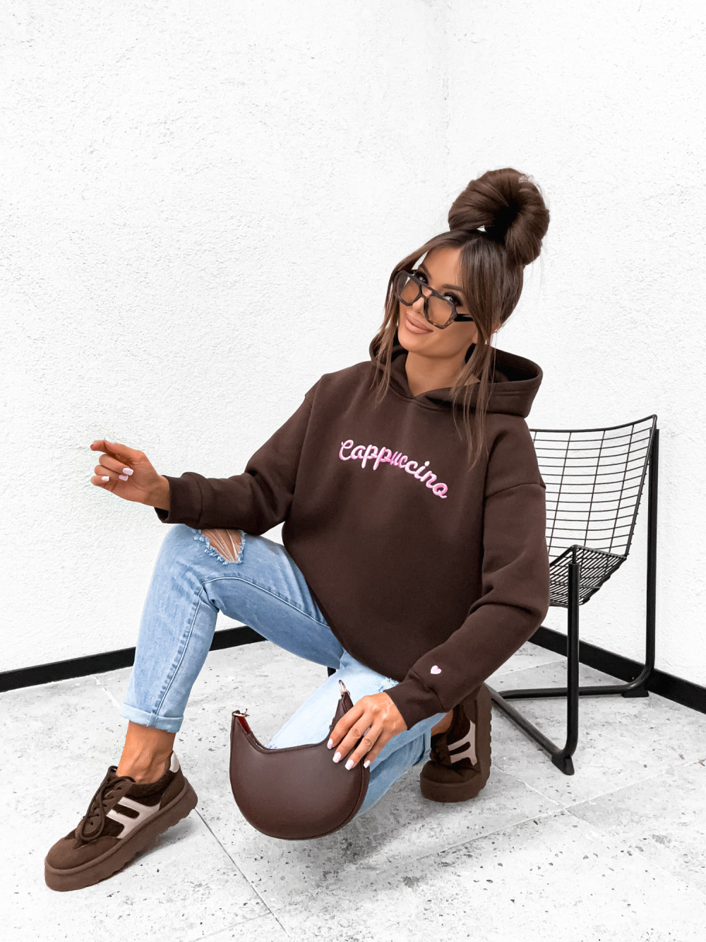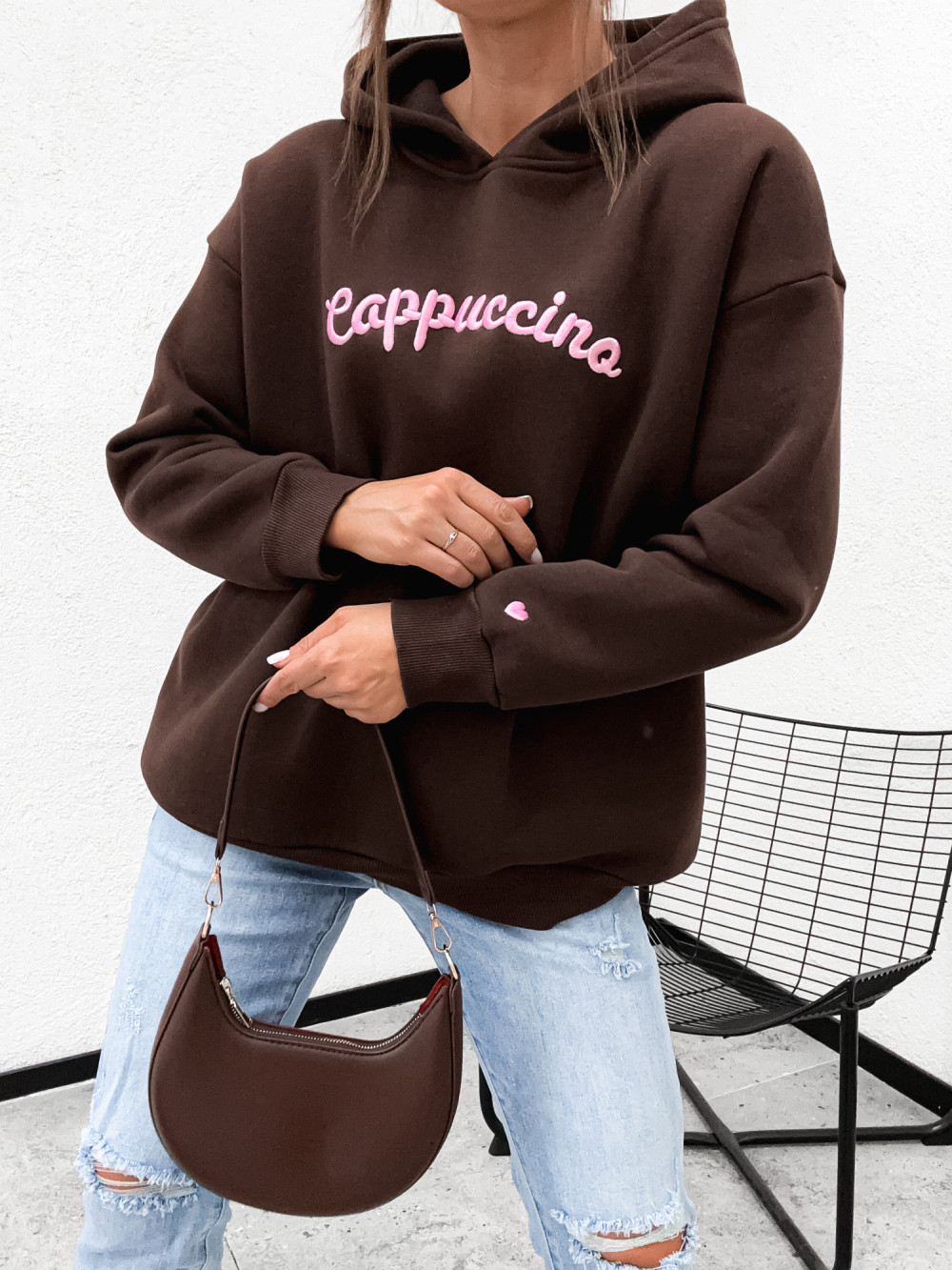 Bluza bawełniana z kapturem CAPPUCCINO hoodie BRĄZ