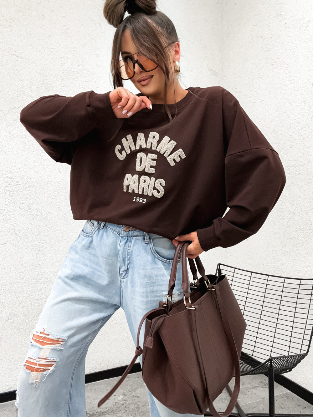 Stylowa bluza bawełniana w kolorze czekoladowym to świetna propozycja na chłodniejsze jesienne dni. Swobodny fason świetnie dopasowuje się do sylwetki i zapewnia maksymalną swobodę ruchów. Modna bluza bawełniana idealnie komponuje się ze spodniami dresowymi lub jeansami.