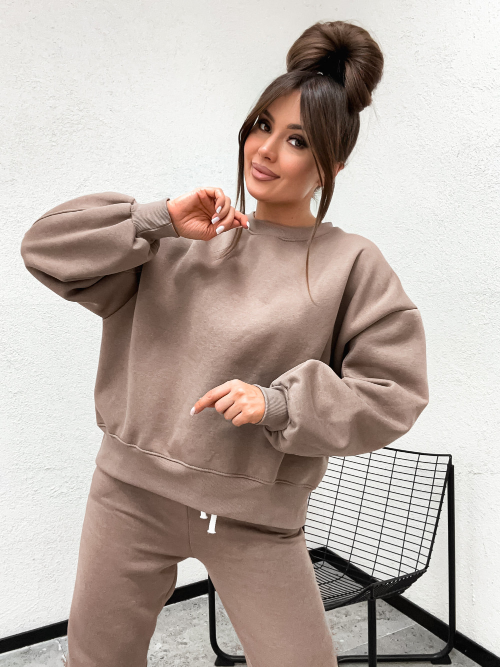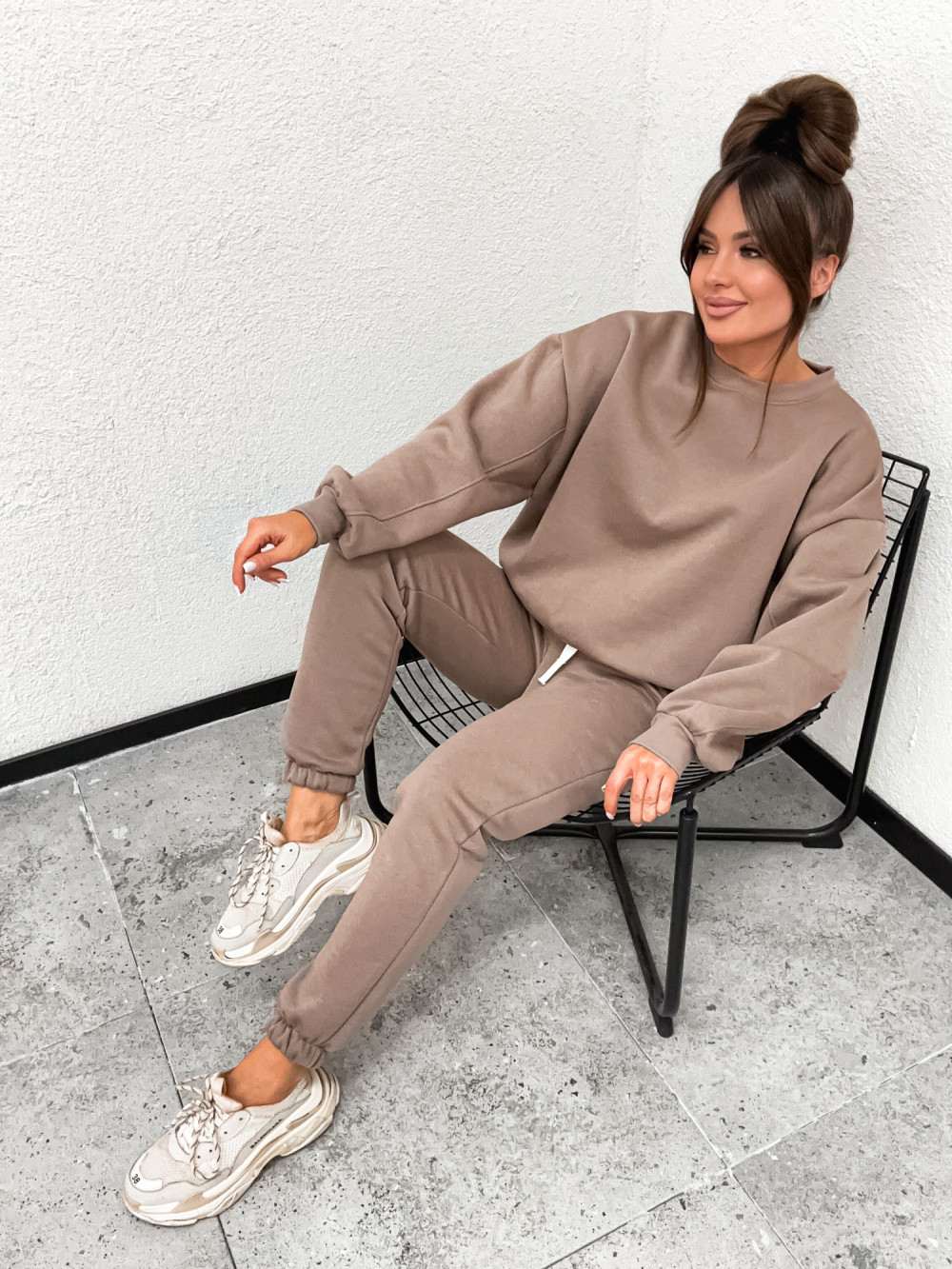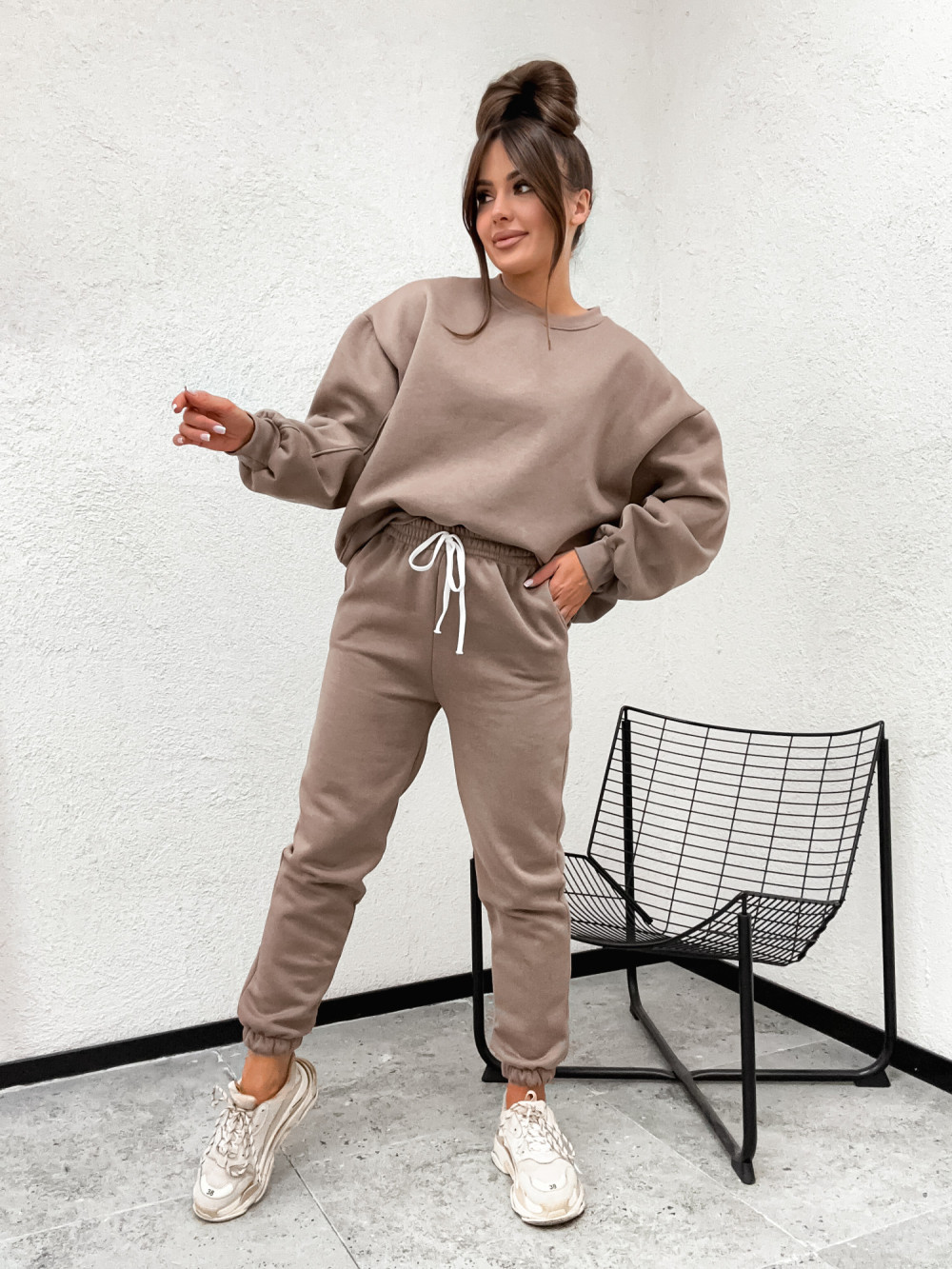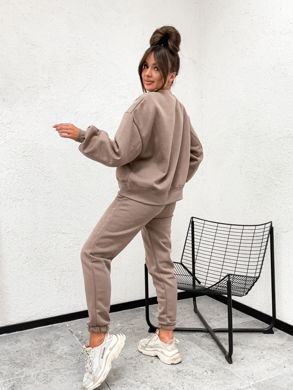 Klasyczny dres w delikatnym odcieniu czekolady to doskonała propozycja na chłodniejsze dni. Stylowy fason świetnie układa się na sylwetce i pozostawia dużą swobodę ruchów. Modny klasyczny dres możesz wykorzystać w codziennych zestawieniach lub sportowych stylizacjach. To najlepszy wybór dla kobiet lubiących aktywny tryb życia i ceniących sobie swobodę.