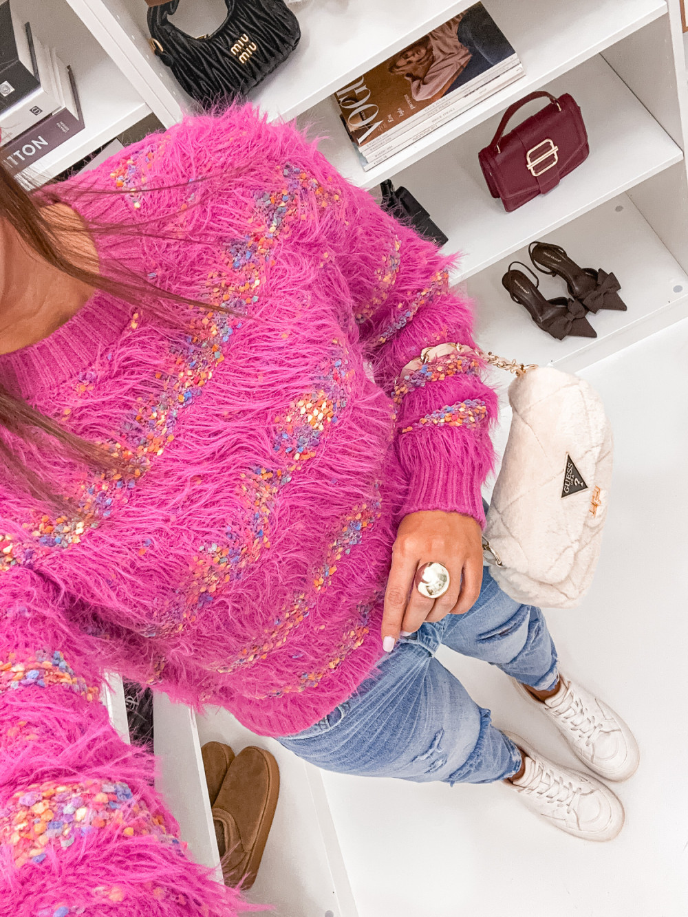 Sweter MONTECHIARO Fluffy colorful PINK