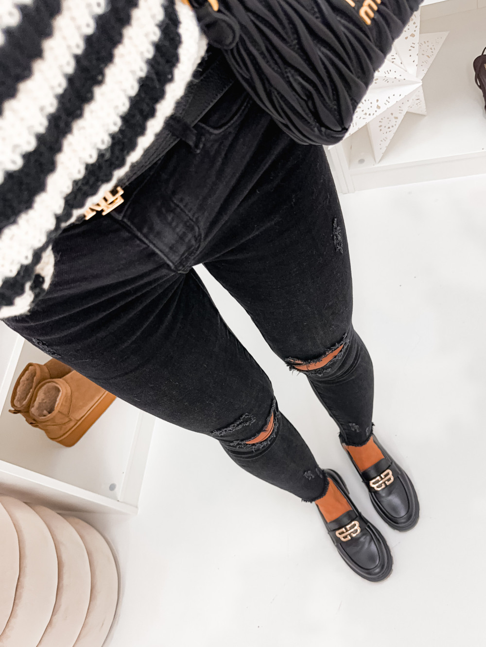 Czarne jeansy z przetarciami. Zdecyduj się na nie, jeżeli lubisz sprawdzone rozwiązania – nasze spodnie pasują do większości outfitów. Zostały uszyte z mocnego, odpornego na zniszczenia denimu, dlatego na pewno posłużą Ci co najmniej kilka lat. Jeansowe spodnie damskie z wysokim stanem pięknie układają się na sylwetce.