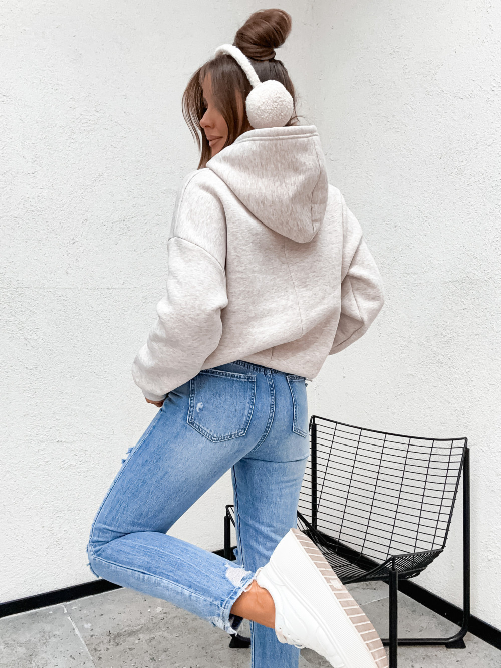 Ciepła bluza bawełniana z kapturem i dużą kieszenią świetnie sprawdzi się w sportowych i codziennych stylizacjach. Modny fason świetnie układa się na sylwetce, zapewniając wygodę i świetny wygląd. Stylowa bluza bawełniana świetnie pasuje do jeansów lub spodni dresowych.