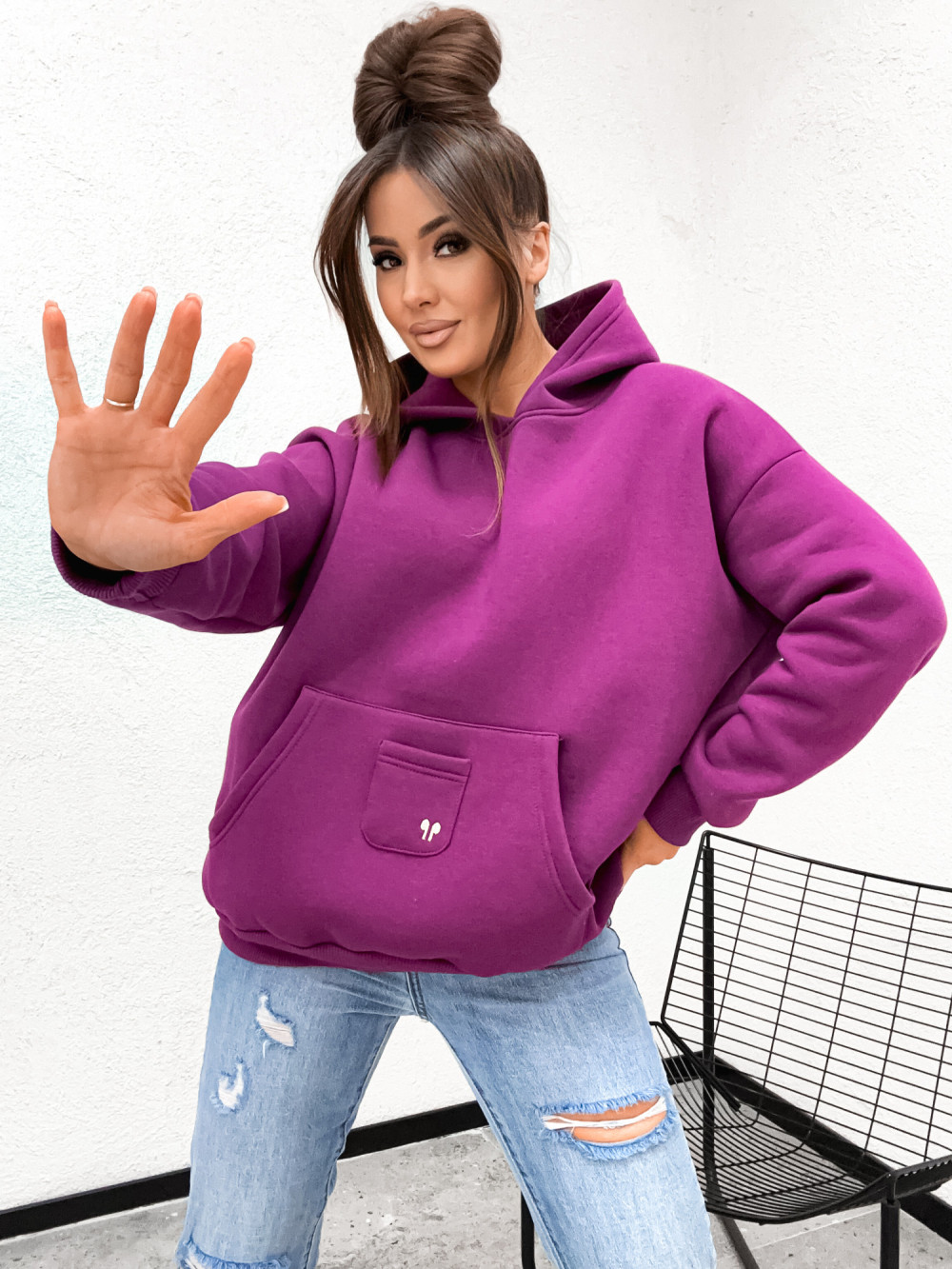 Ciepła bluza bawełniana z kapturem i dużą kieszenią w wyrazistym kolorze jest świetną propozycją na chłodniejsze dni. Swobodny fason świetnie dopasowuje się do różnych typów sylwetki, zapewniając wygodę w każdej sytuacji. Modna bluza bawełniana świetnie komponuje się z jeansami, jak również może być wykorzystana w warstwowej stylizacji.