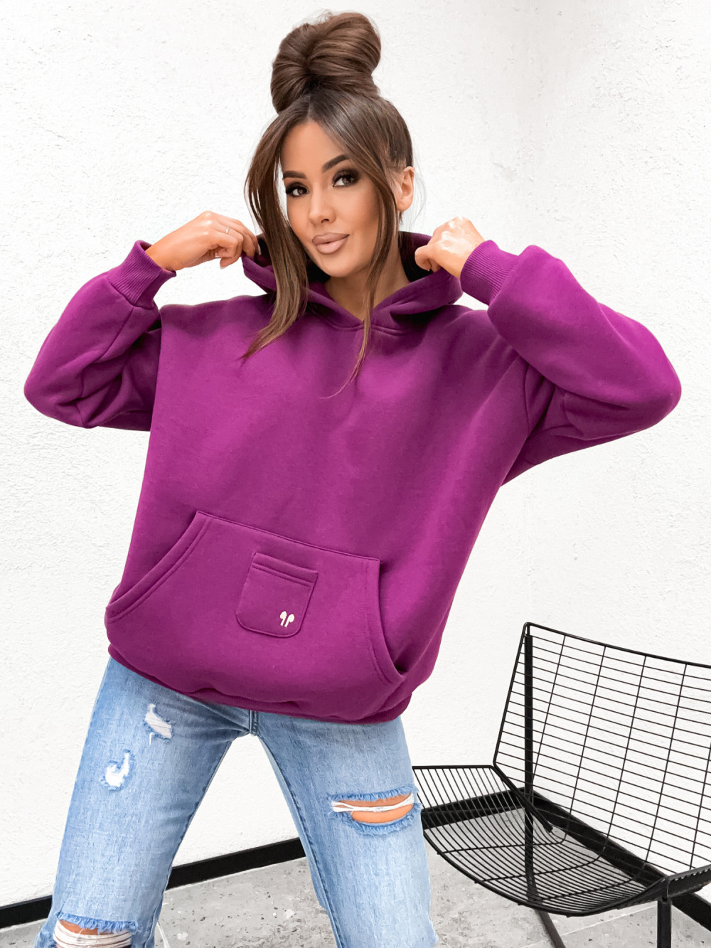 Bluza bawełniana CLASSICAL AIR QUEEN pocket PLUM magenta