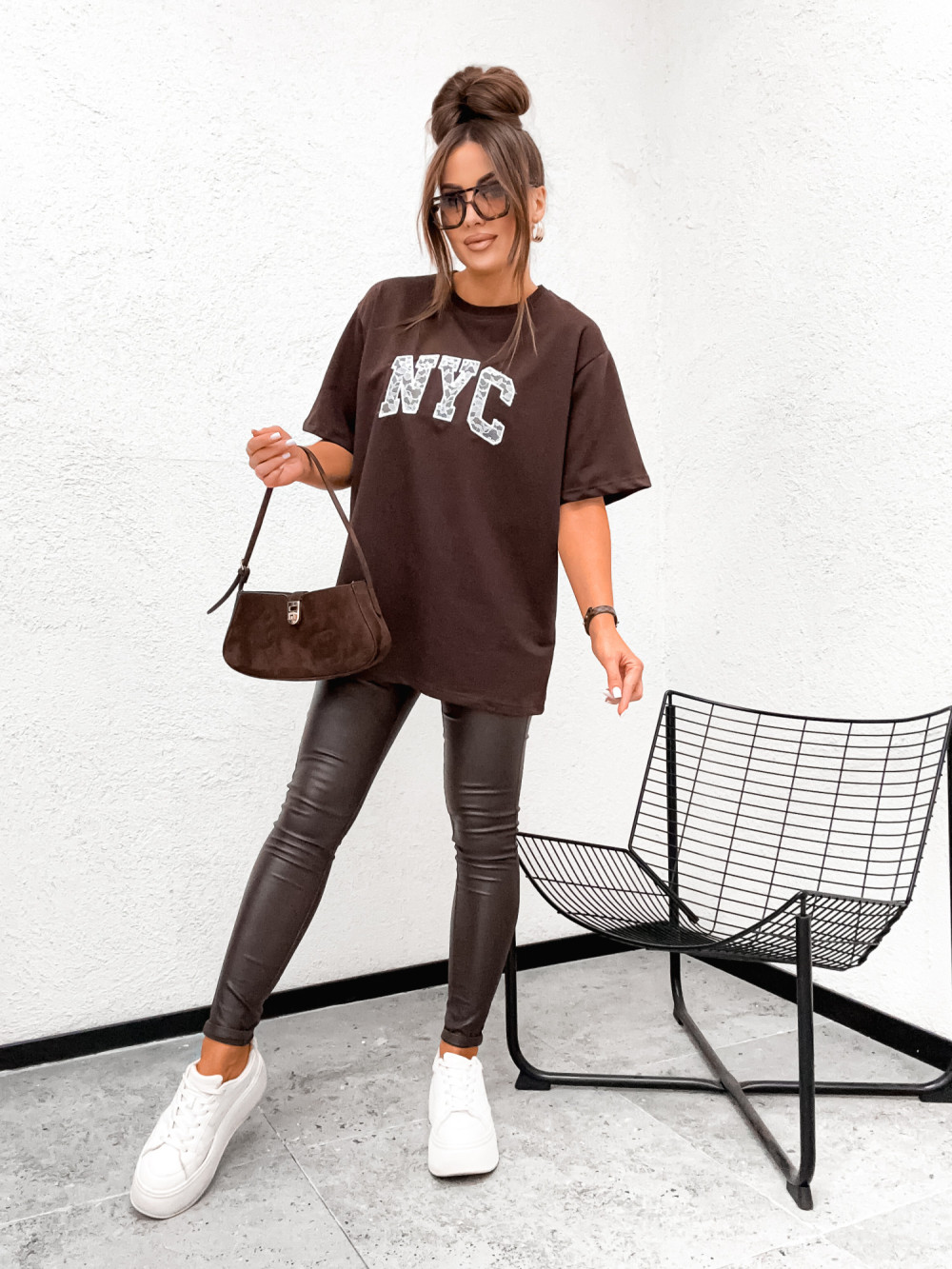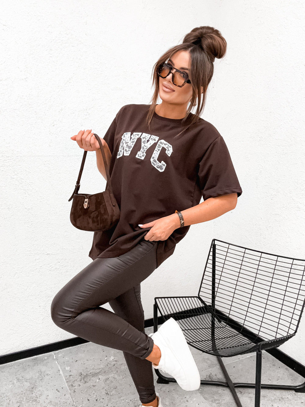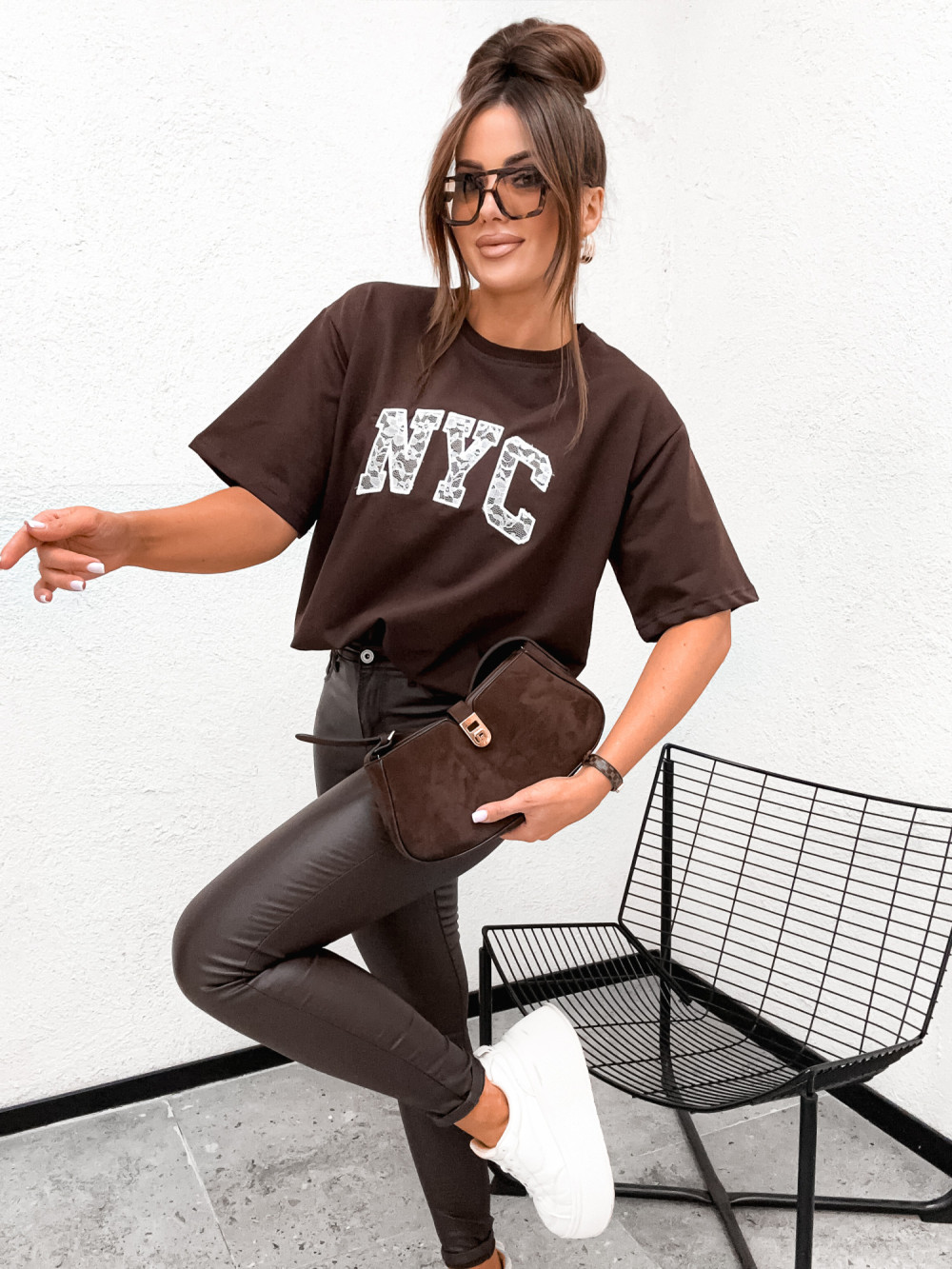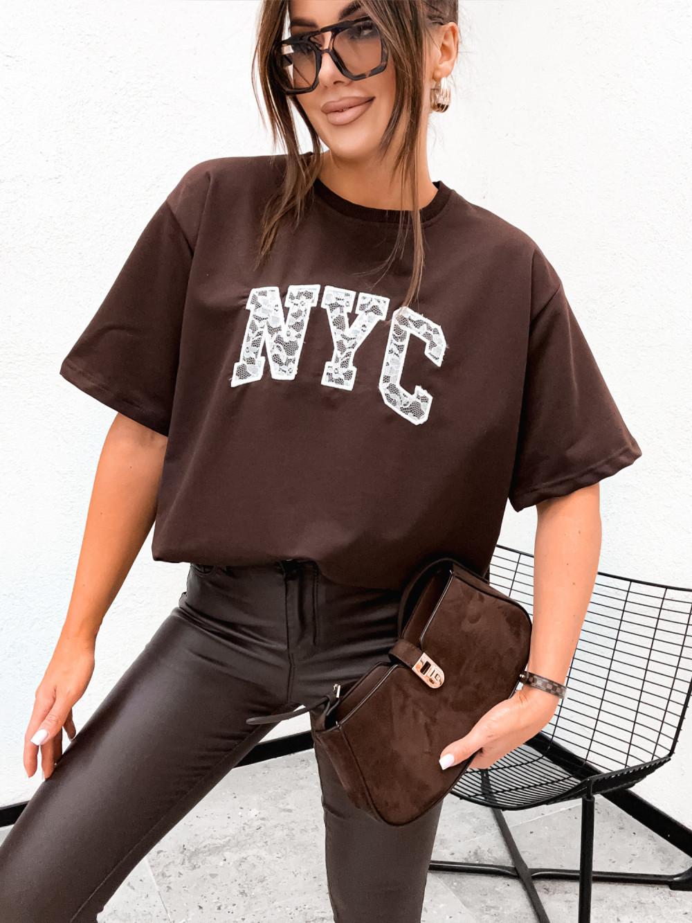 Tshirt BASIC NYC lace inscription CHOCCO brąz