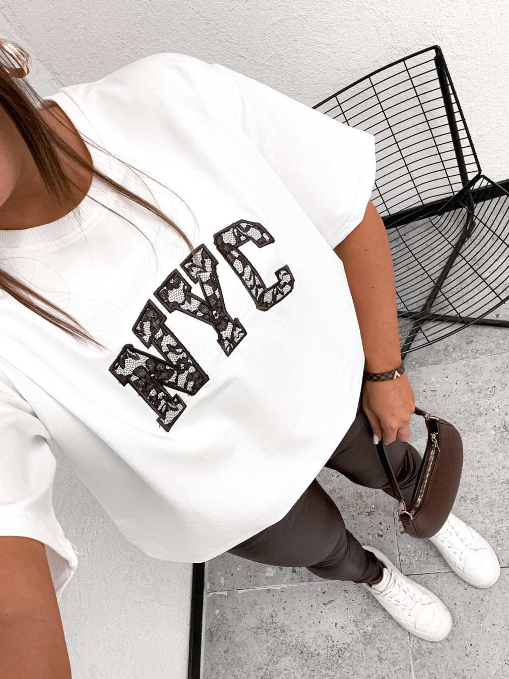 Tshirt BASIC NYC lace inscription WHITE