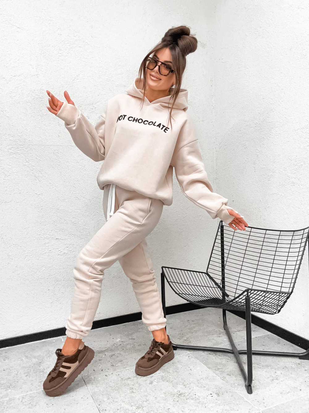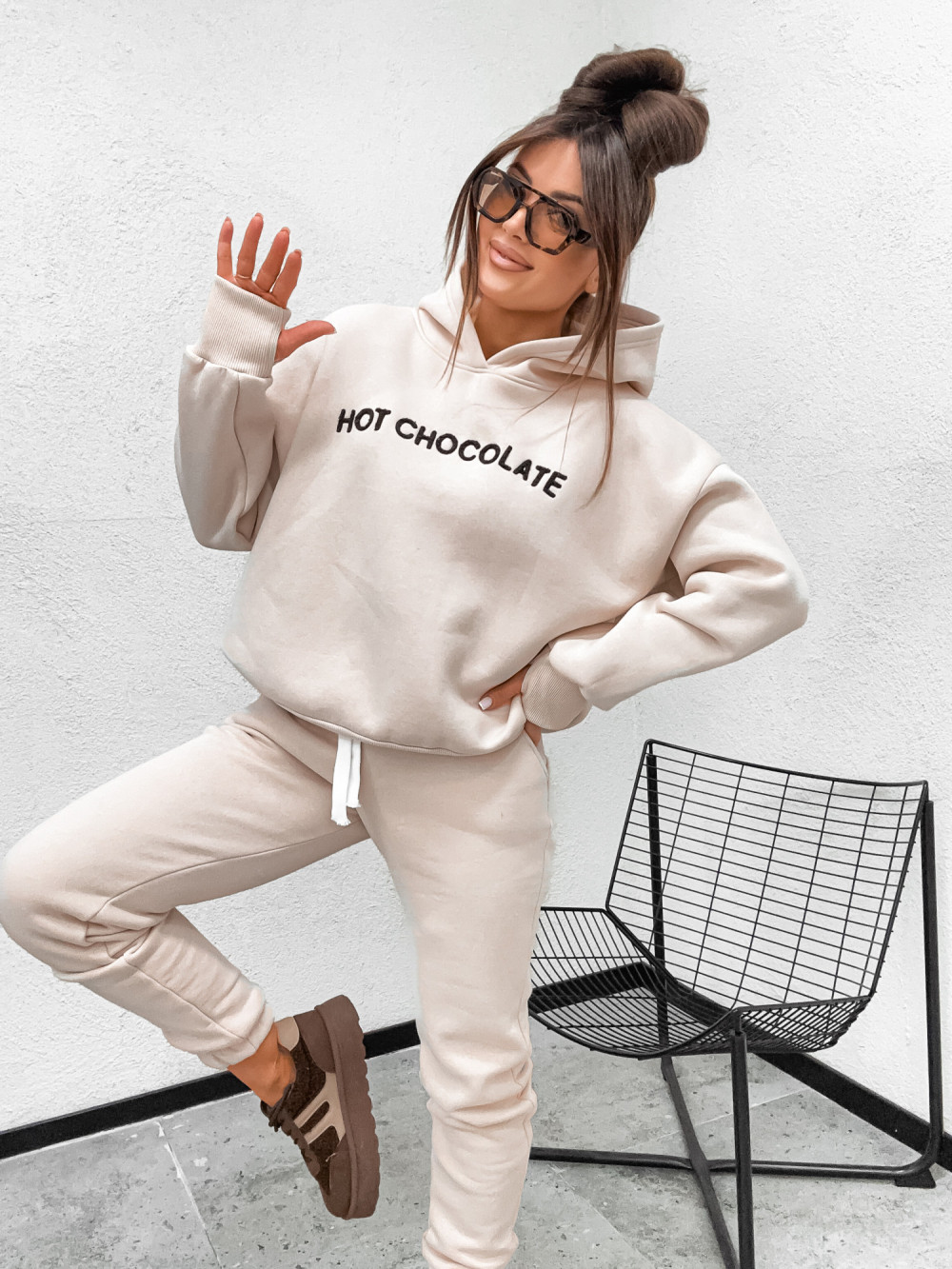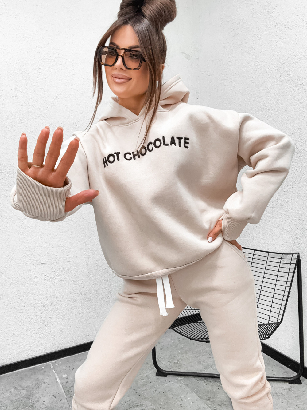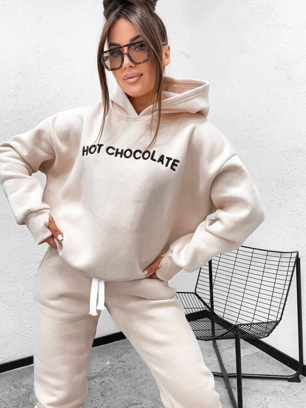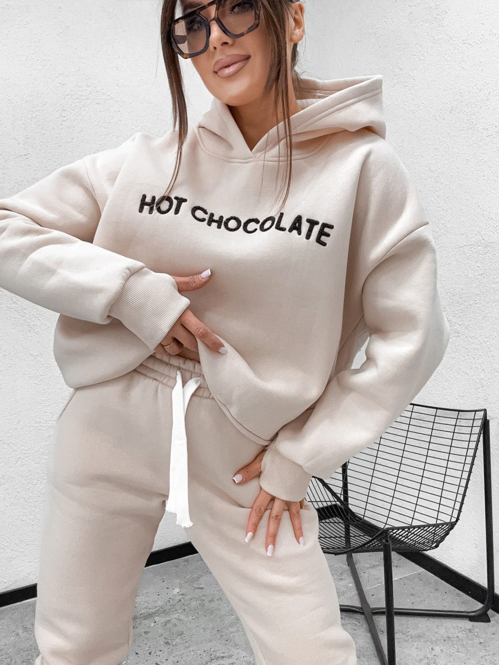 Dres bawełniany HOT CHOCOLATE hoodie NUDE CREAMMY
