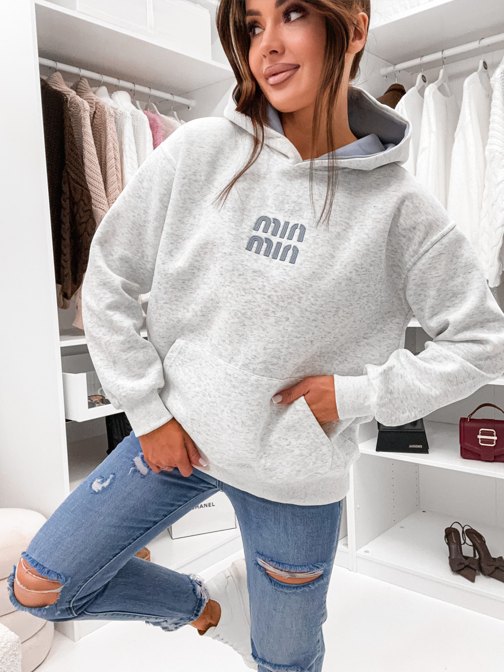 Bluza bawełniana z kapturem DOUBLE MIN MIN melanż