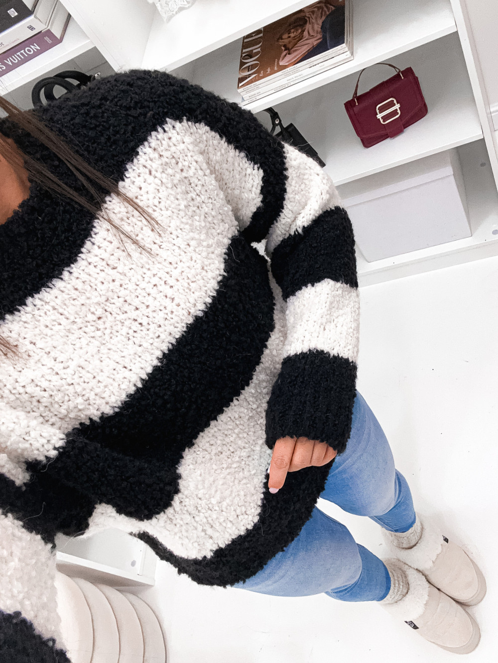 Sweter MODENNA w pasy ALPAKA WEŁNA black