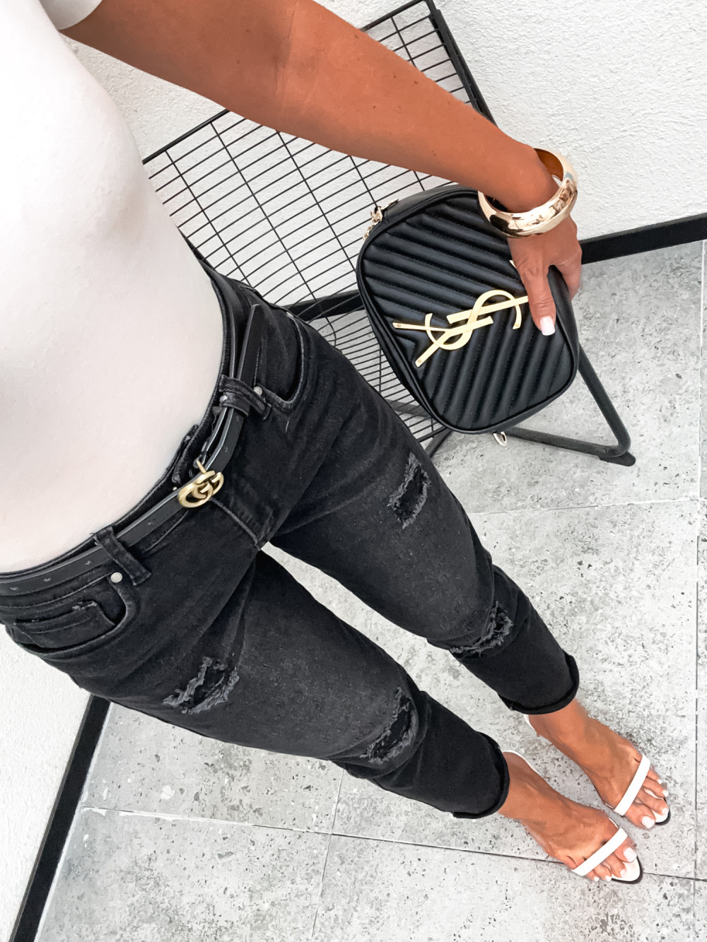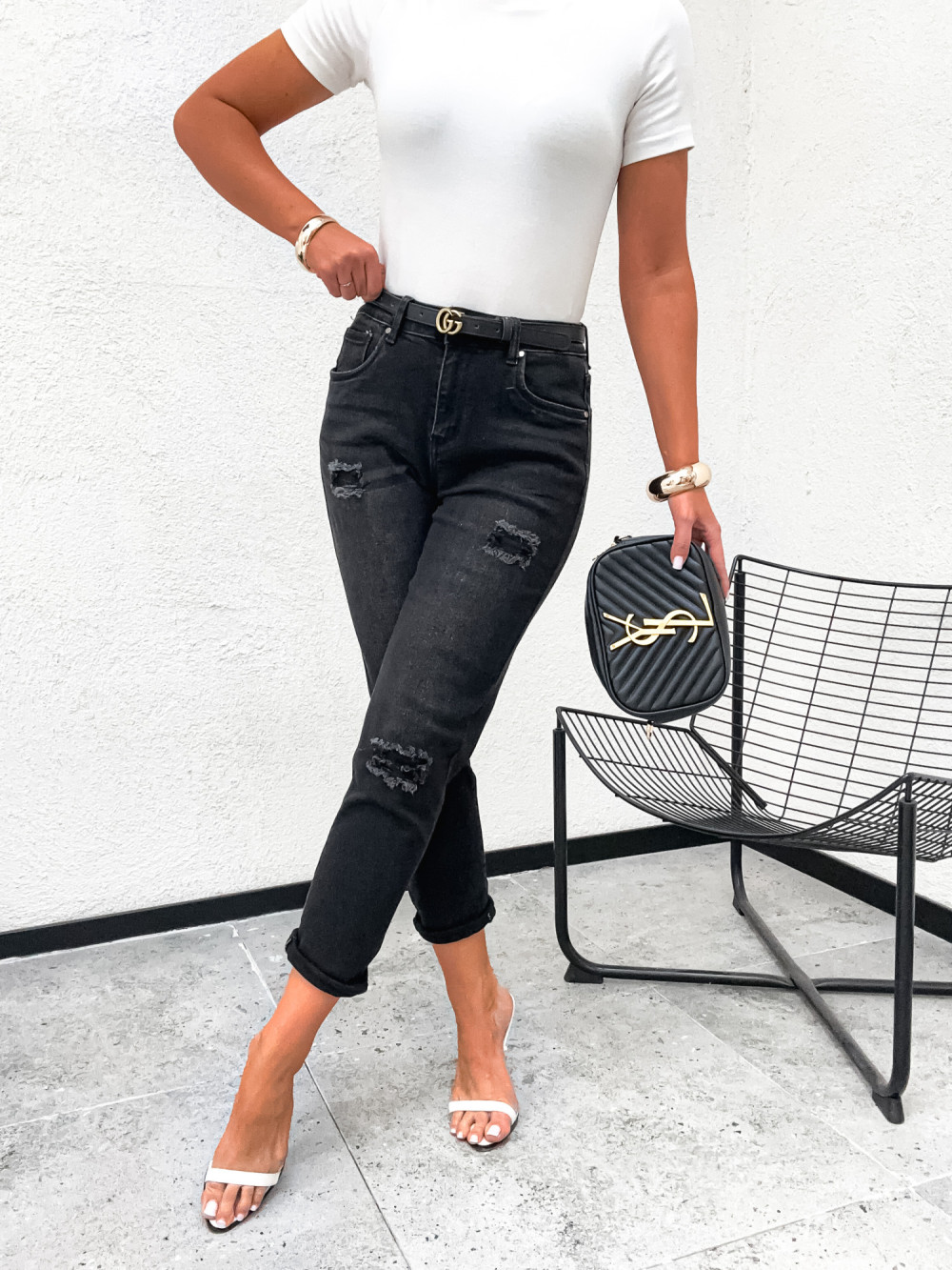 Spodnie jeansowe DENIM LOCCA RIPPED BLACK mom stretch
