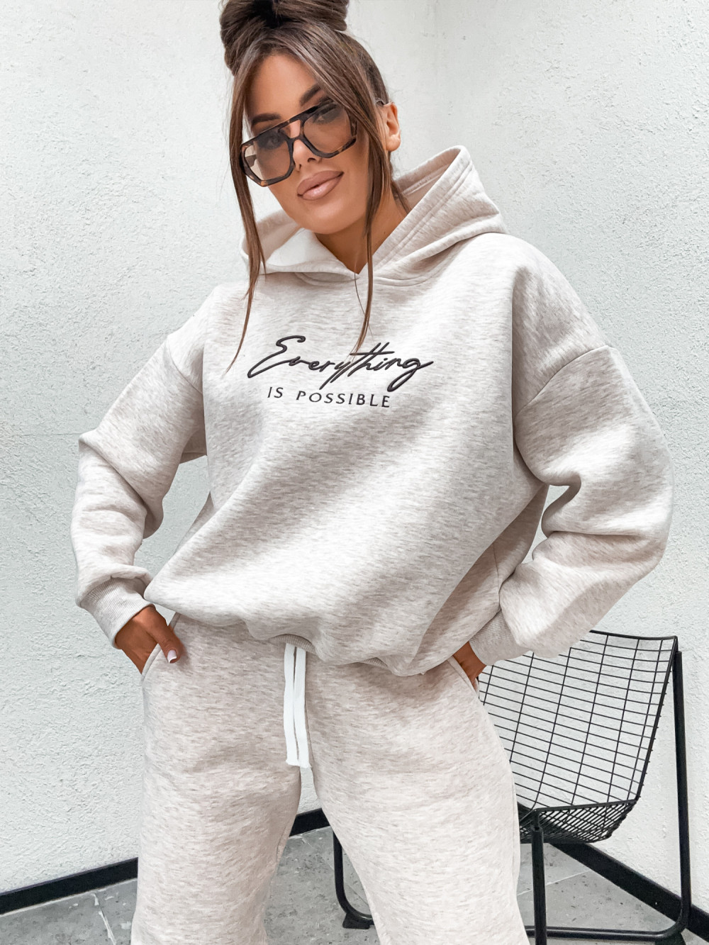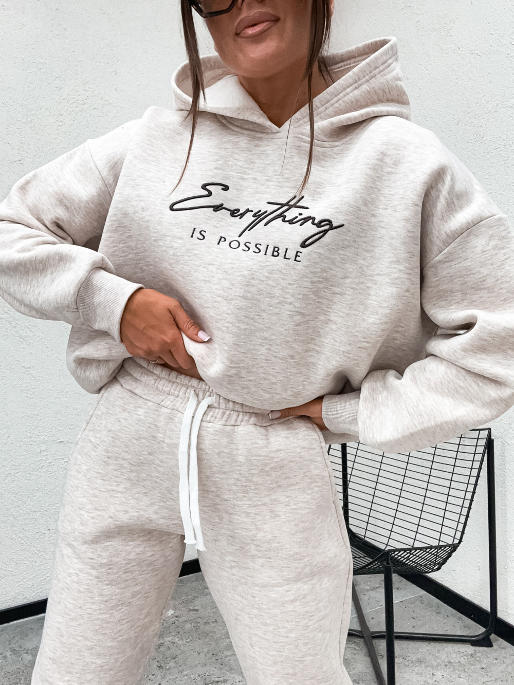 Dres bawełniany ocieplany BASIC SKI HOODIE melanż