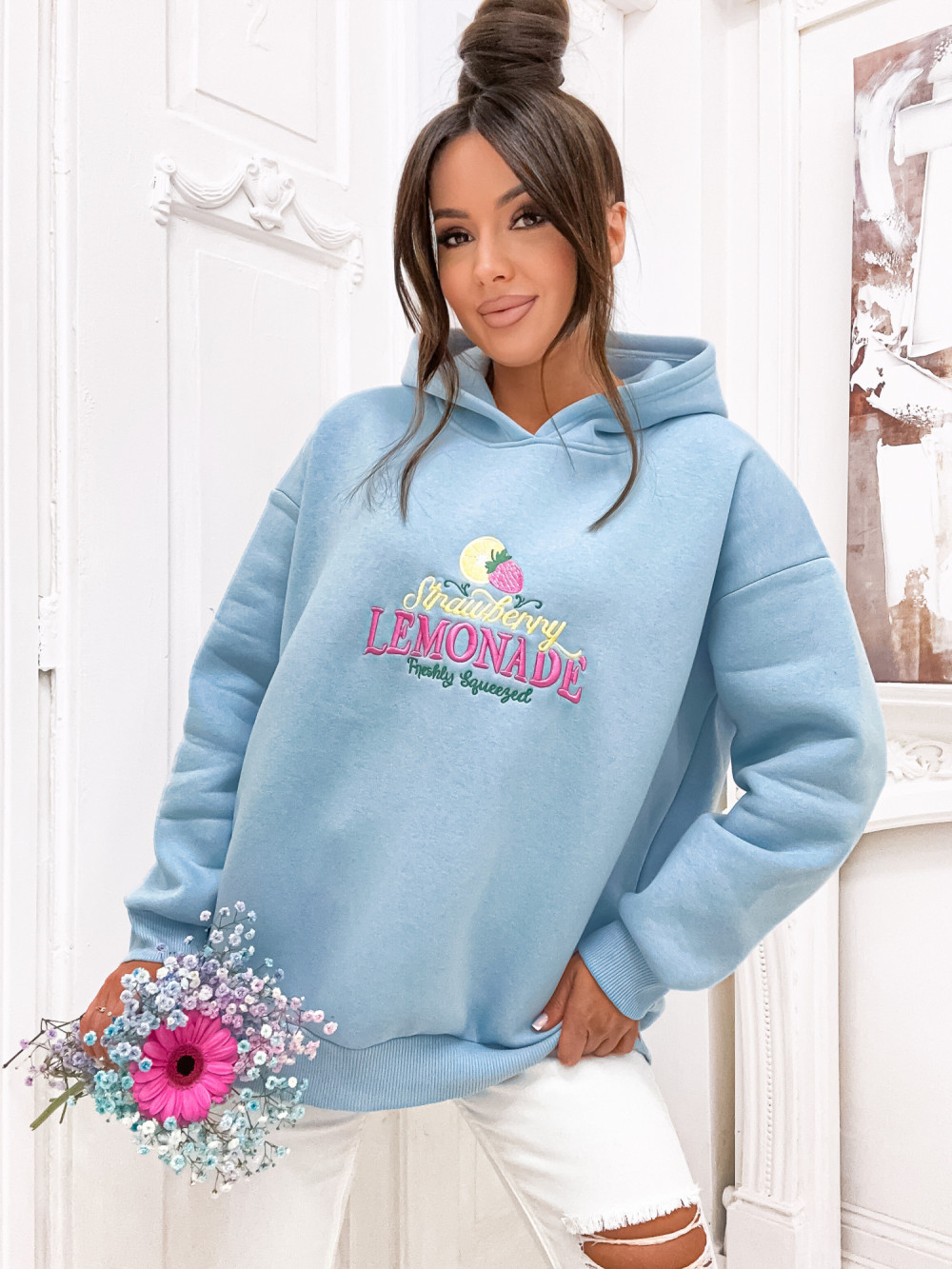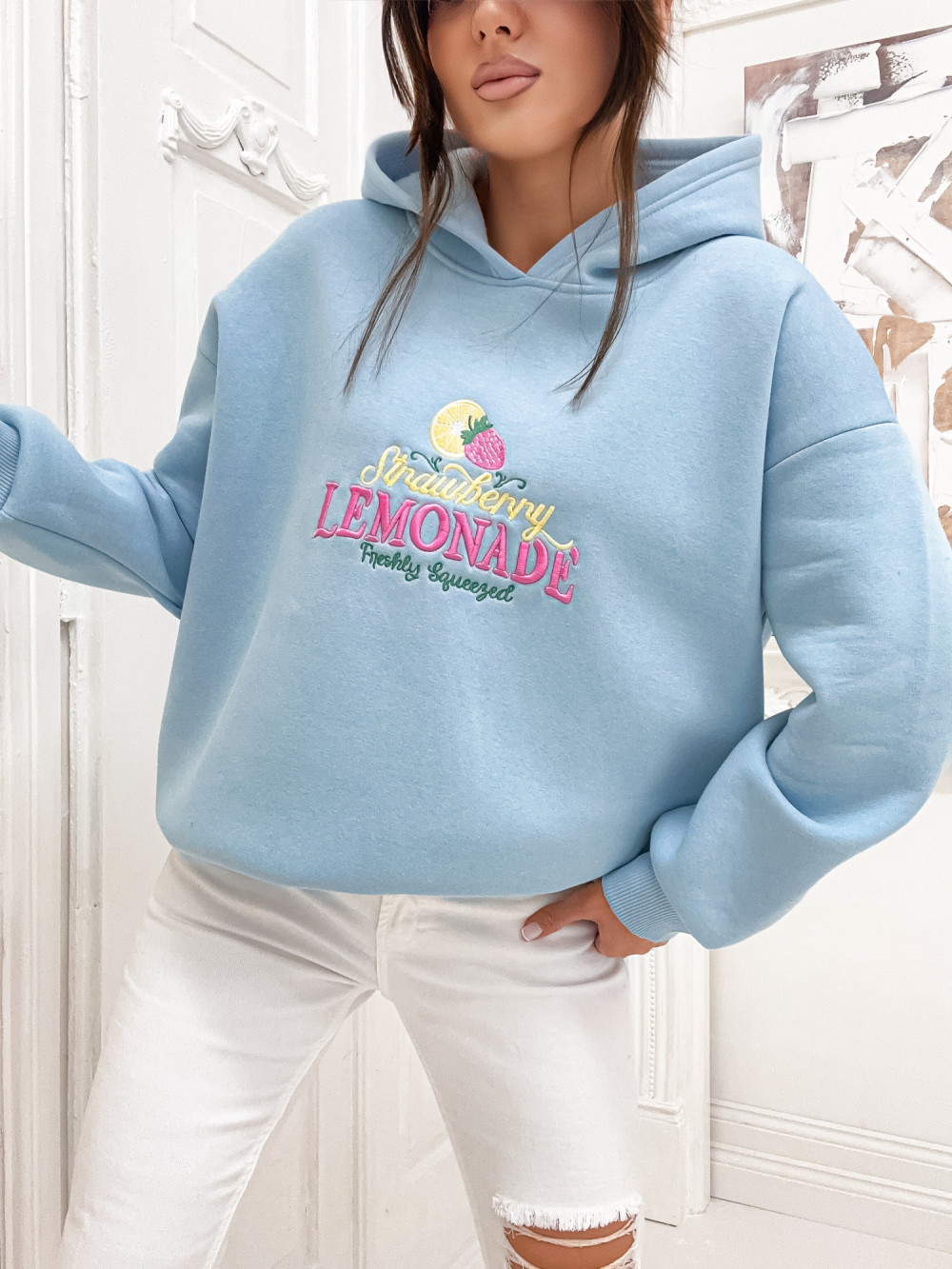 Bluza bawełniana z kapturem CITRUS LEMONADE baby blue