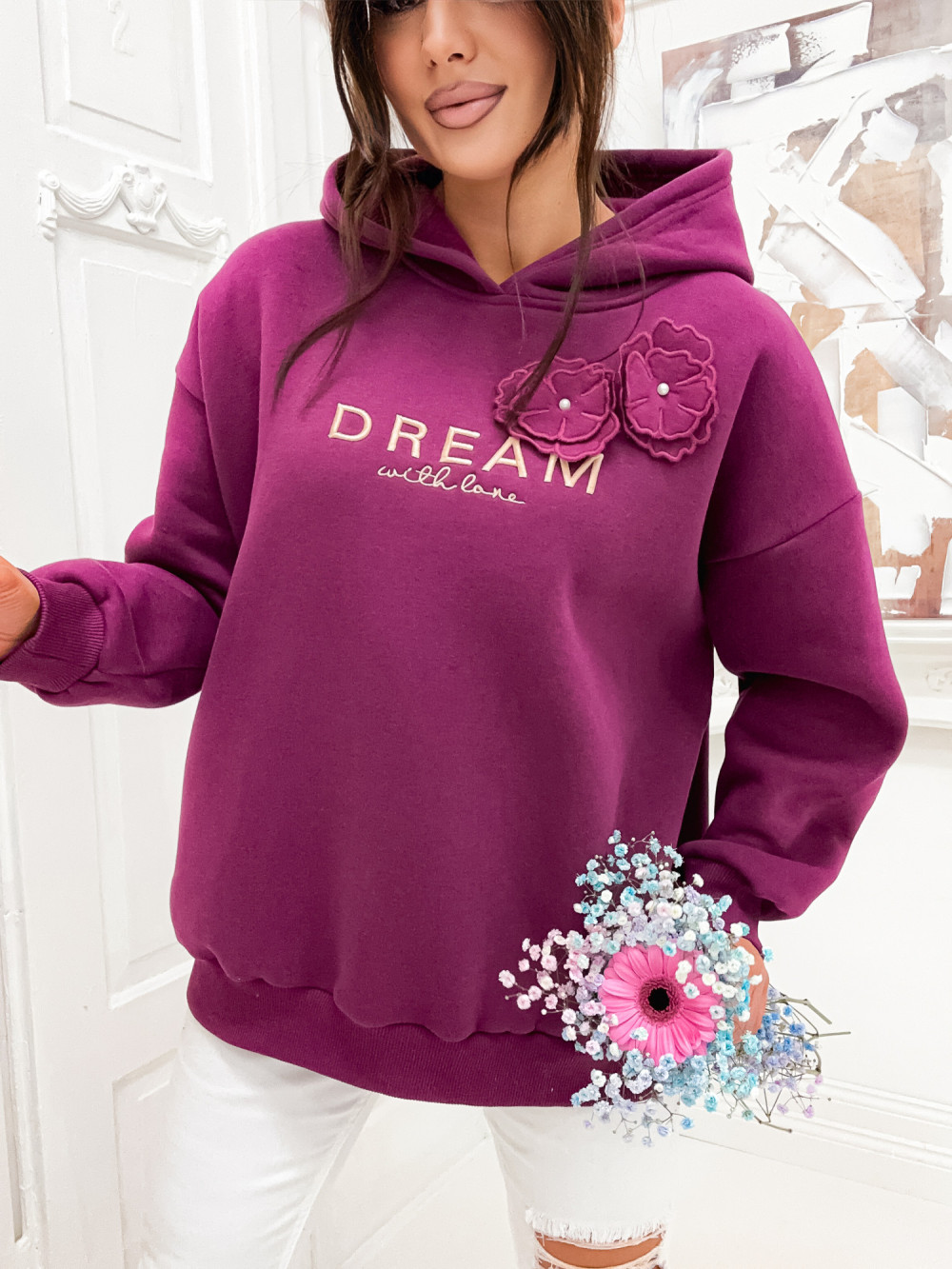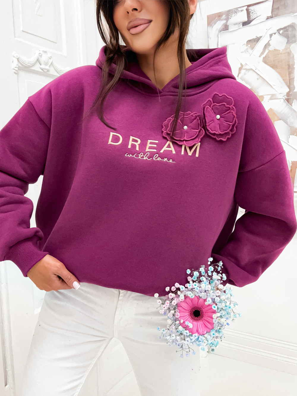 Bluza bawełniana z kwiatkiem BASIC DREAM FLOWERS plum