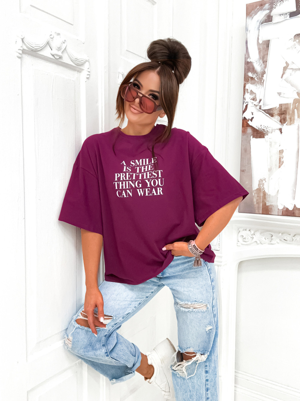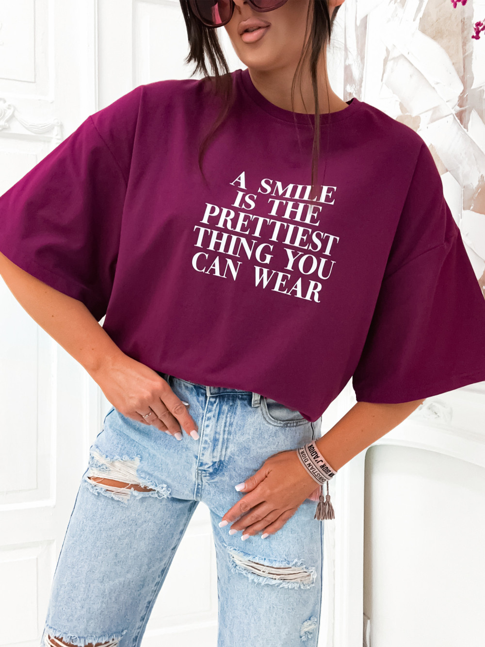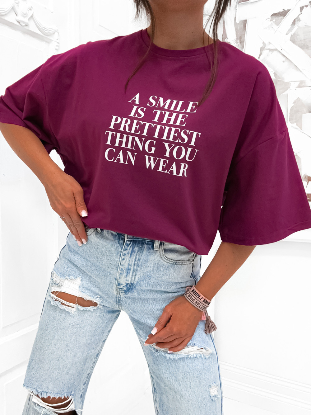 Tshirt BASIC STREETWEAR A SMILE plum