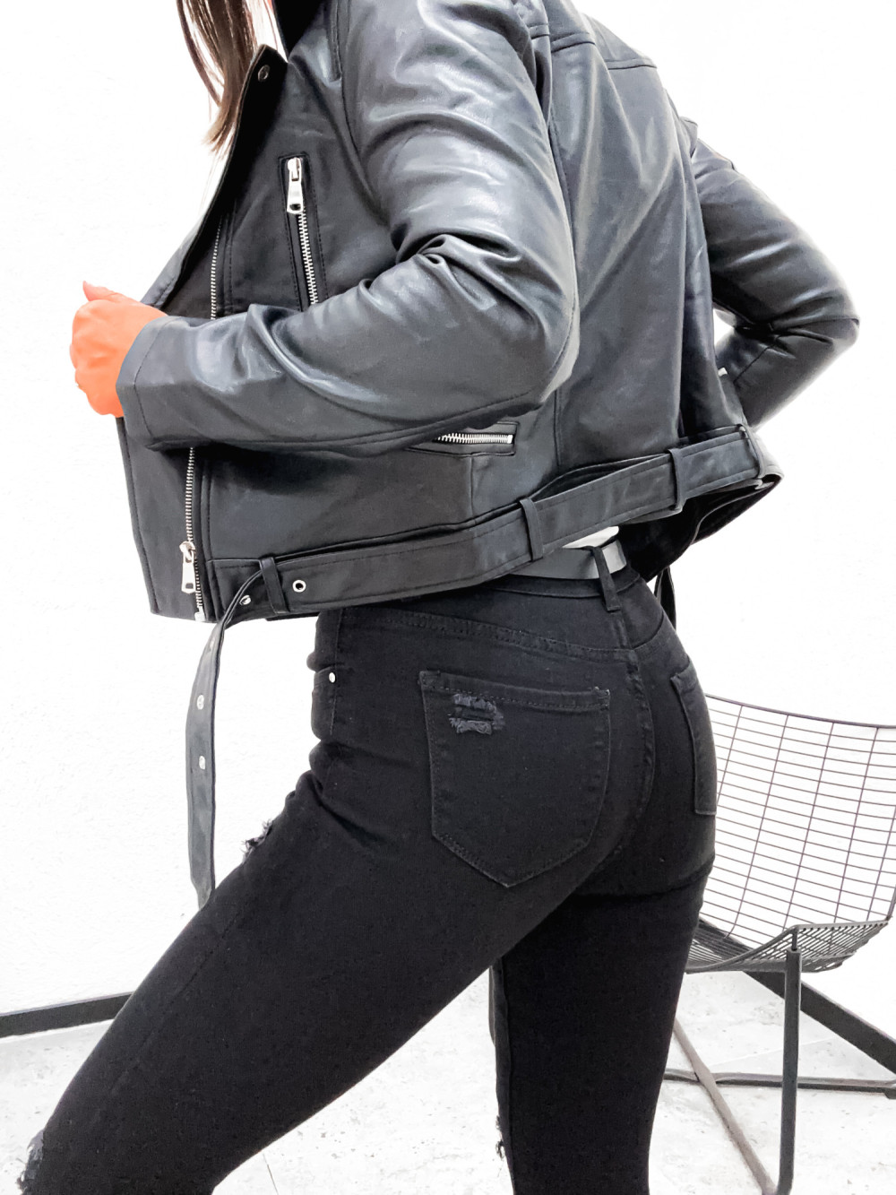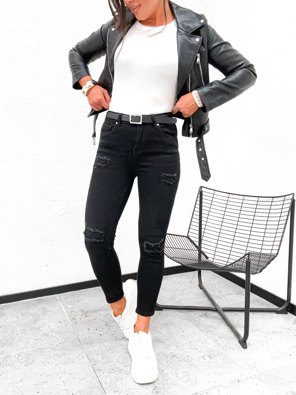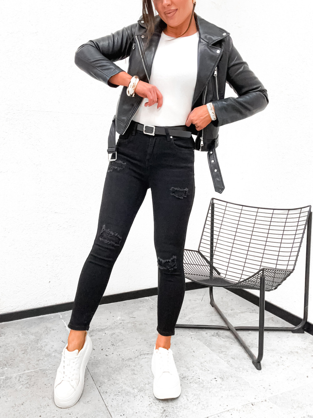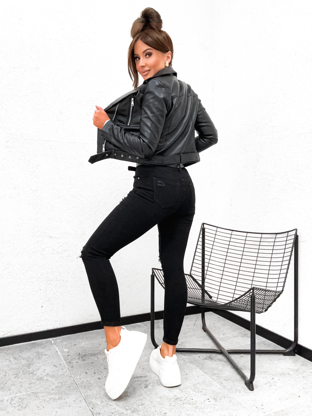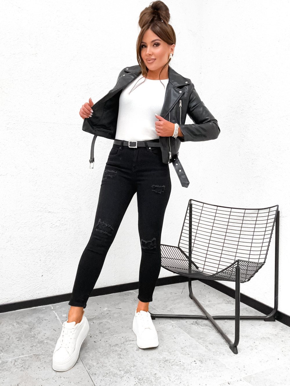 Spodnie JEANSOWE CZARNE DENIM DONNA z przetarciami PUSH UP slim