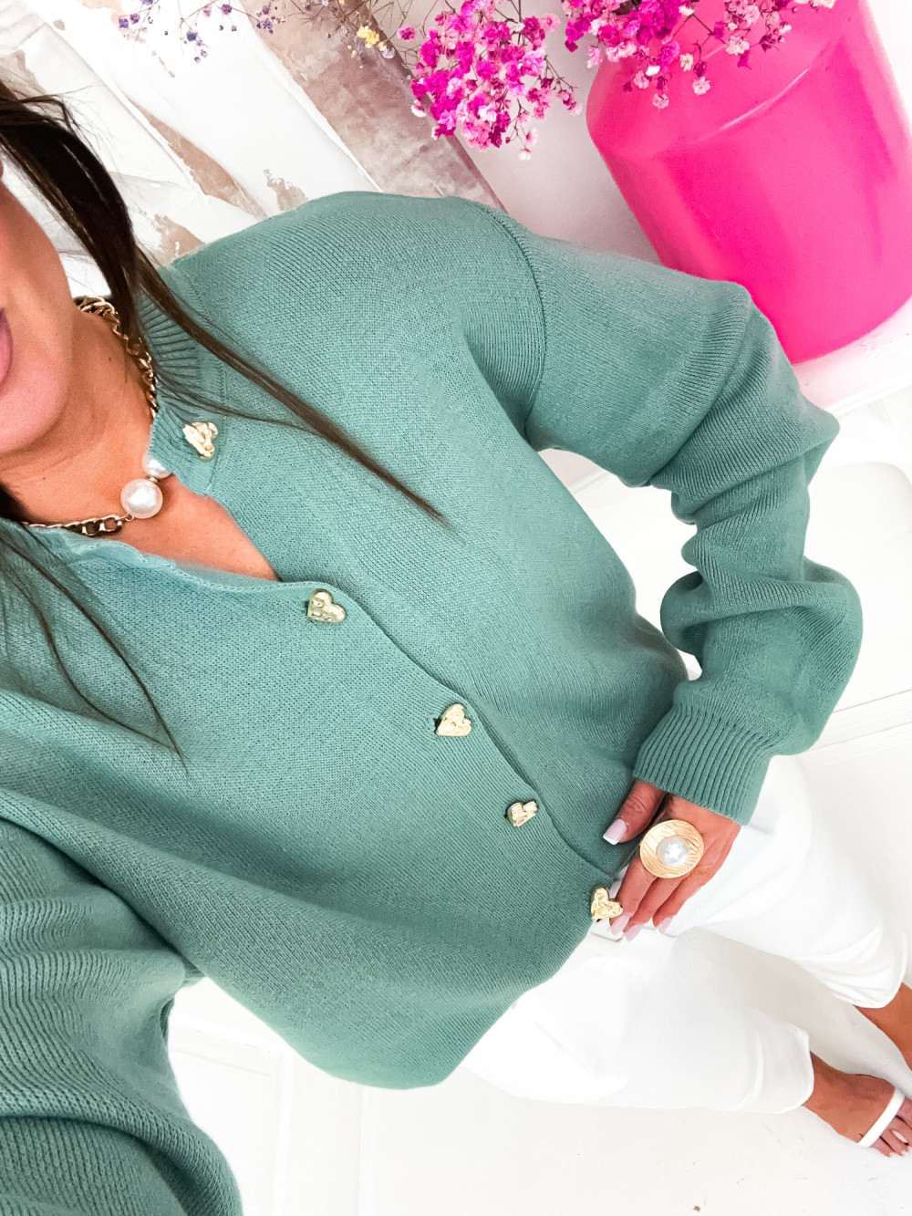 Sweterek kardigan ze złotymi guzikami STELLA mięta