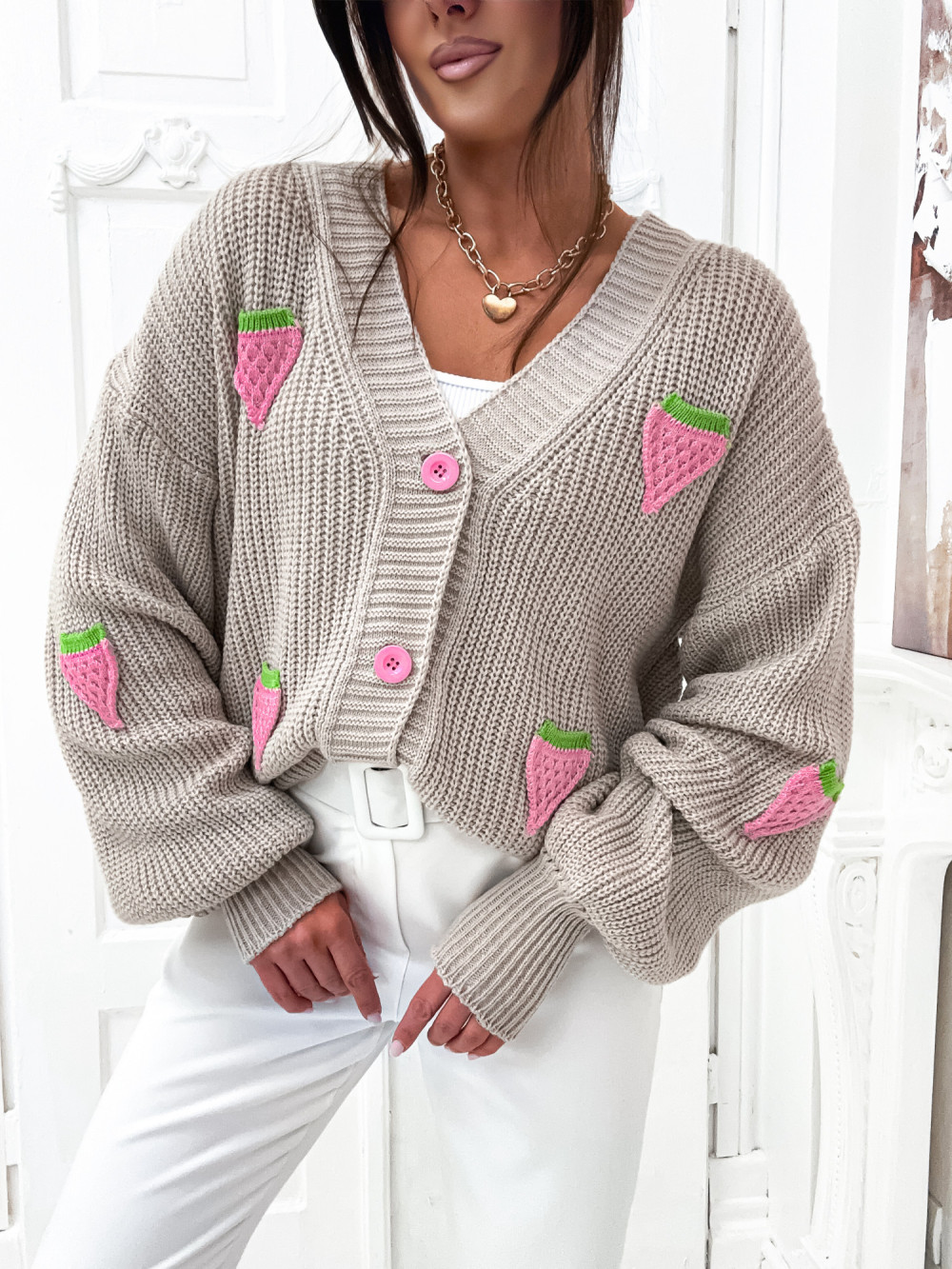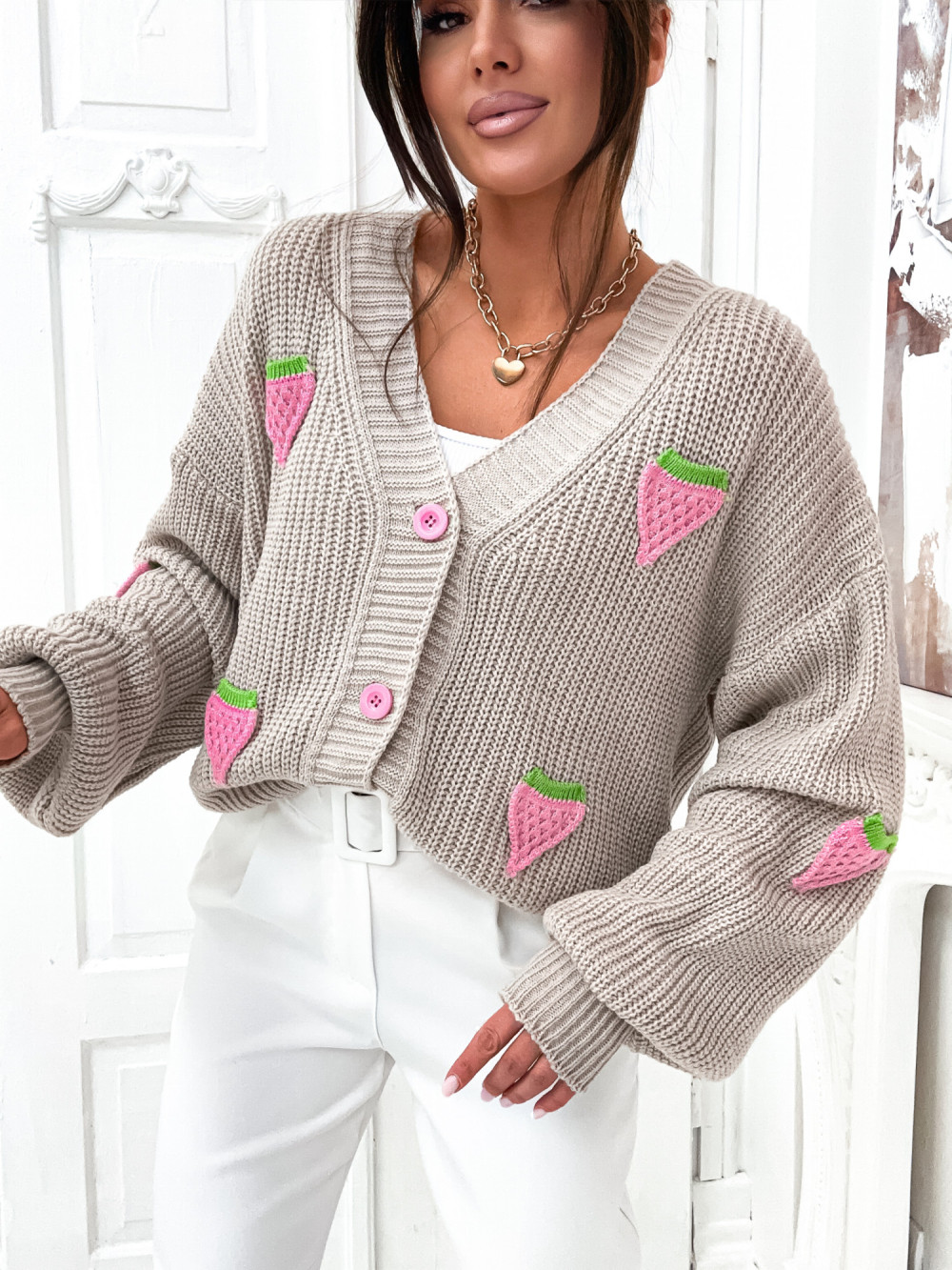 Kardigan MILLO raspberry fruit NUDE BEIGE