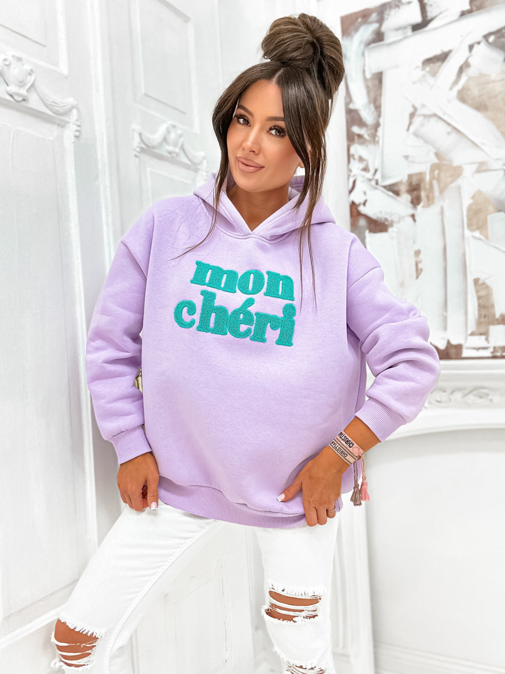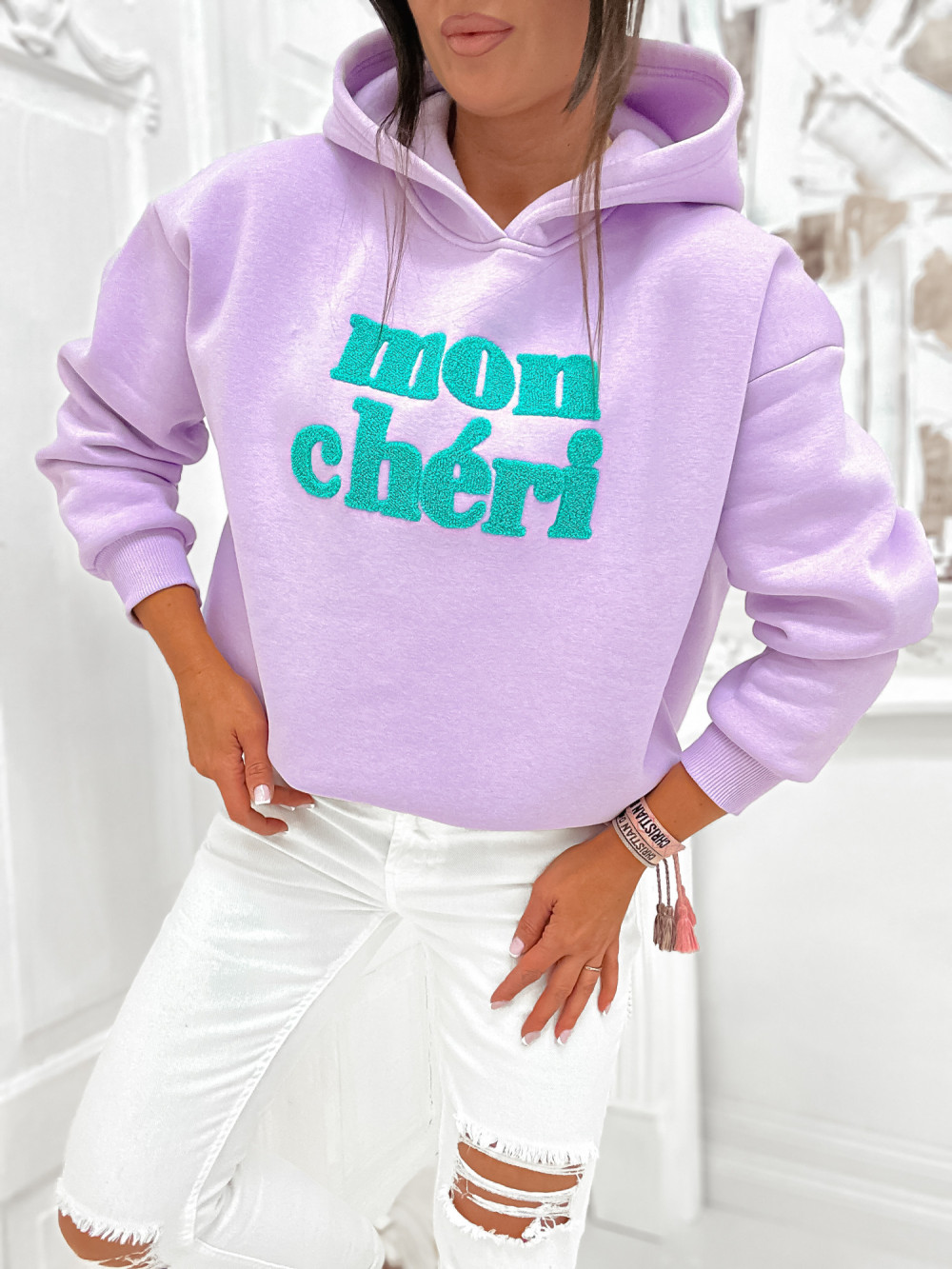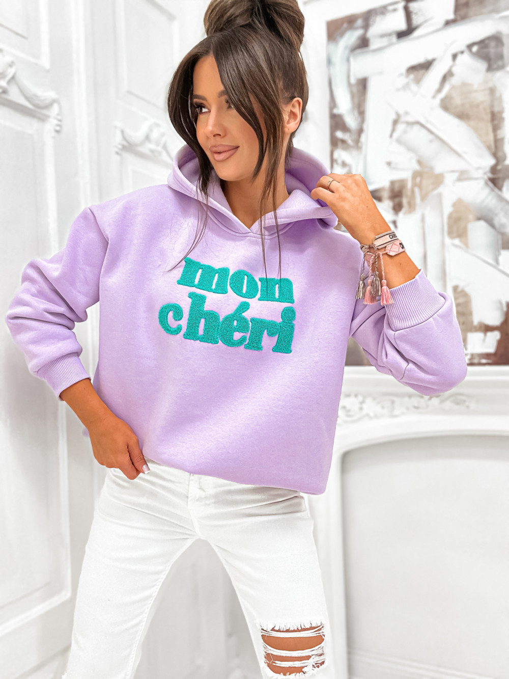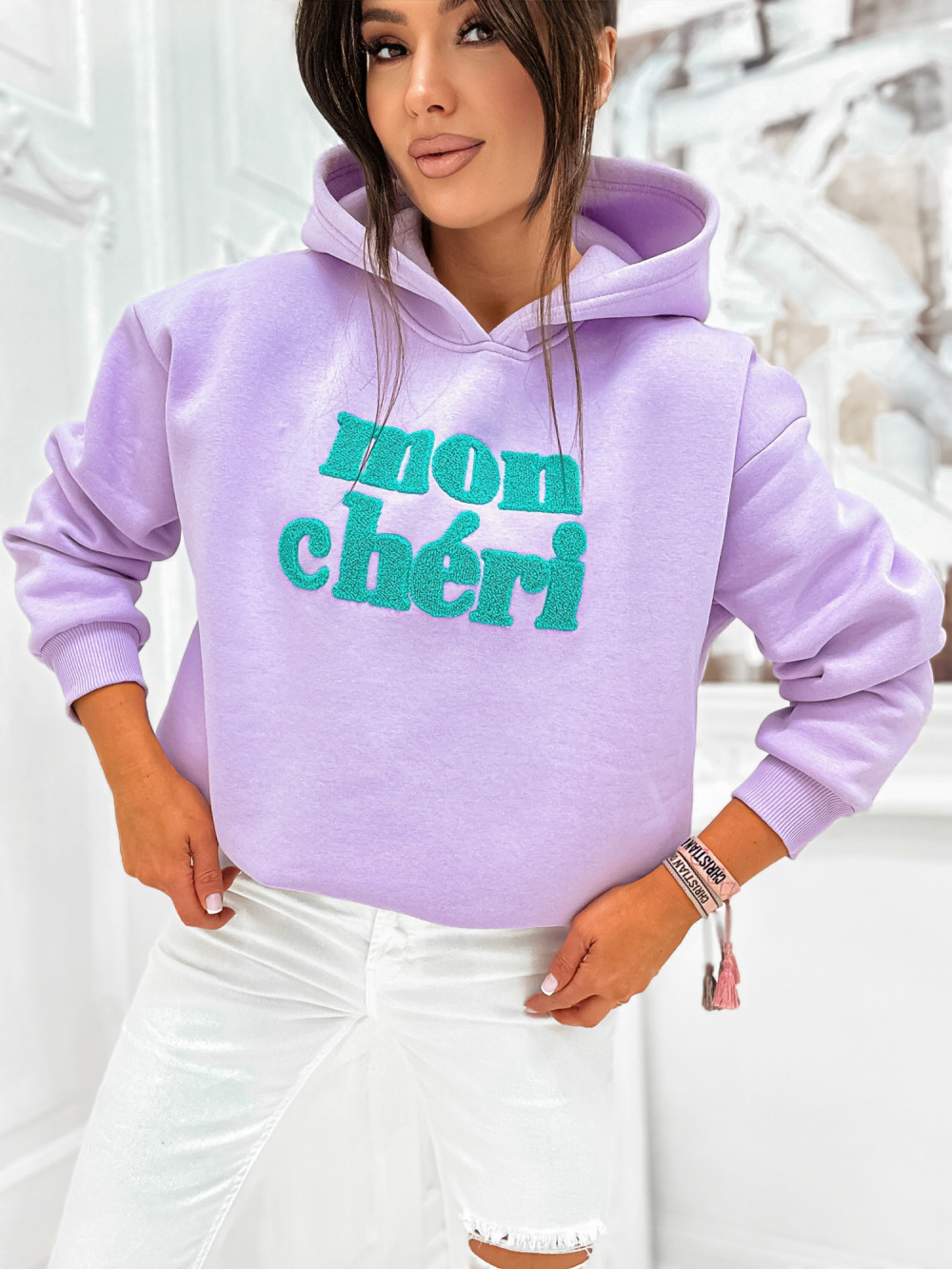 Bluza bawełniana z kapturem MON CHERI lawenda