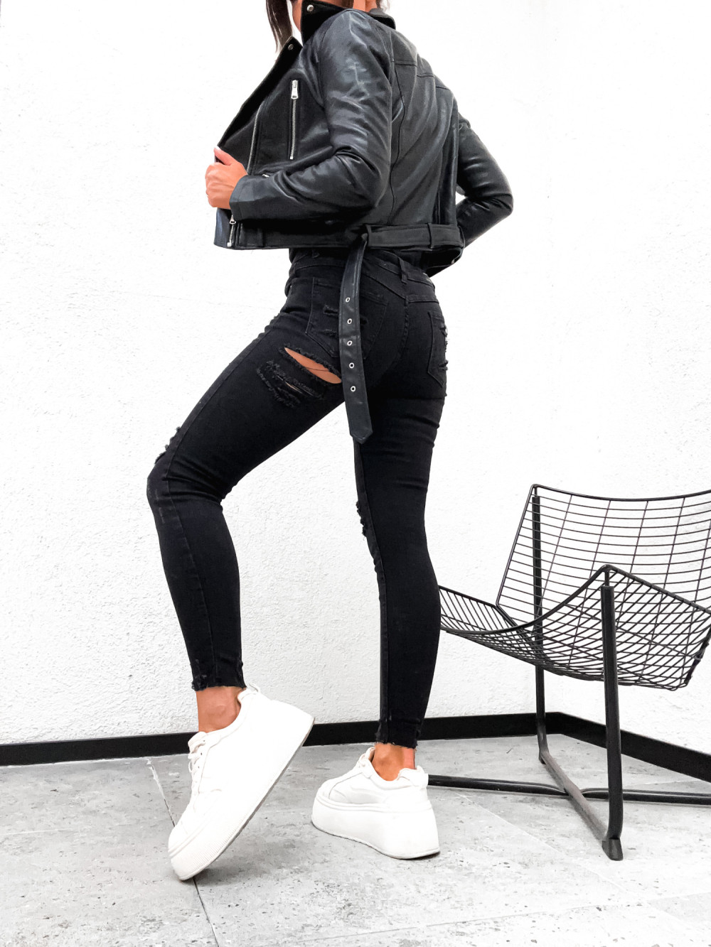 Spodnie DENIM RIPPED SLIM PUSH up skinny BLACK