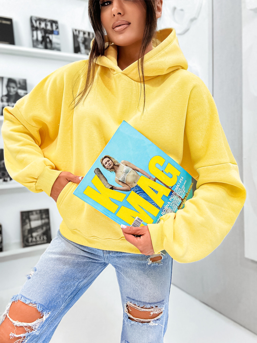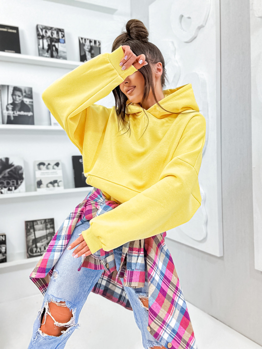 Żółta klasyczna bluza bawełniana z kapturem to niezbędny element kobiecej garderoby, łączący komfort ze stylowym wyglądem. Starannie zaprojektowany krój dobrze dopasowuje się do sylwetki i gwarantuje wygodę noszenia. Model klasycznej bluzy bawęłnianej doskonale komponuje się z jeansami oraz sprawdzi się w sportowych stylizacjach.