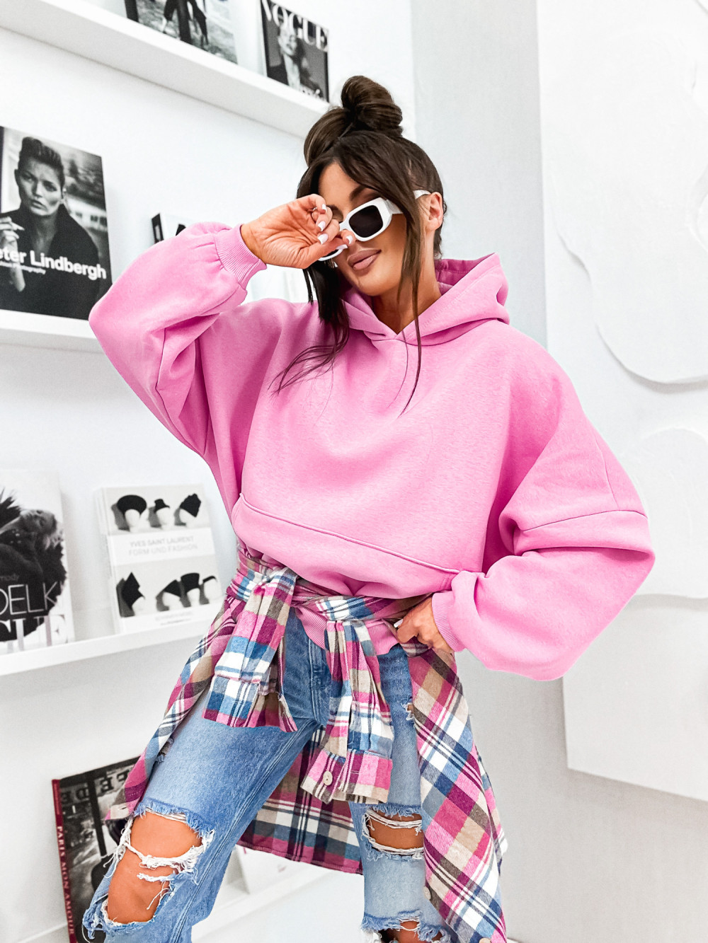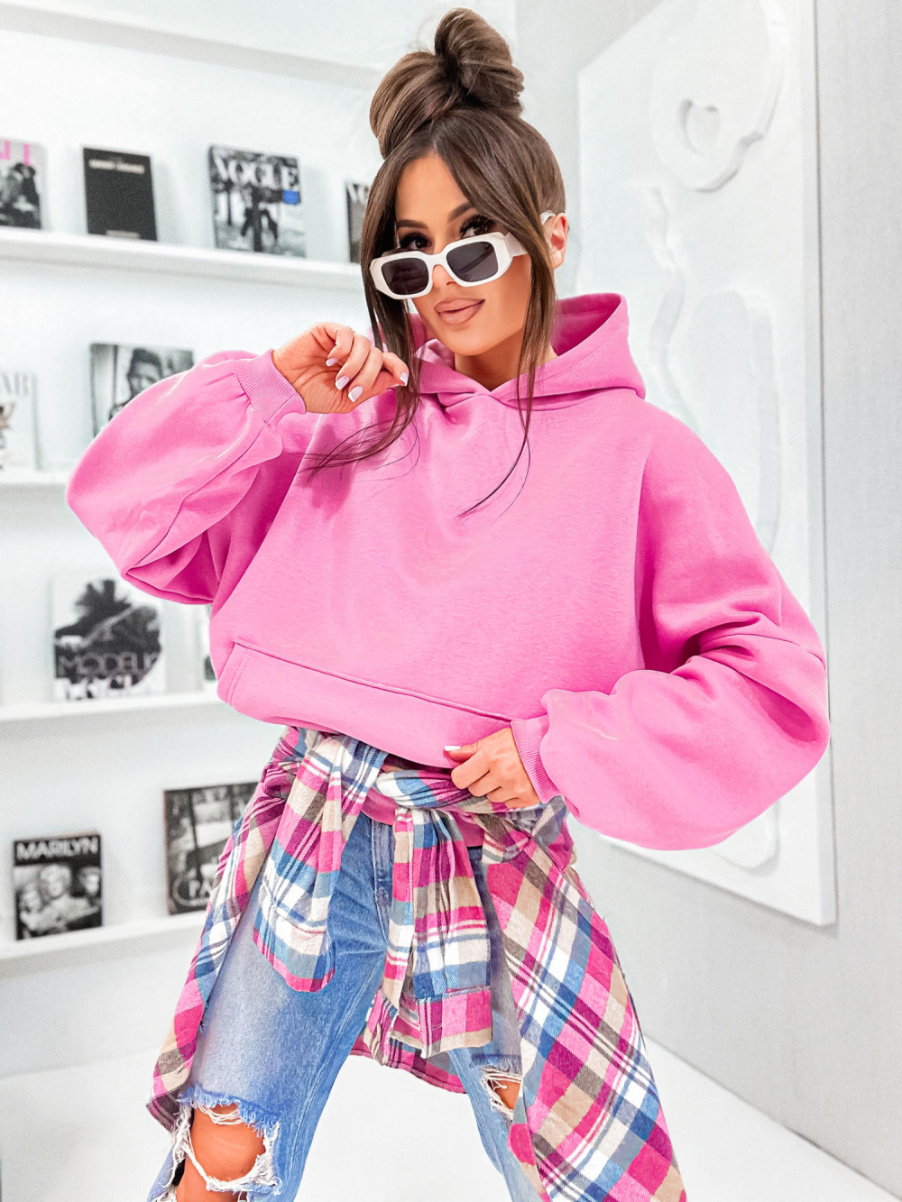 Różowa bawełniana bluza z kapturem w klasycznym wydaniu to must-have w damskiej szafie, który zapewnia wygodę i modny wygląd. Dopasowany fason podkreśla sylwetkę i oferuje pełen komfort na co dzień. Klasyczna bluza bawełniana świetnie pasuje do jeansów i uzupełnia sportowe zestawy.